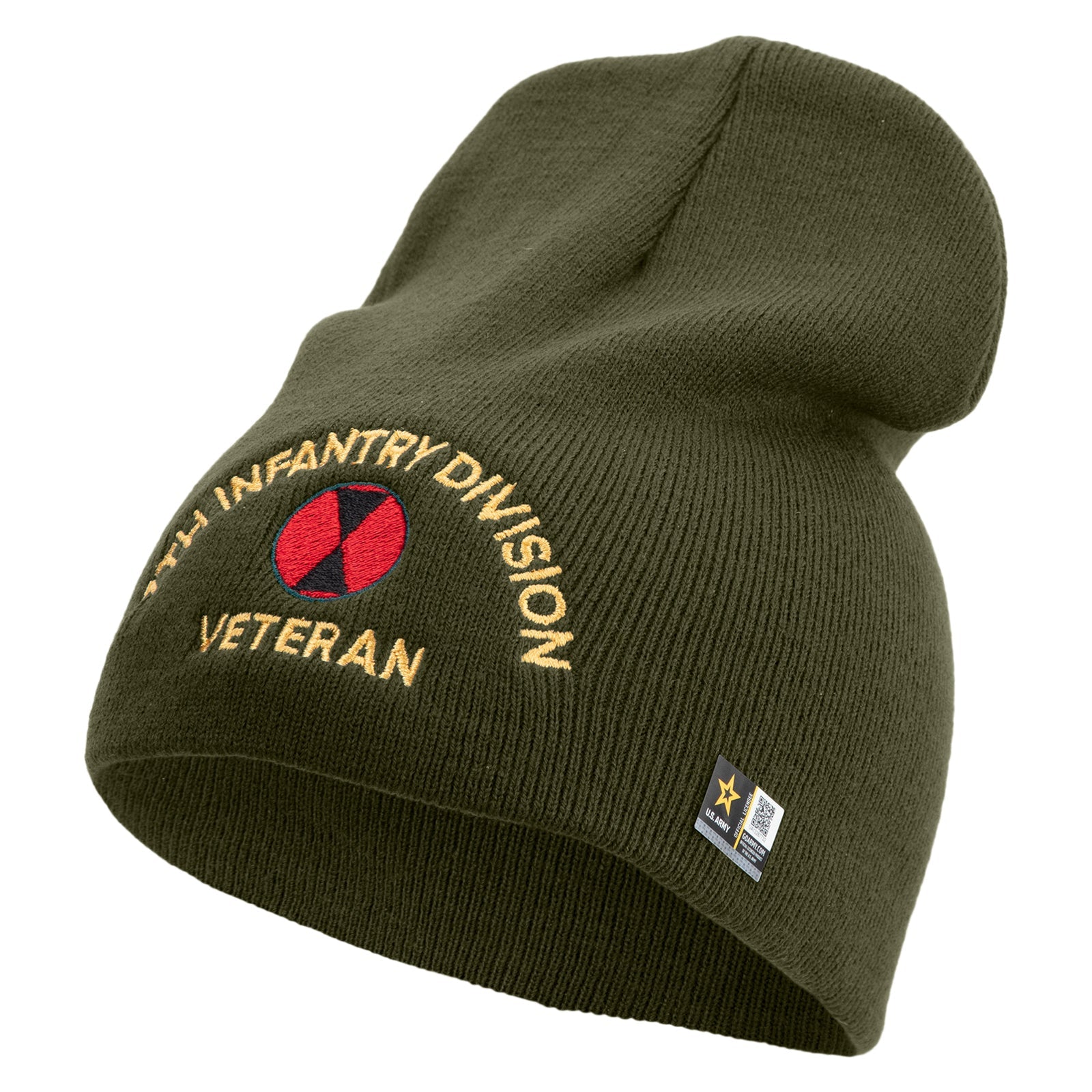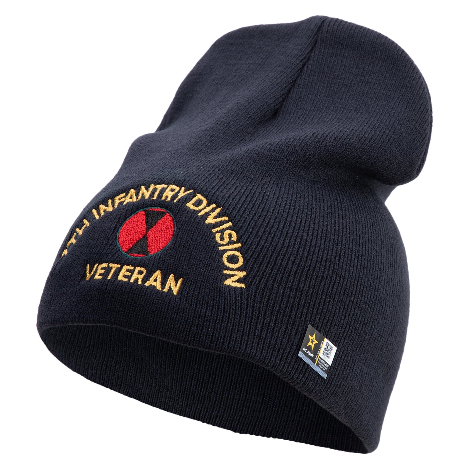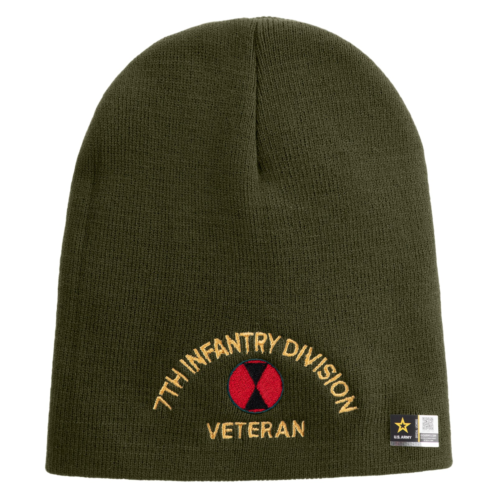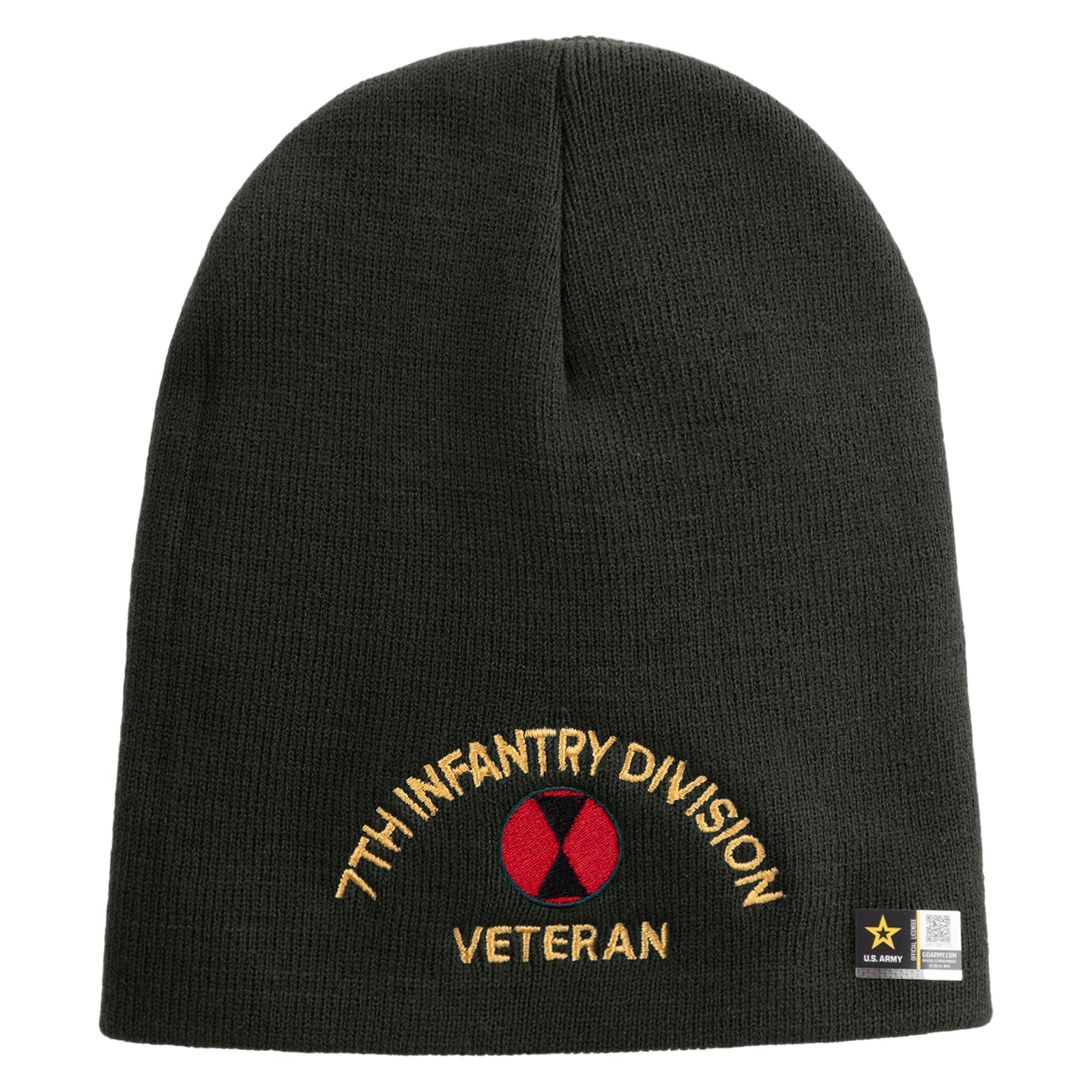 Title, U.S. Army 7th Infantry Division Symbol Embroidered 8 Inch Solid Knit Short Beanie Made in USA
