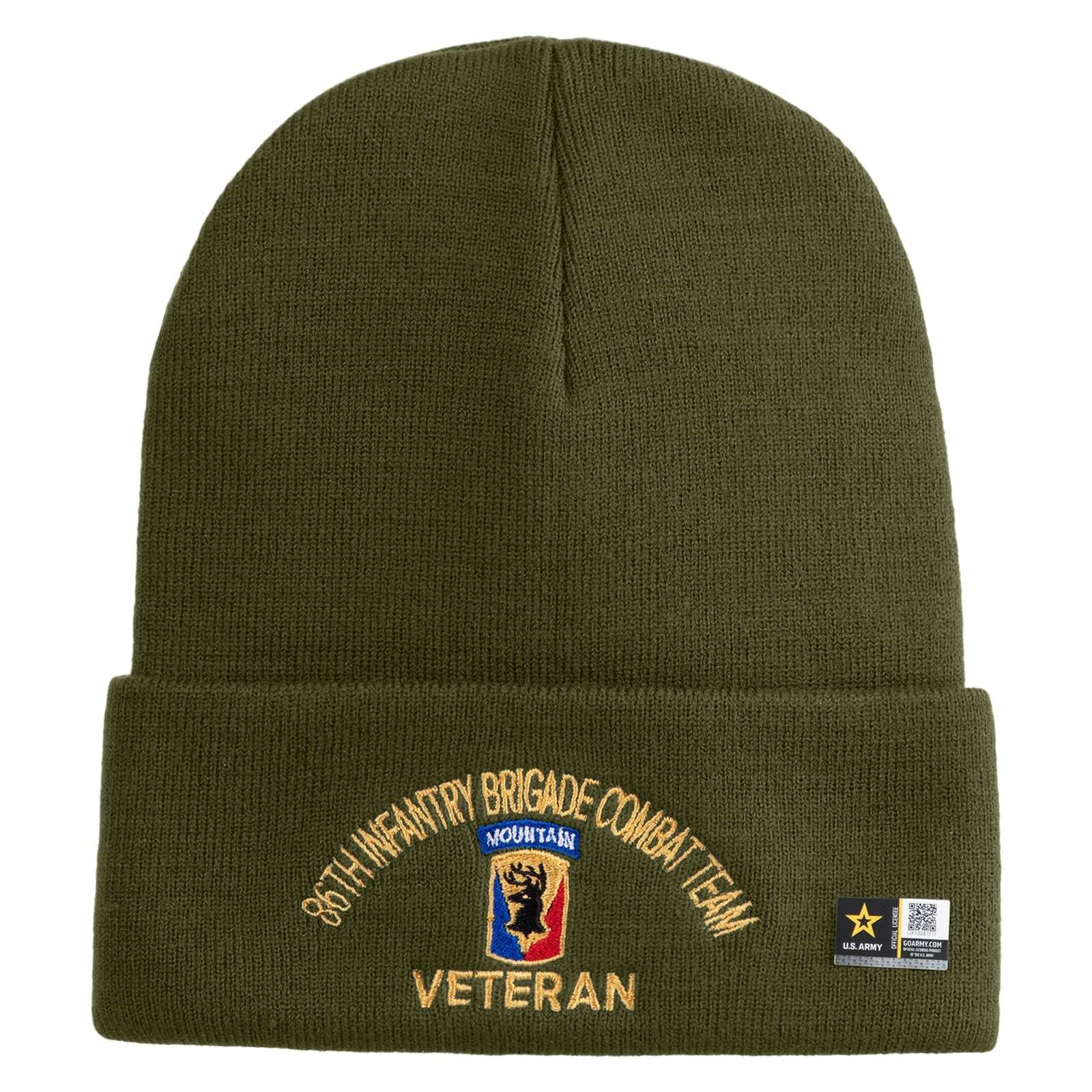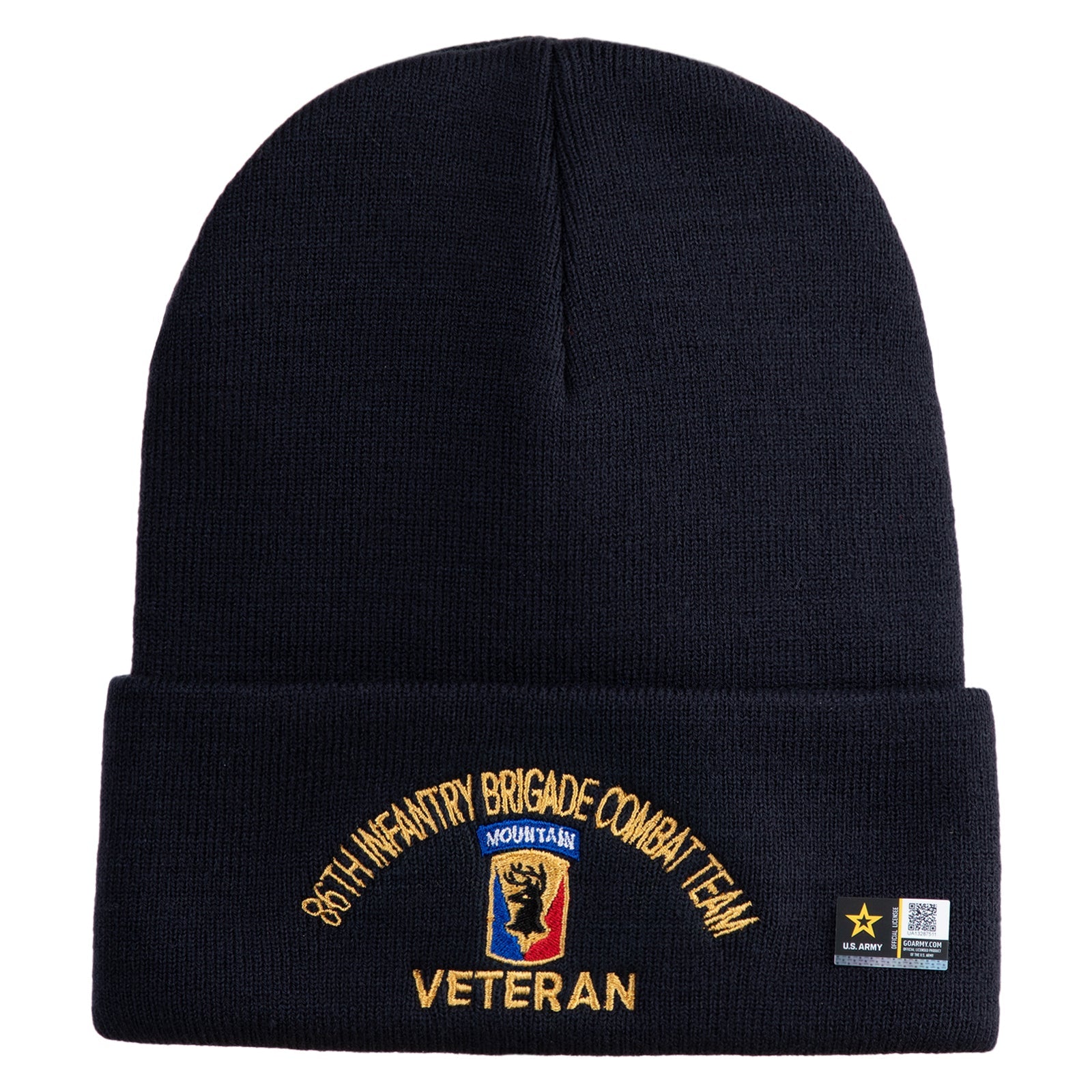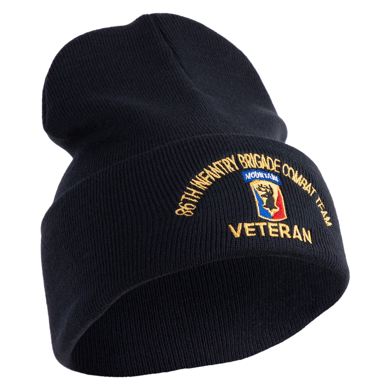 Title, U.S. Army 86th Infantry Brigade Combat Team Logo Embroidered 12 Inch Solid Knit Cuff Long Beanie Made in USA