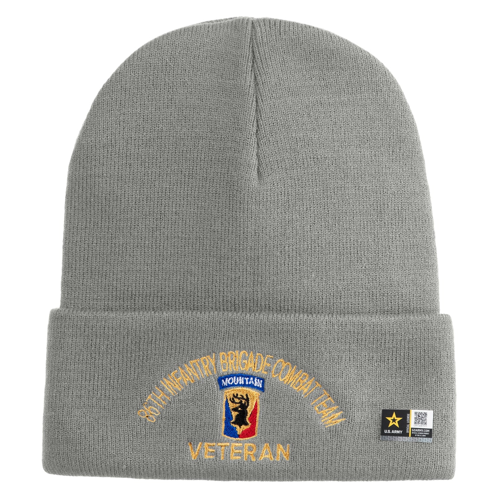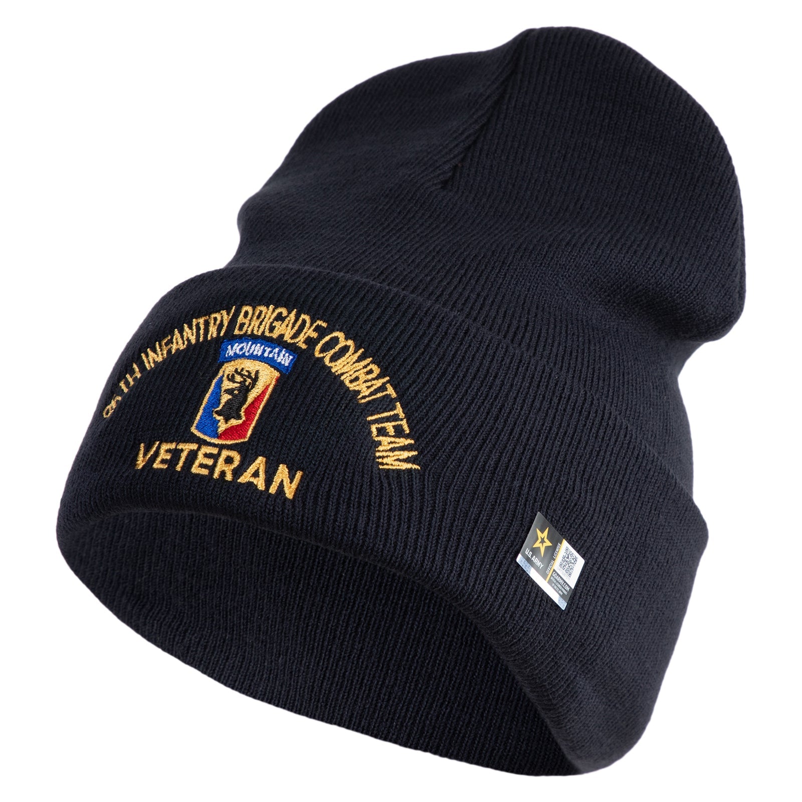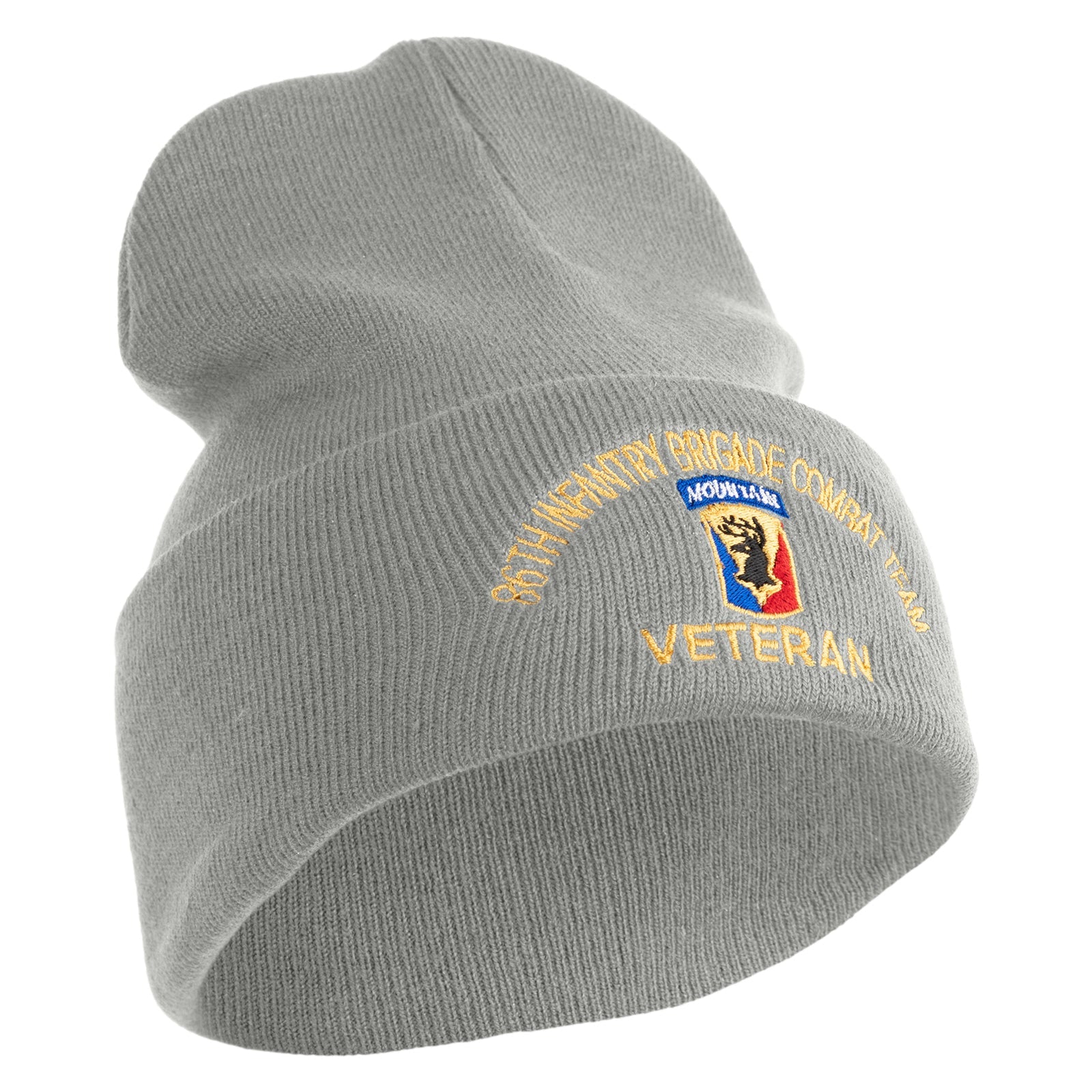Title, U.S. Army 86th Infantry Brigade Combat Team Logo Embroidered 12 Inch Solid Knit Cuff Long Beanie Made in USA