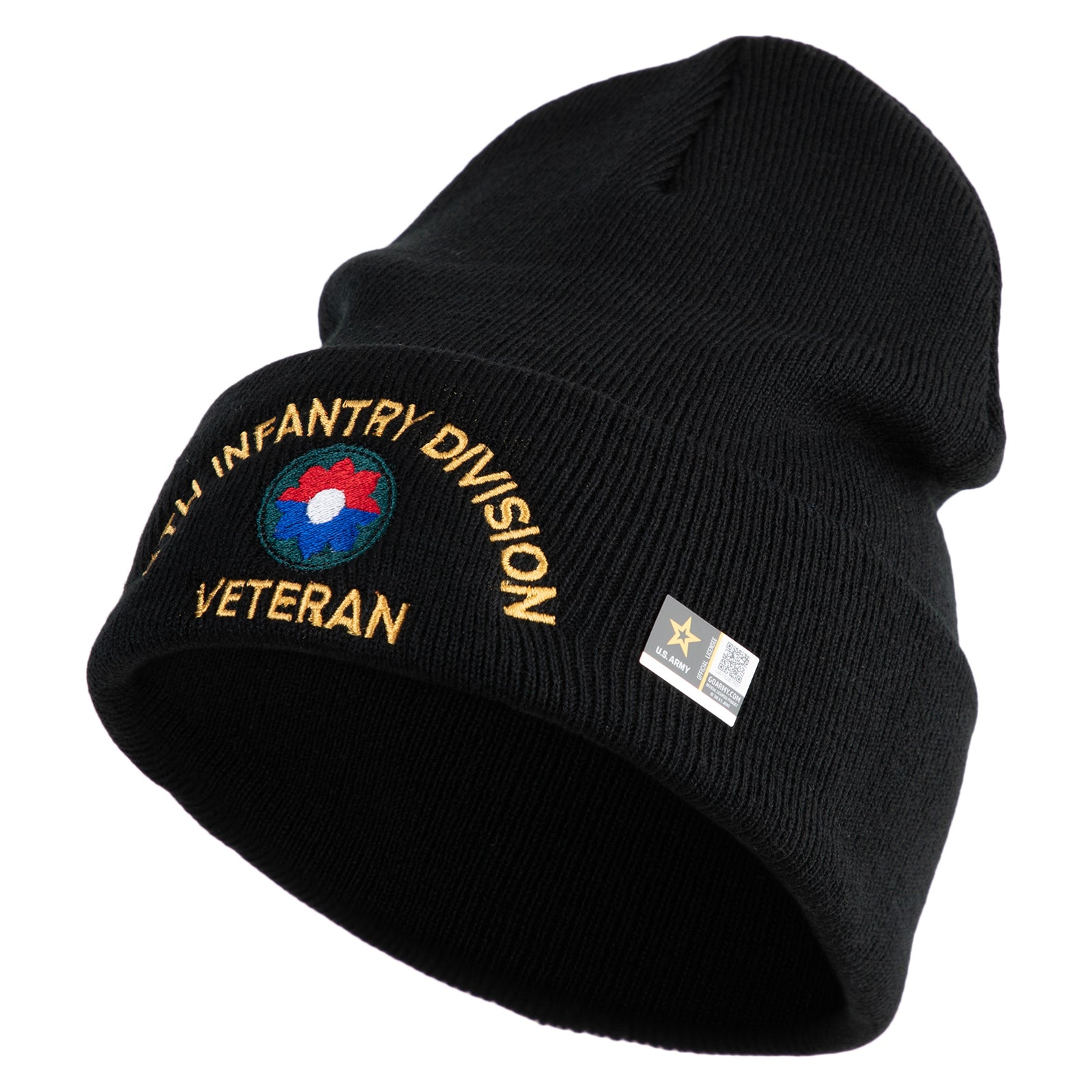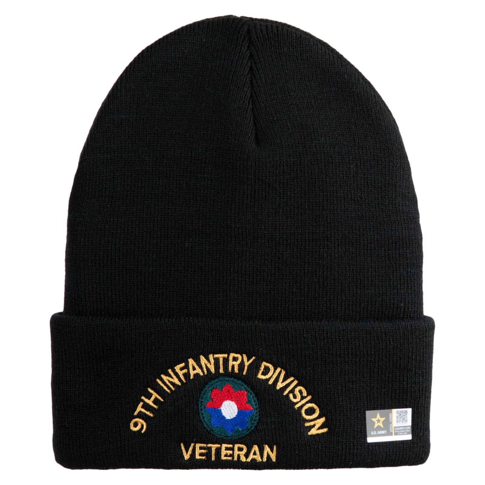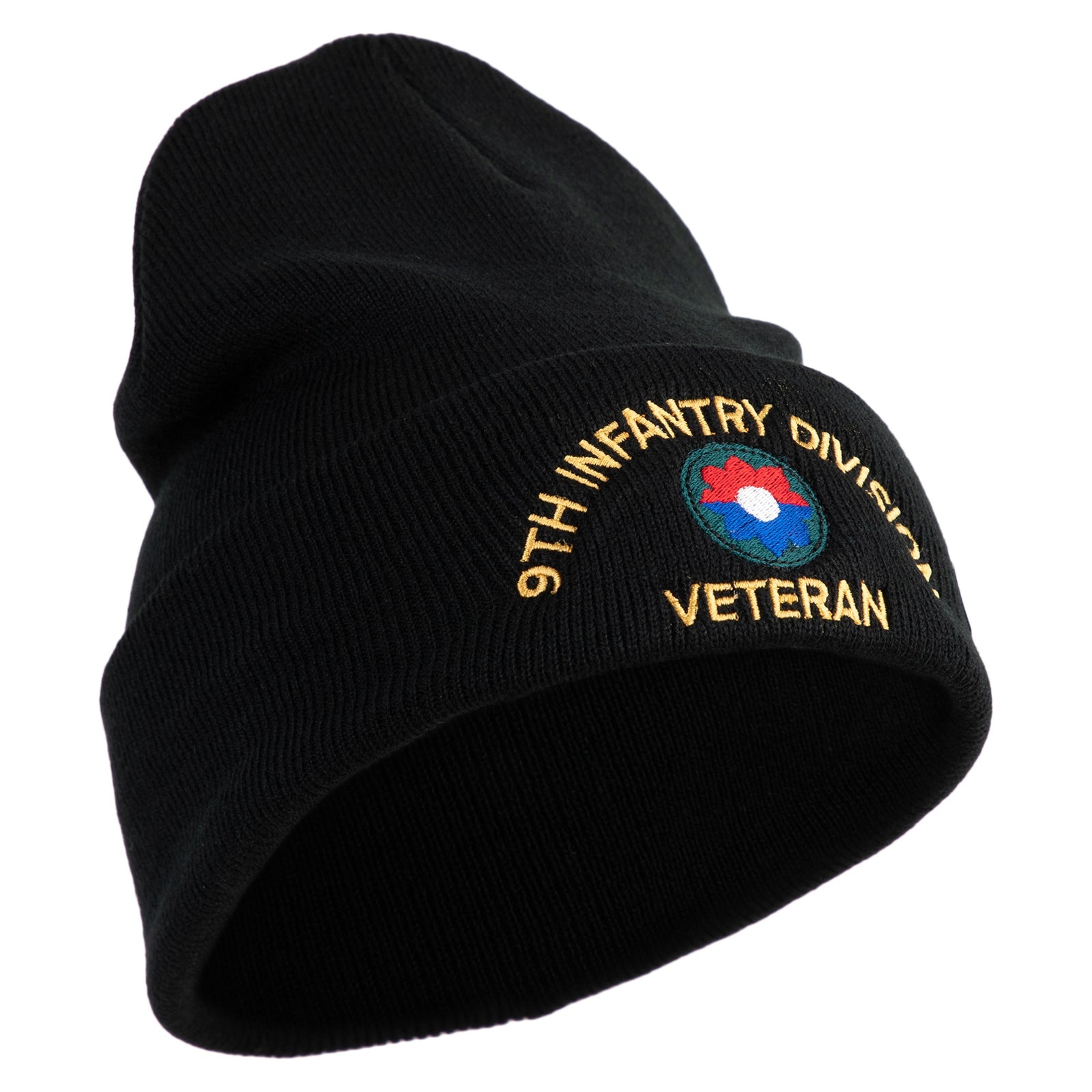 U.S. Army 9th Infantry Division Logo Embroidered 12 Inch Solid Knit Cuff Long Beanie Made in USA