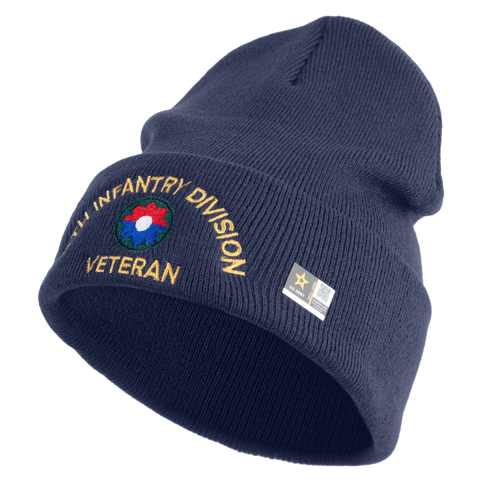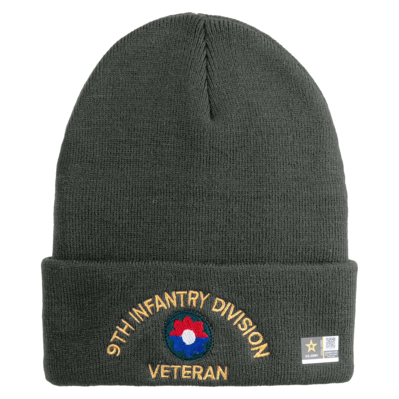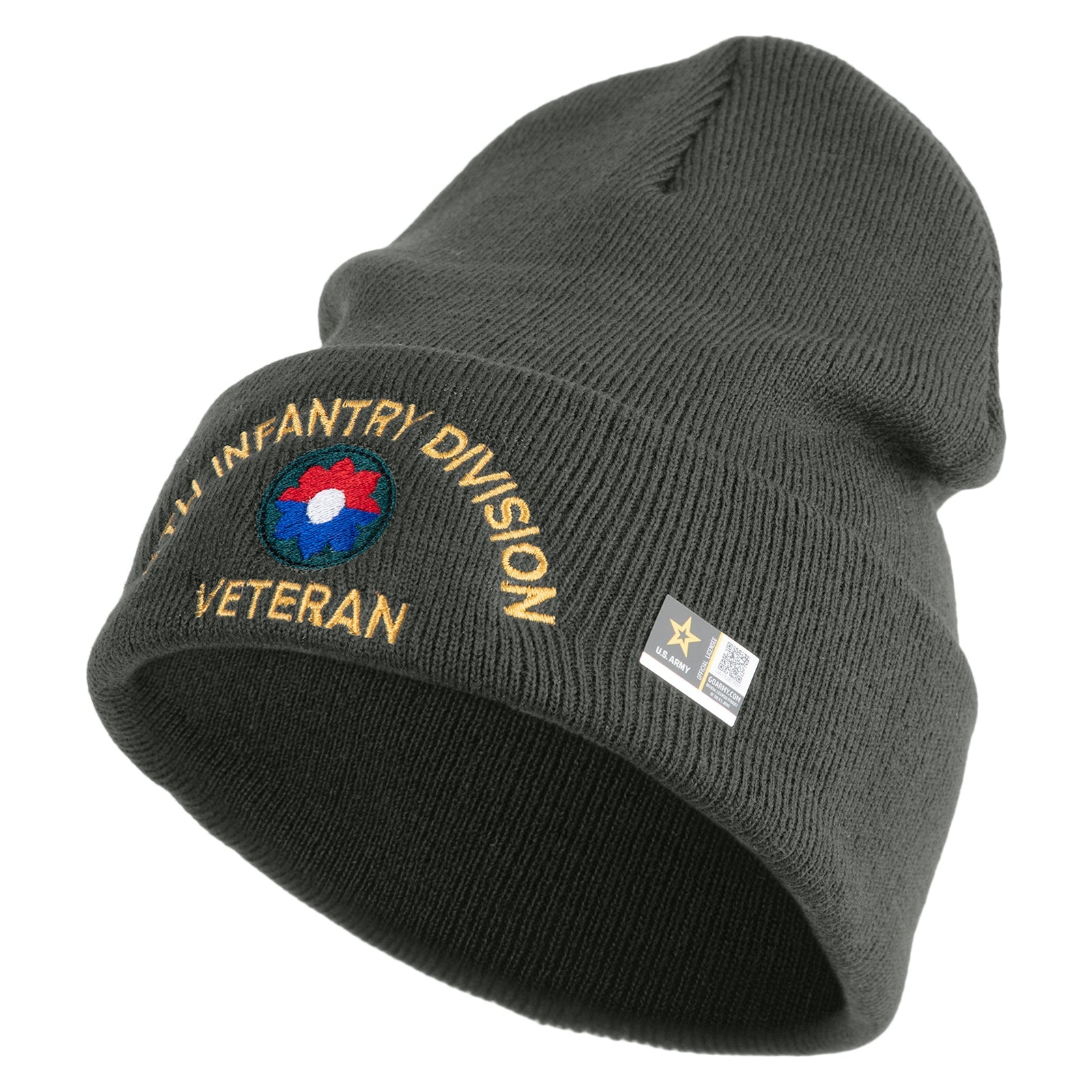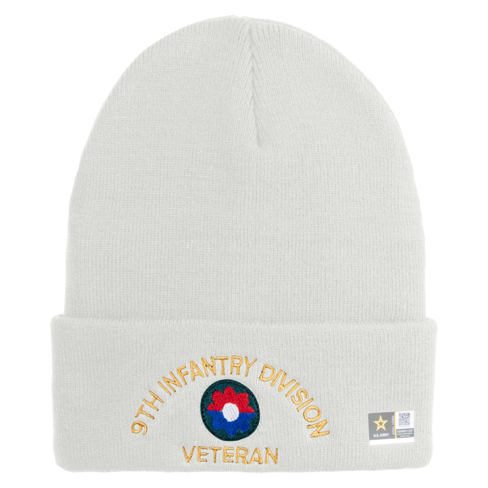 U.S. Army 9th Infantry Division Logo Embroidered 12 Inch Solid Knit Cuff Long Beanie Made in USA