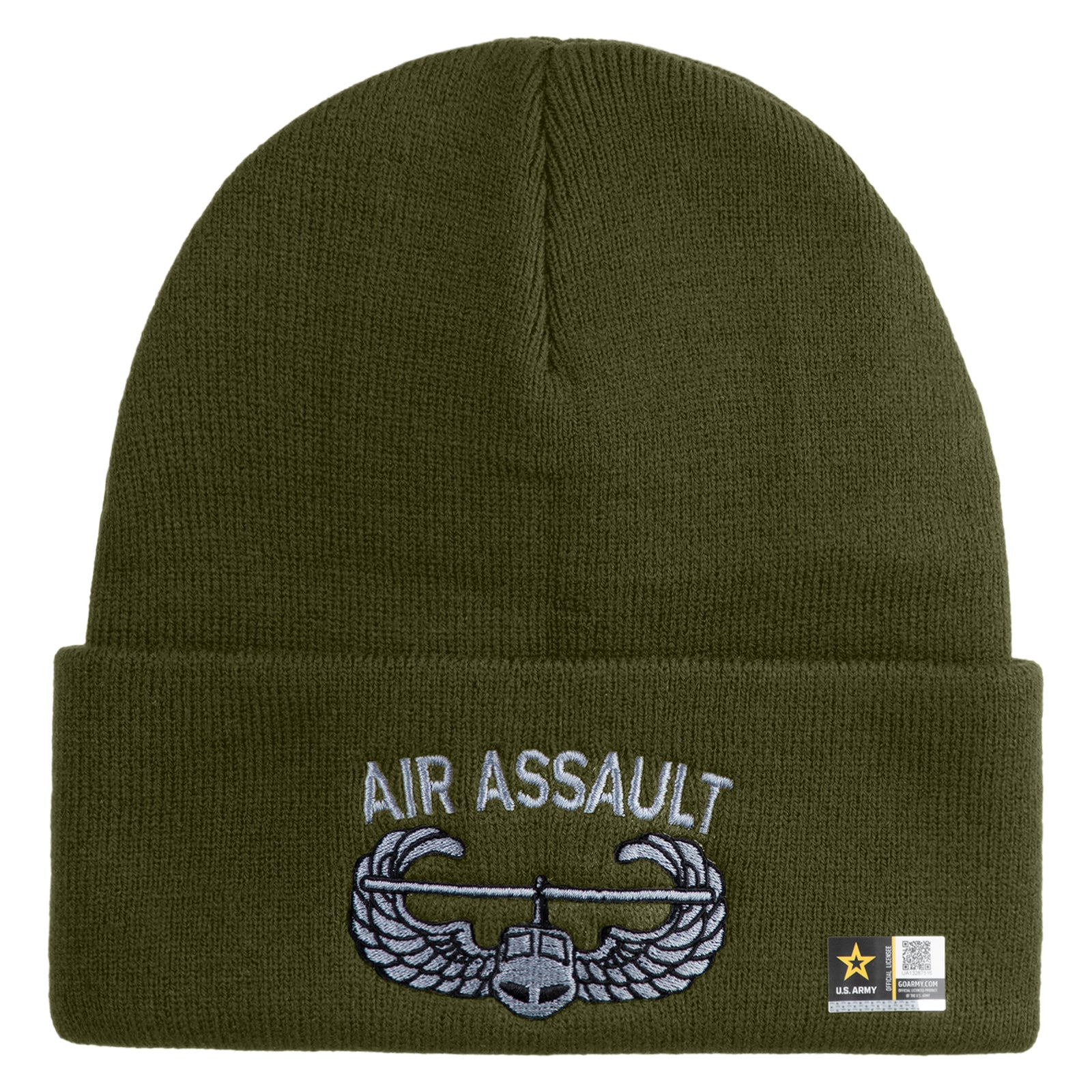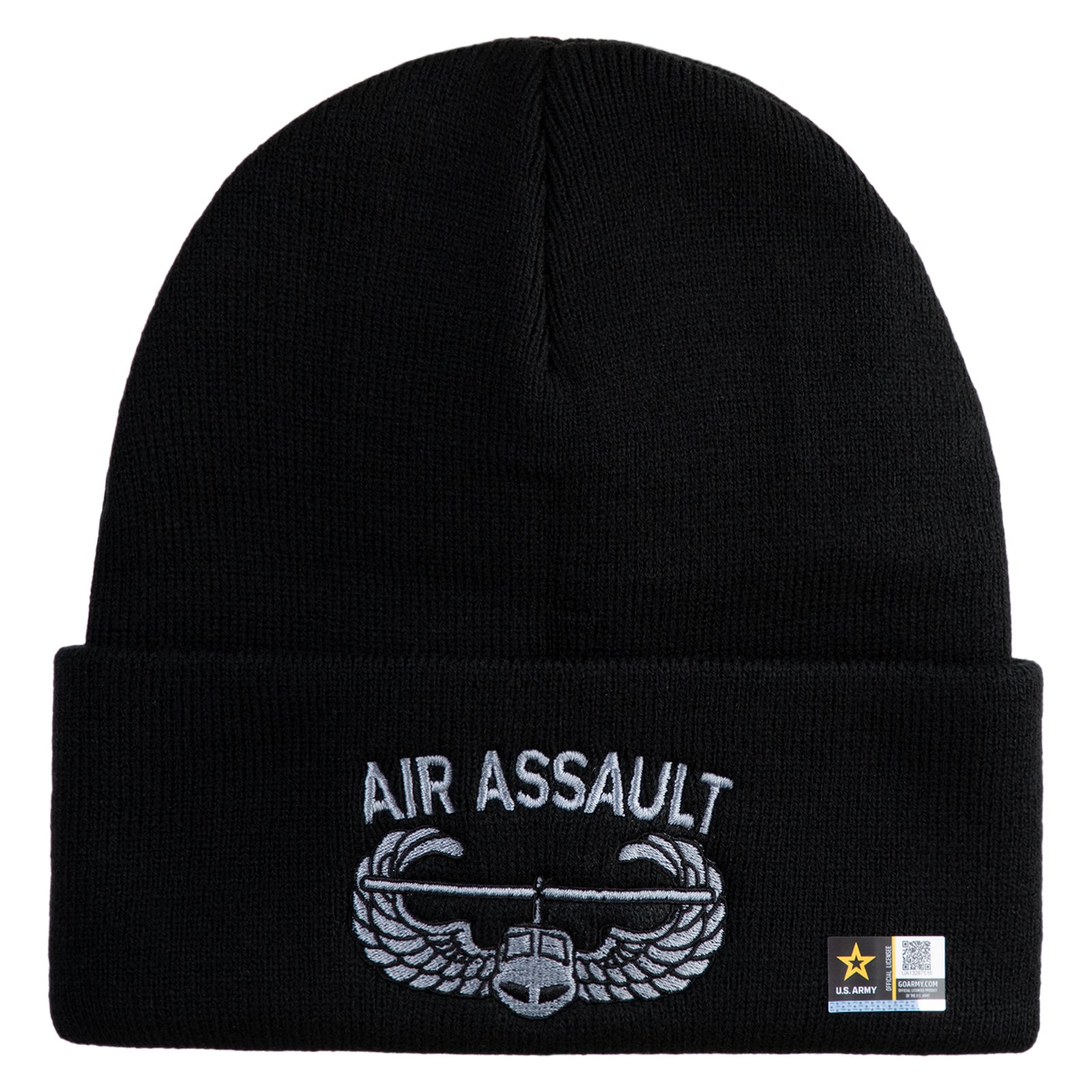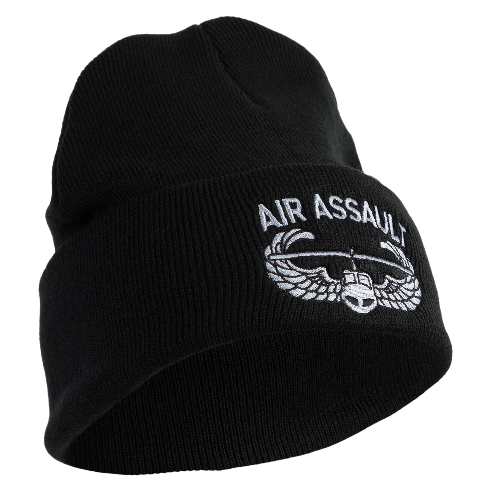 Title, U.S. Army Air Assault Badge Logo Embroidered 12 Inch Solid Knit Cuff Long Beanie Made in USA