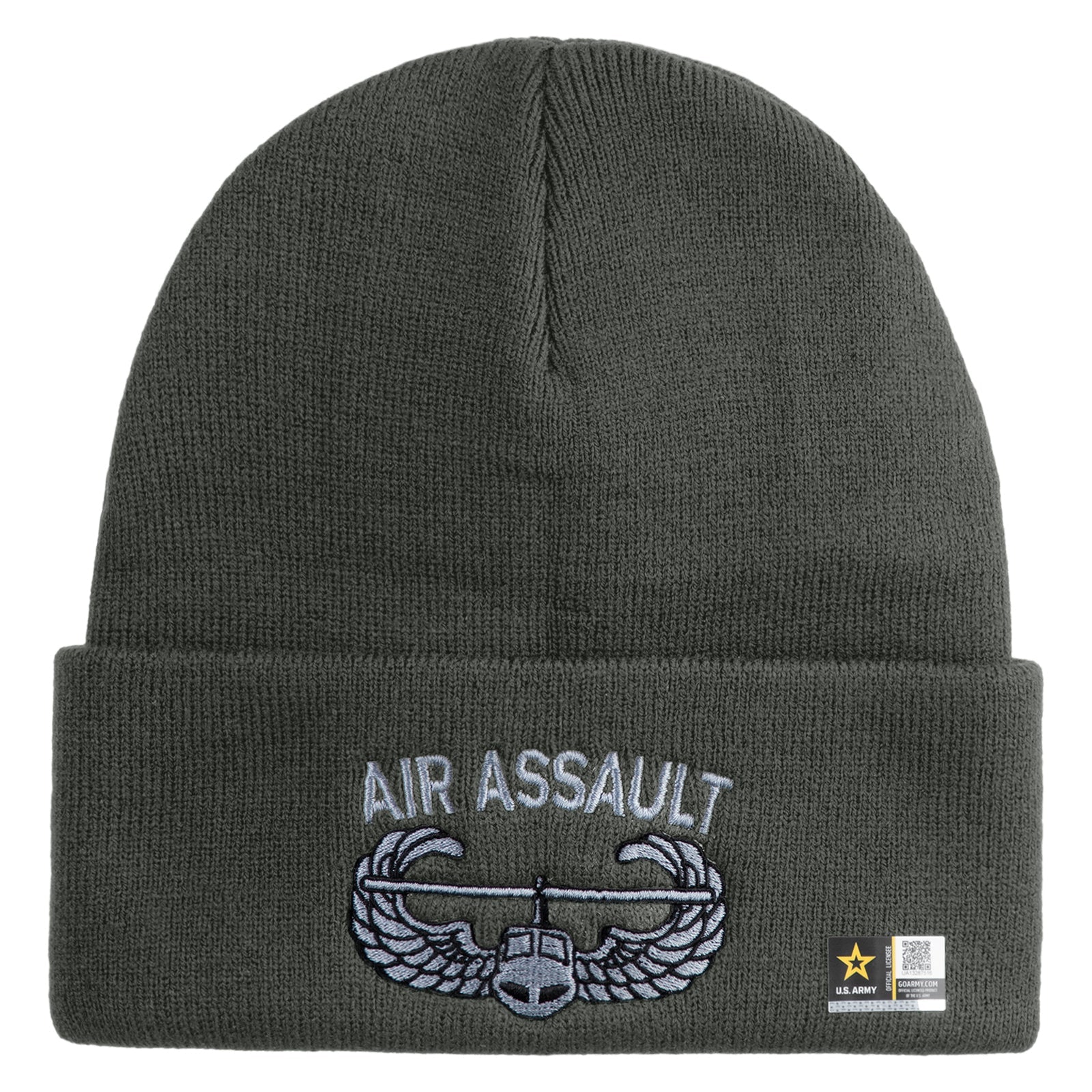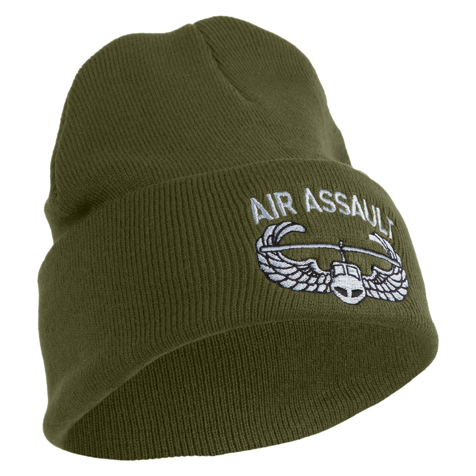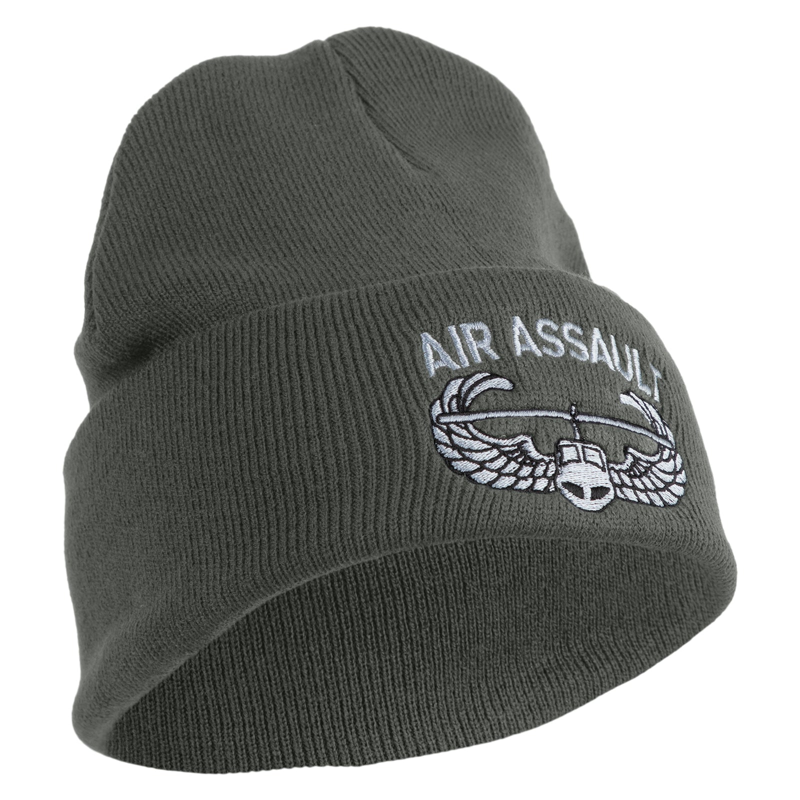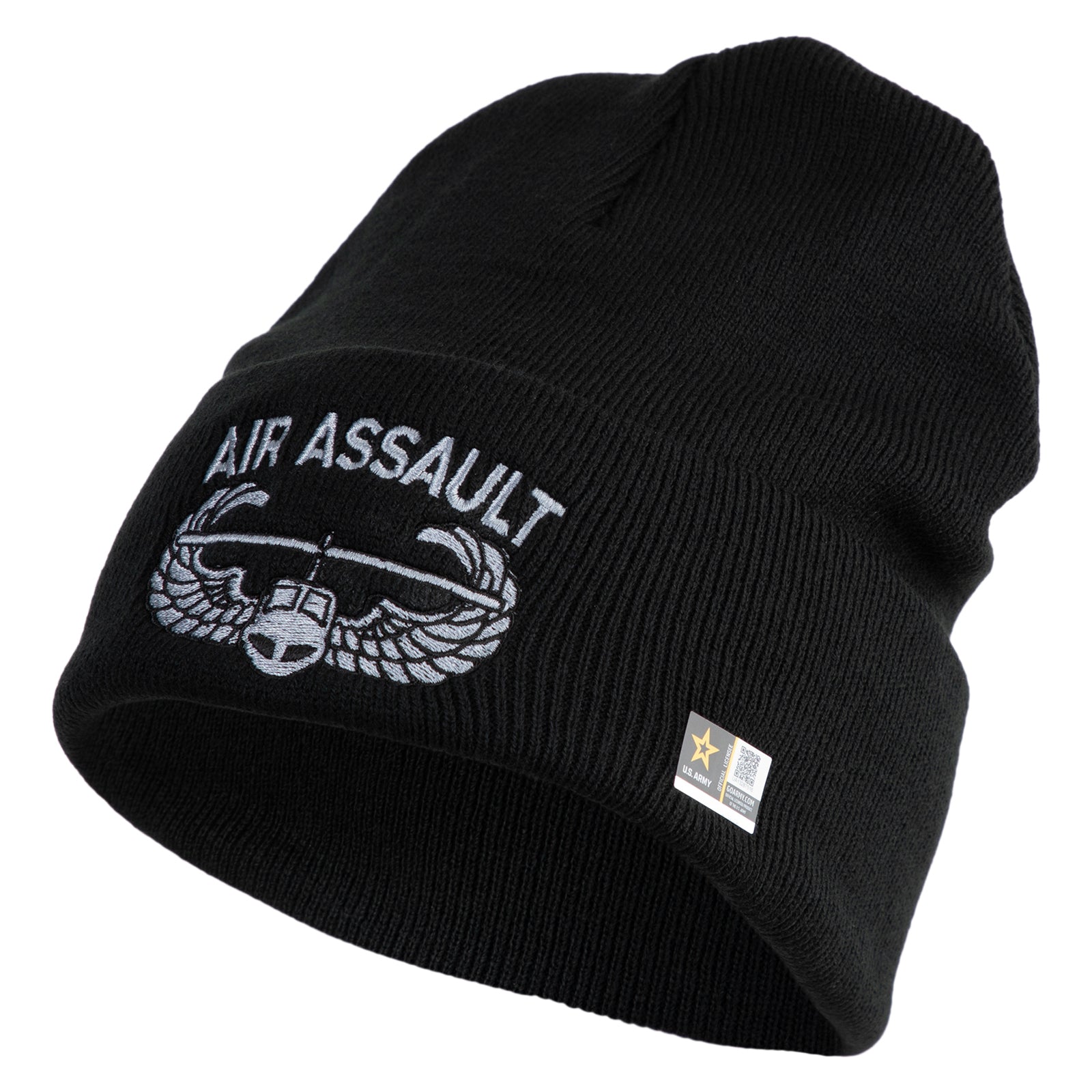 Title, U.S. Army Air Assault Badge Logo Embroidered 12 Inch Solid Knit Cuff Long Beanie Made in USA