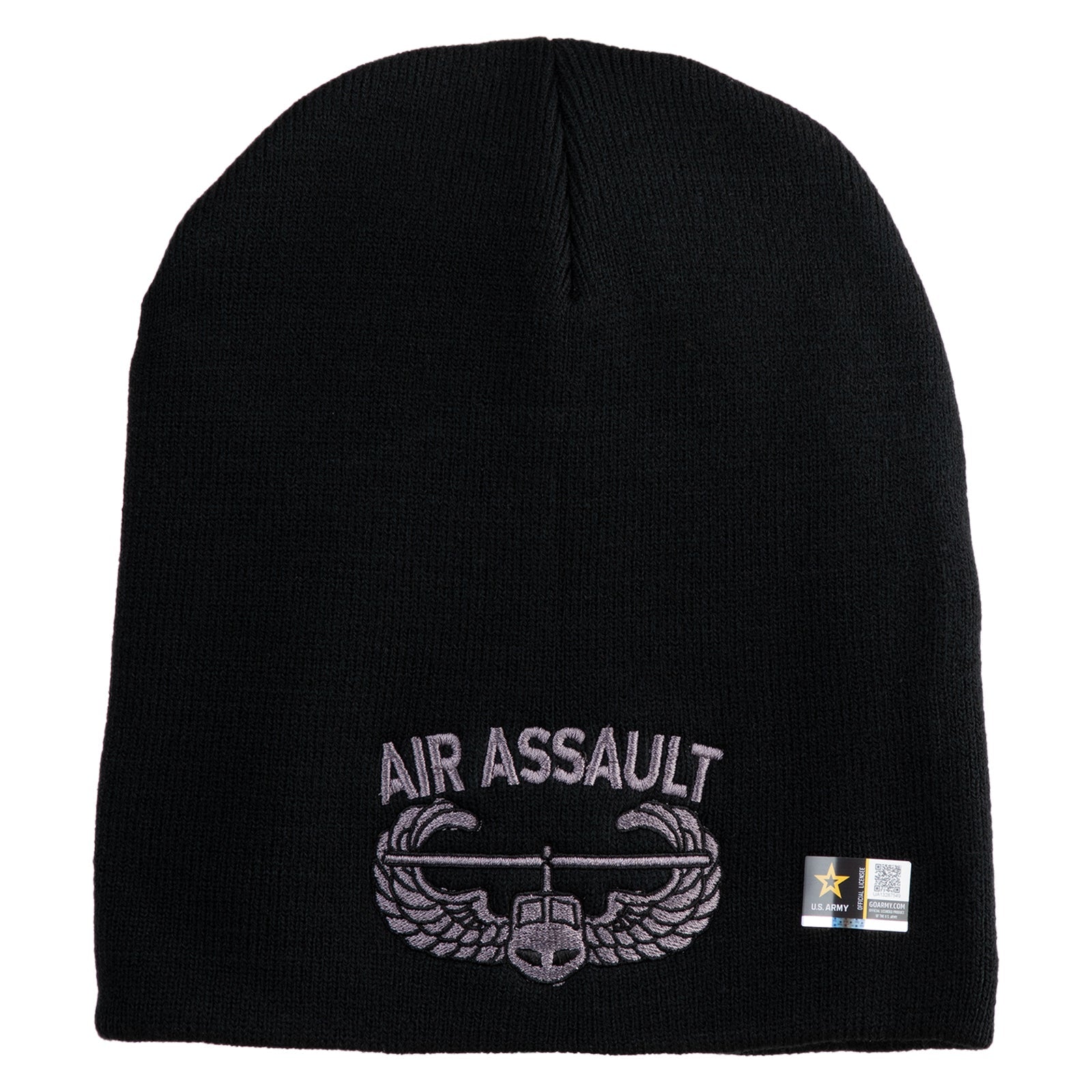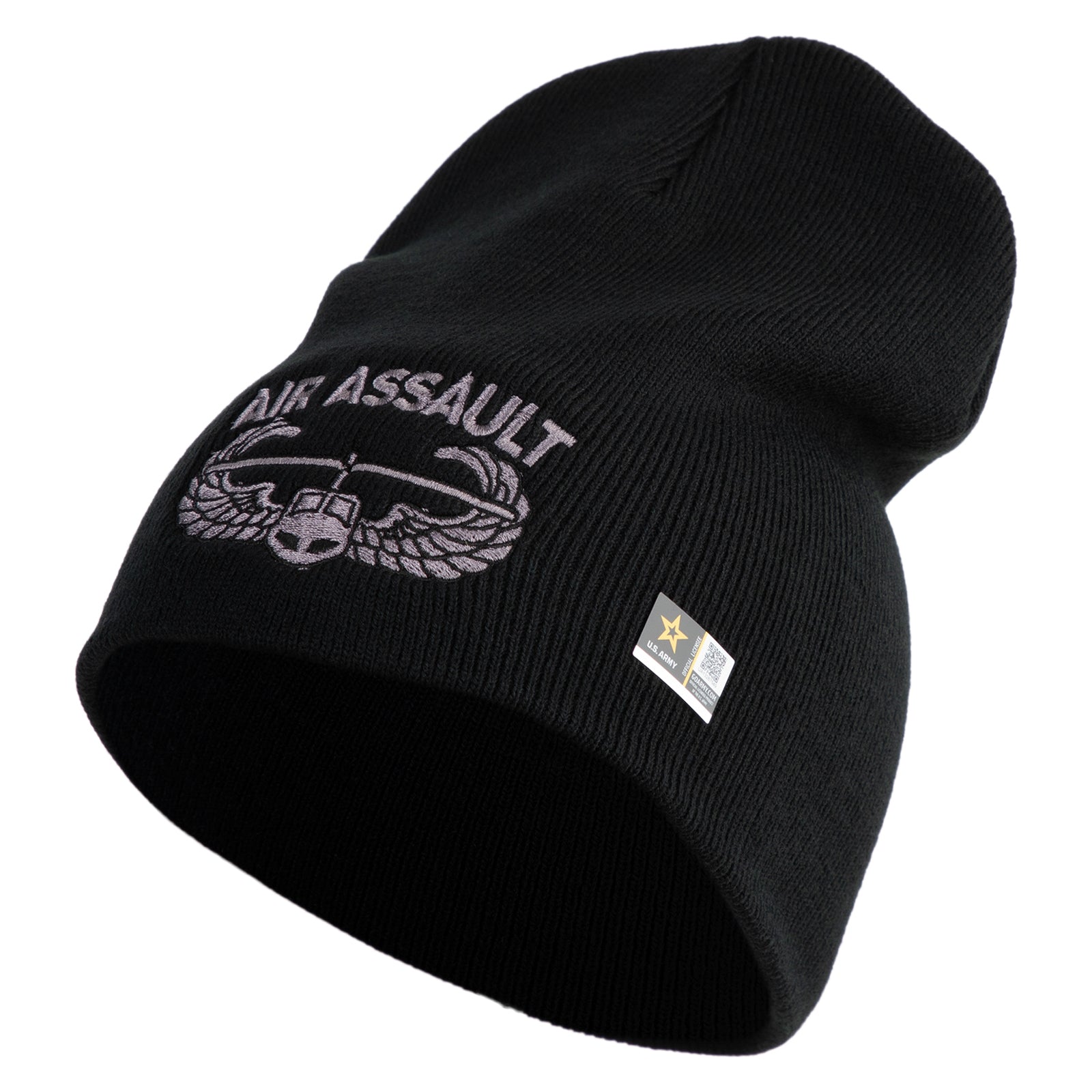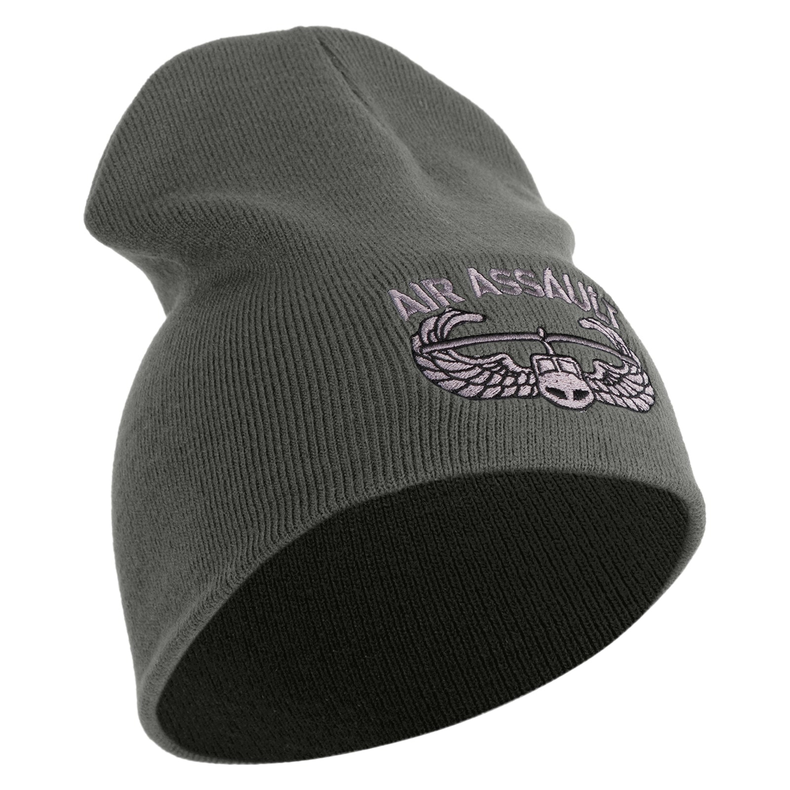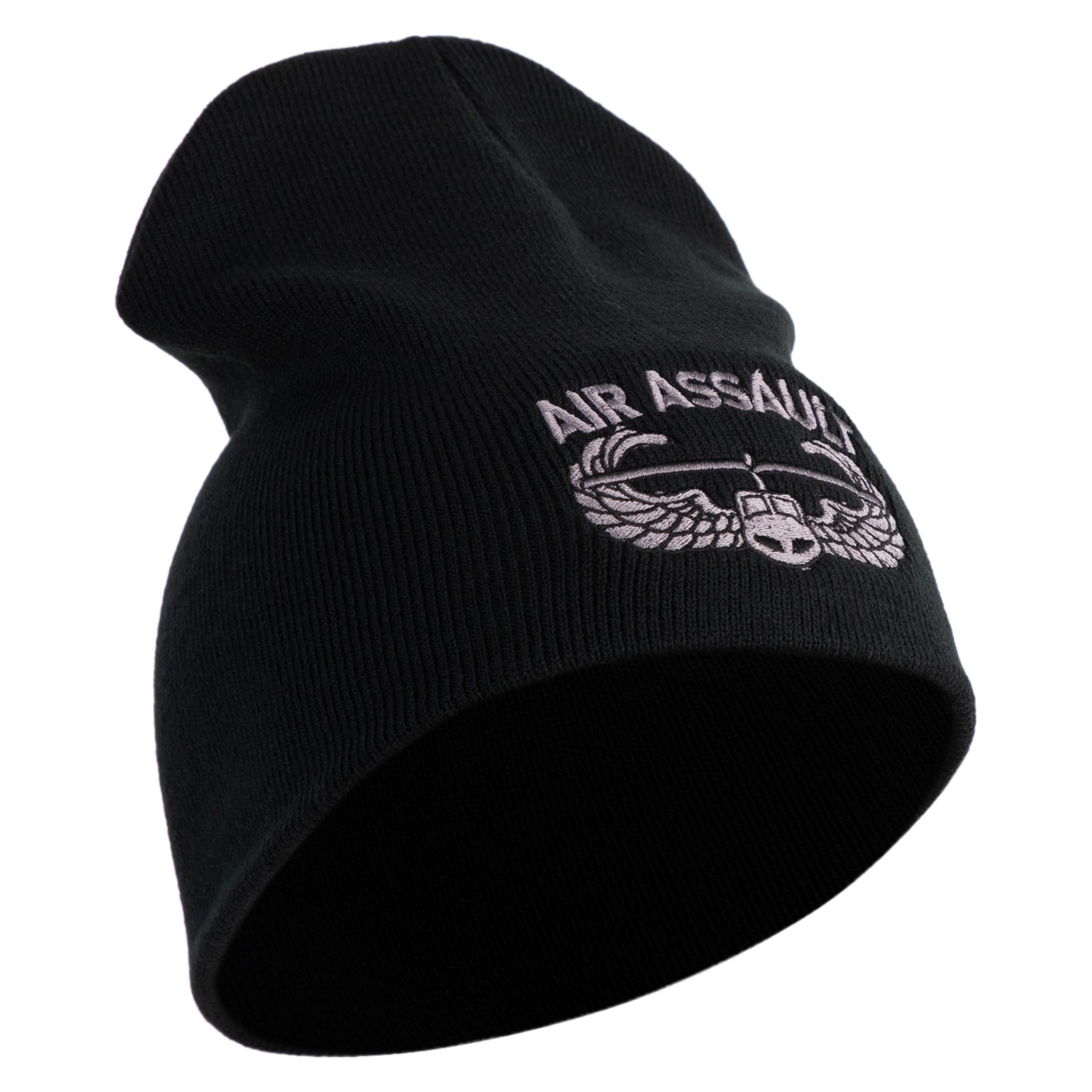Title, U.S. Army Air Assault Badge Symbol Embroidered 8 Inch Solid Knit Short Beanie Made in USA