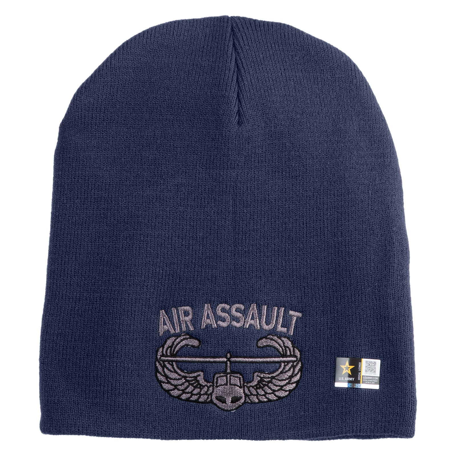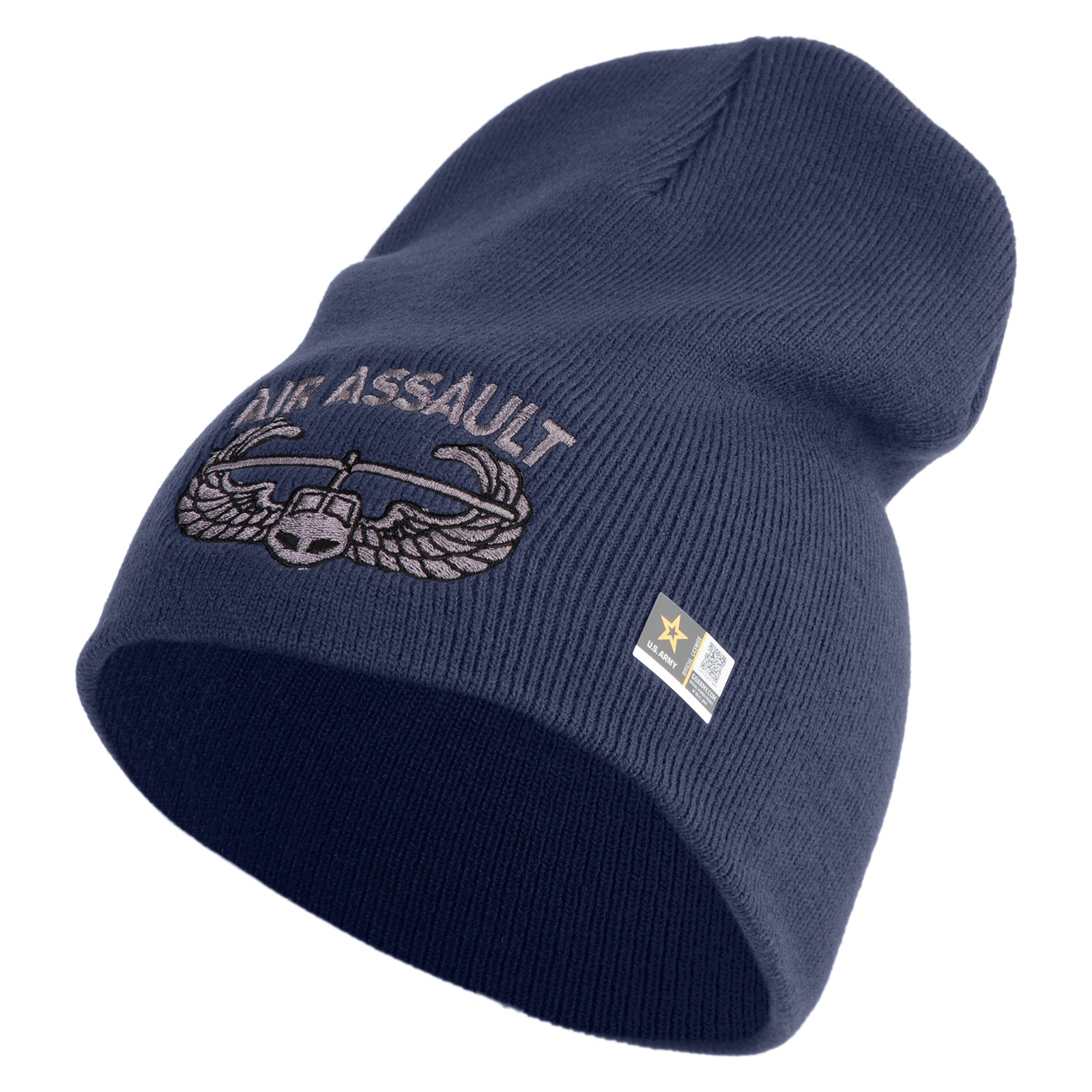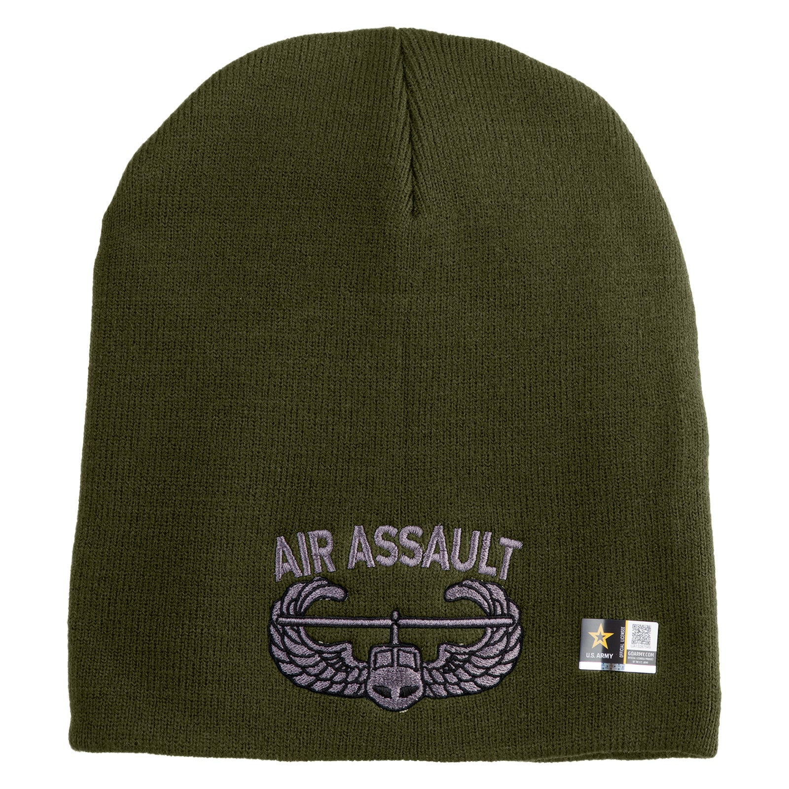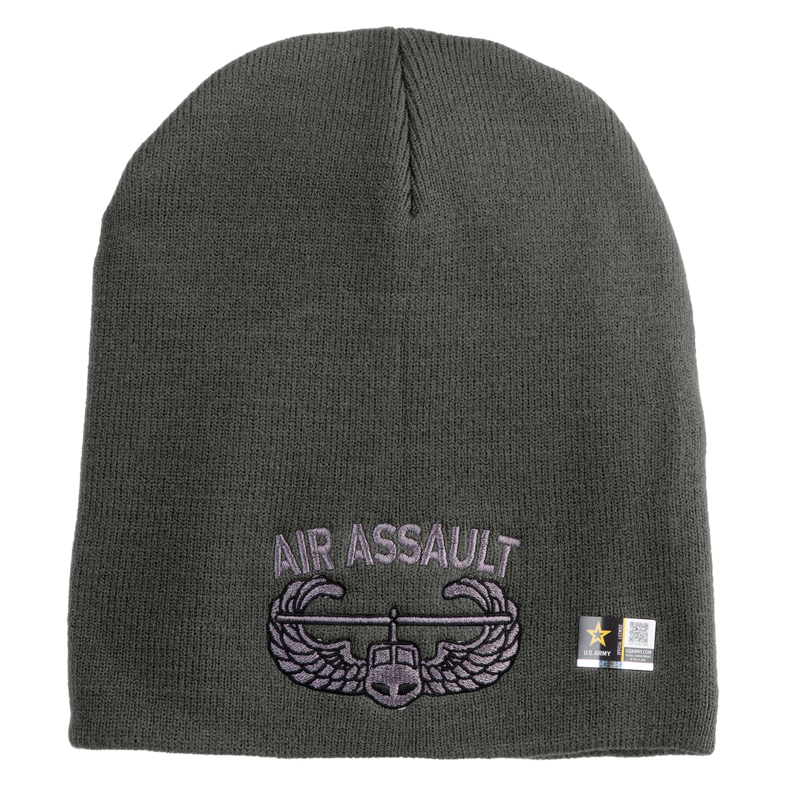 Title, U.S. Army Air Assault Badge Symbol Embroidered 8 Inch Solid Knit Short Beanie Made in USA