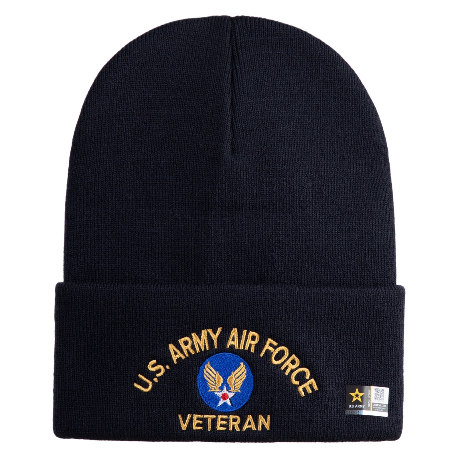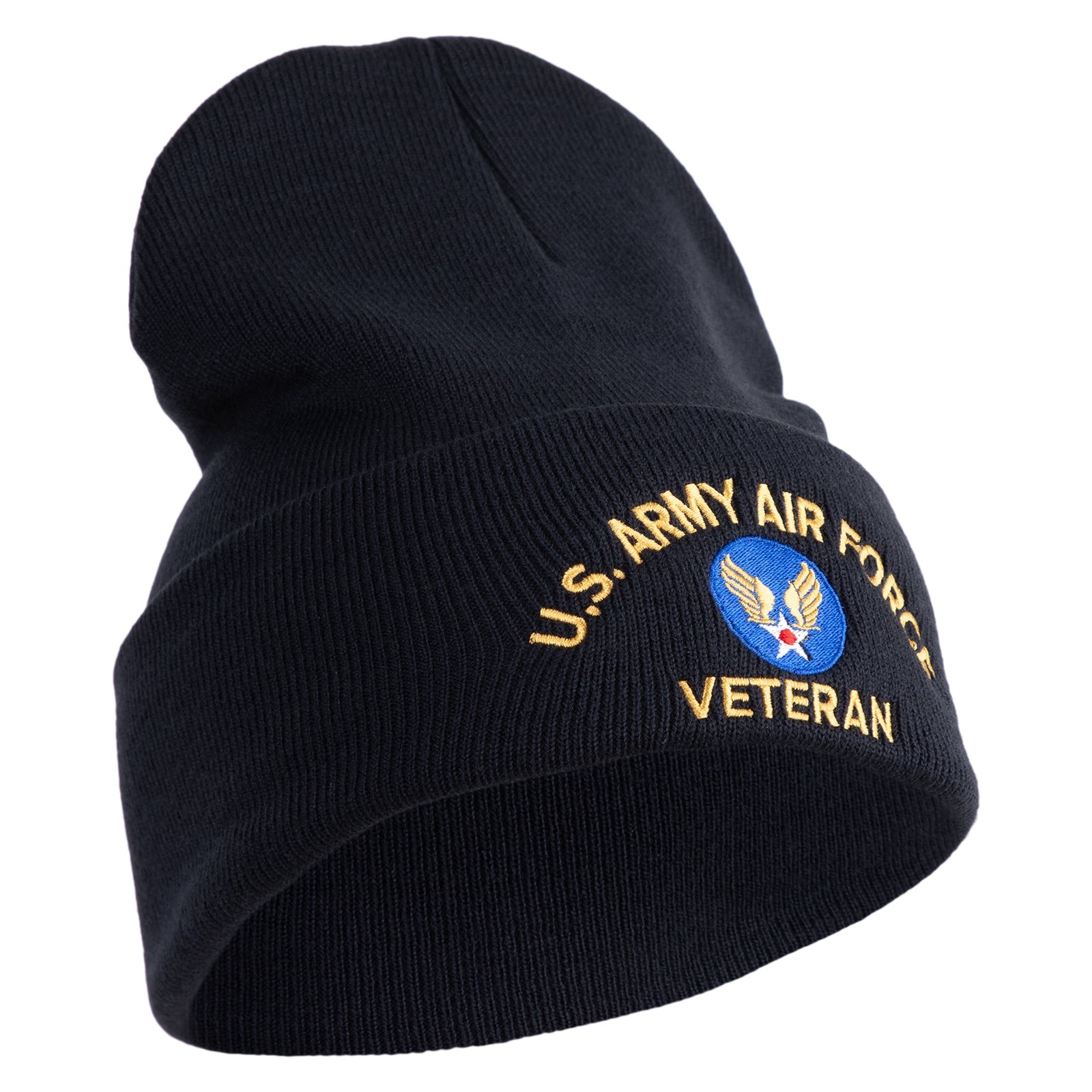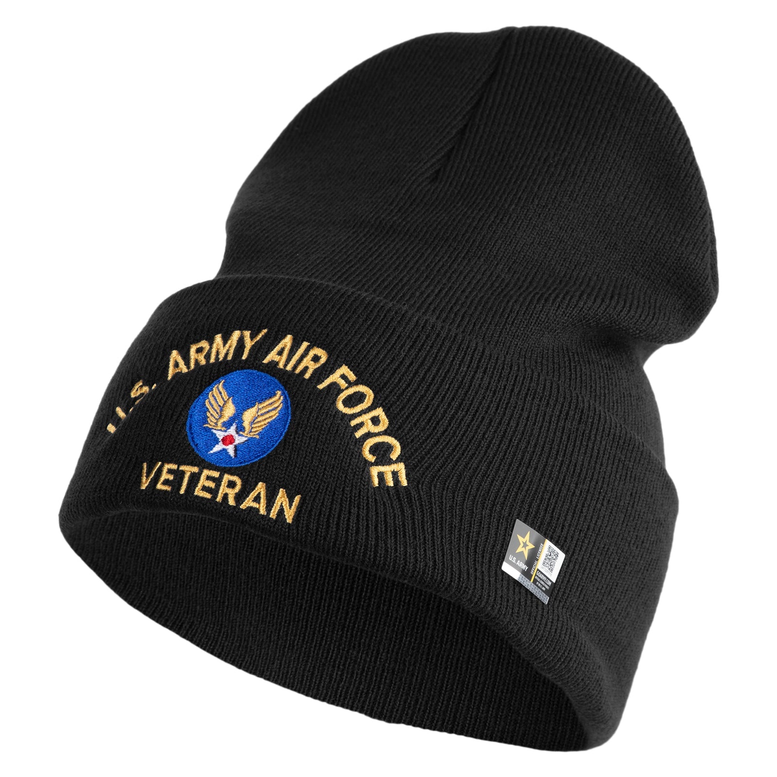 U.S. Army Air Force Logo Embroidered 12 Inch Solid Knit Cuff Long Beanie Made in USA
