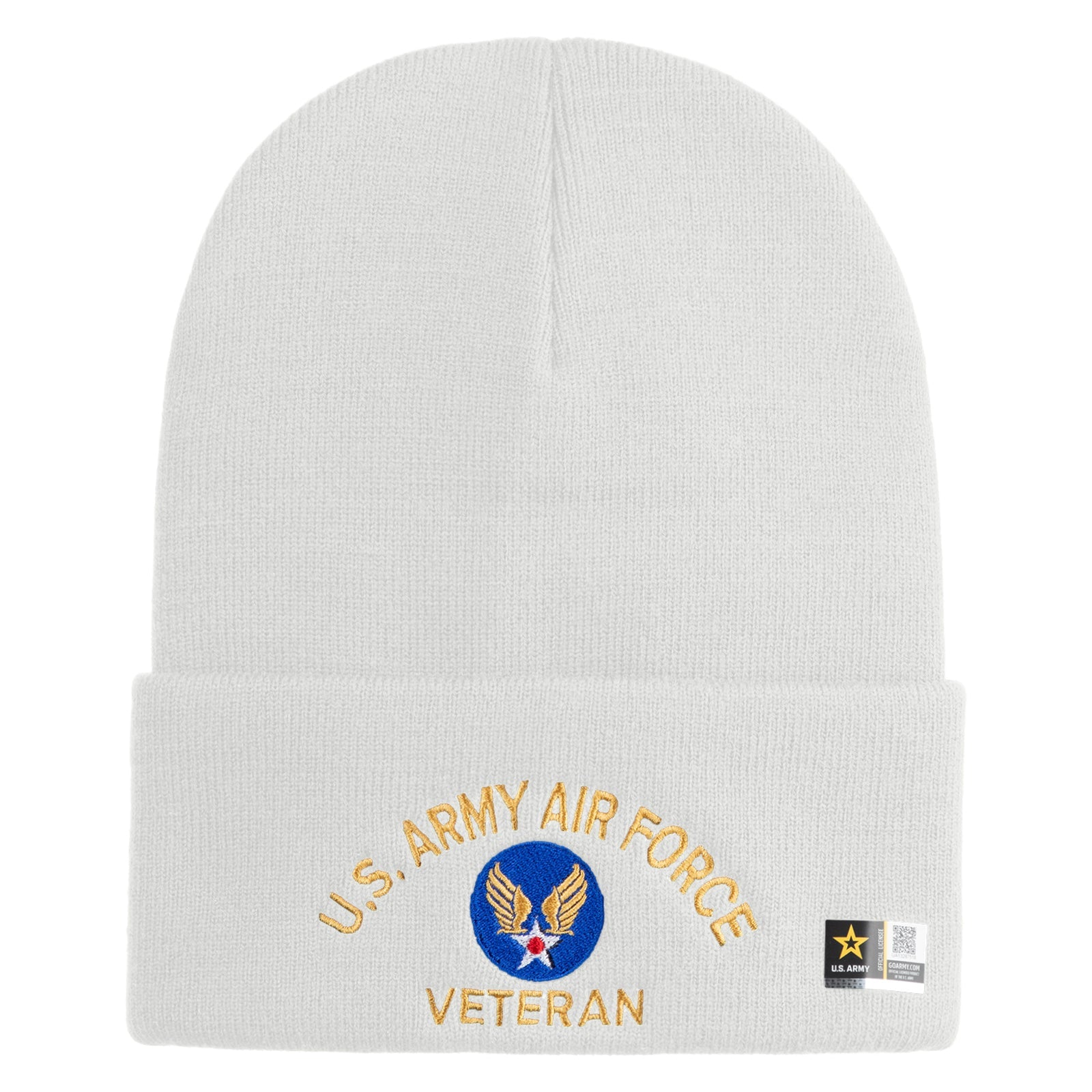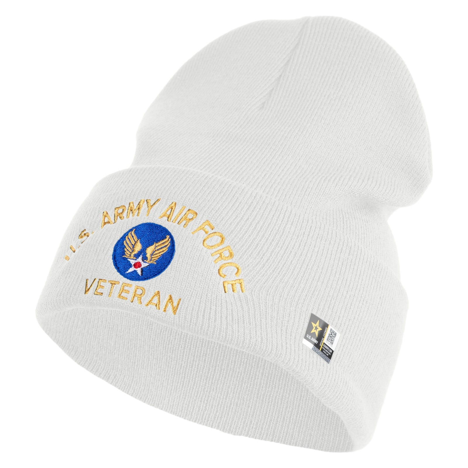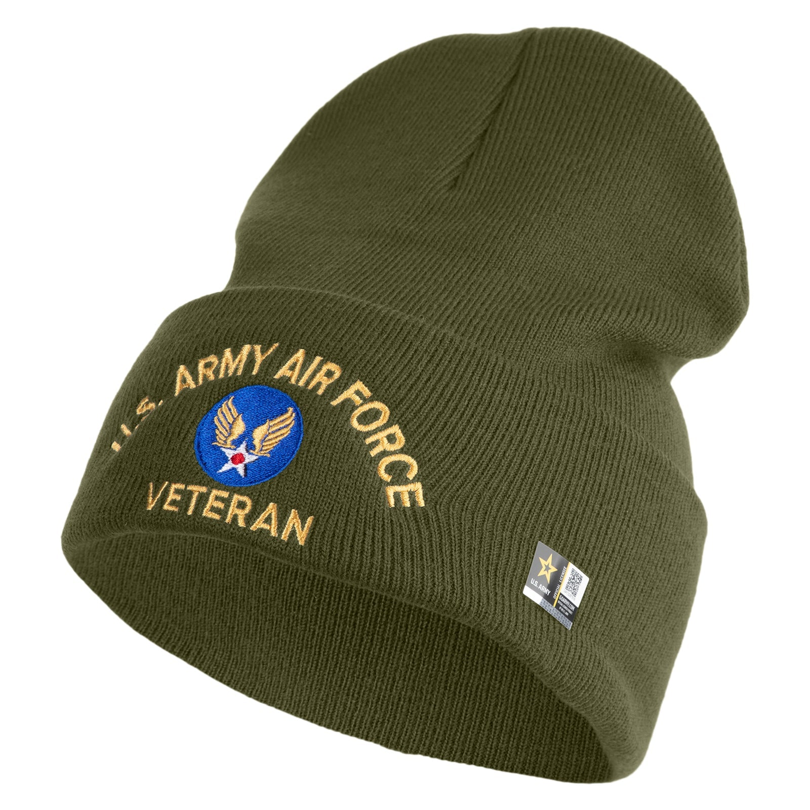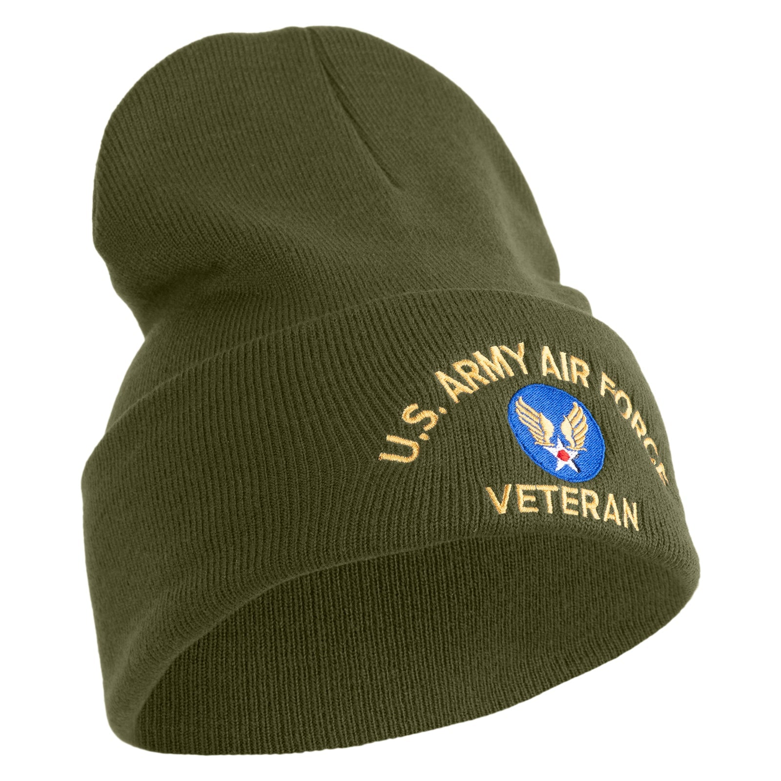 U.S. Army Air Force Logo Embroidered 12 Inch Solid Knit Cuff Long Beanie Made in USA