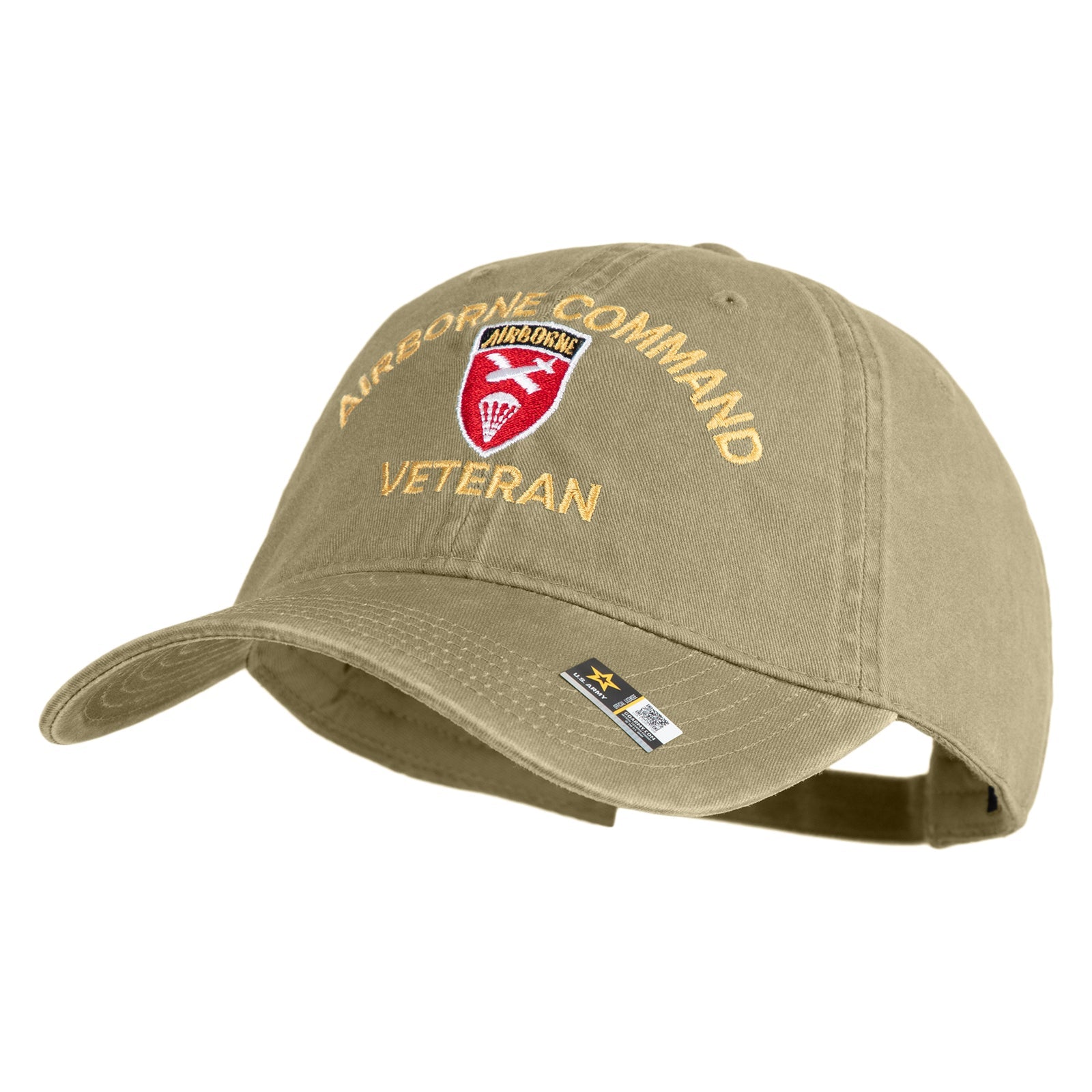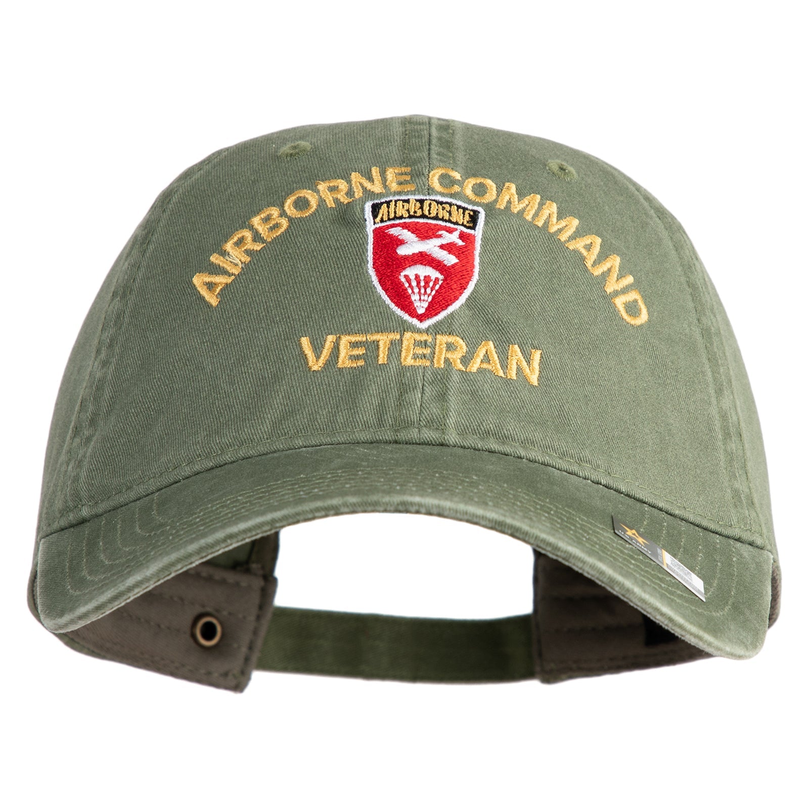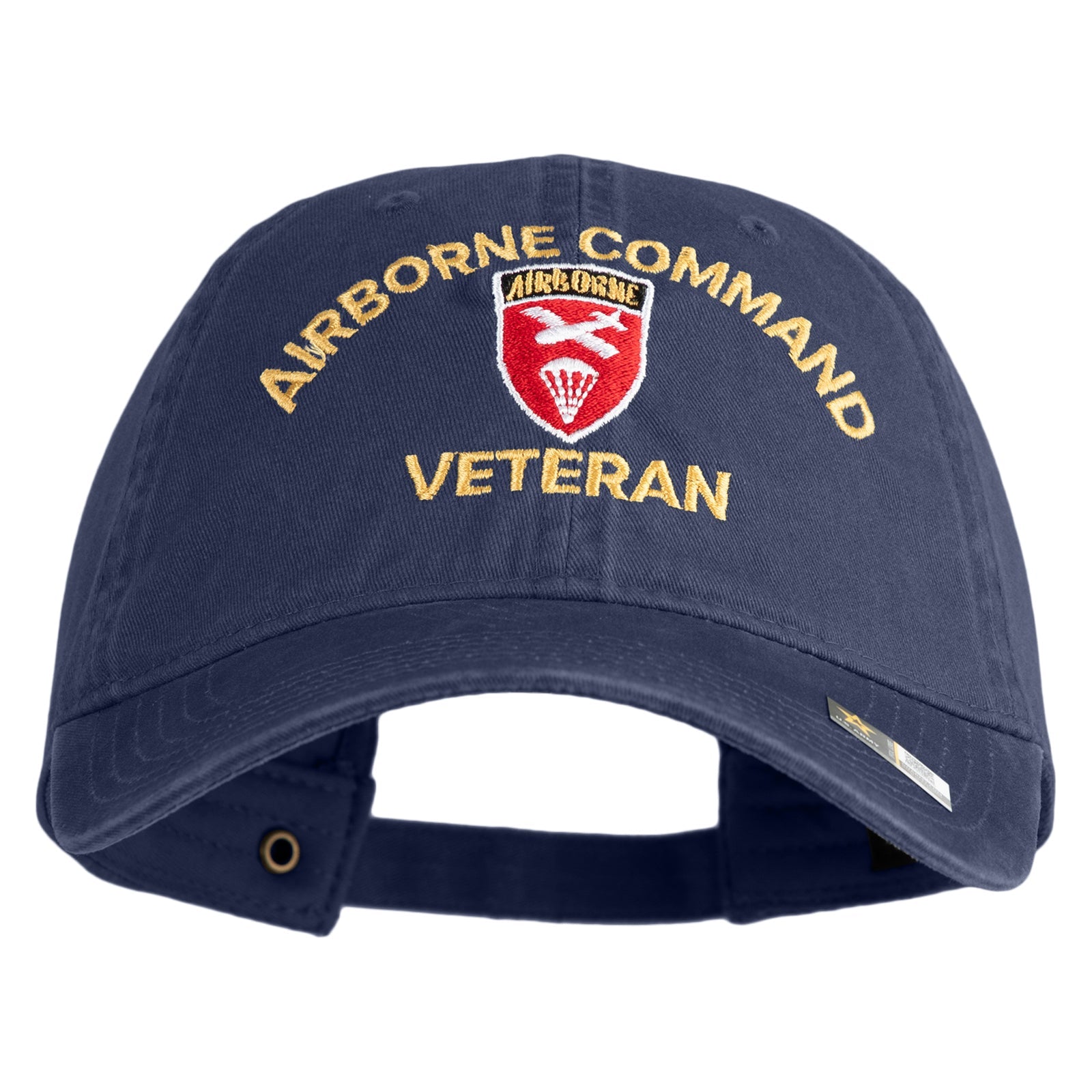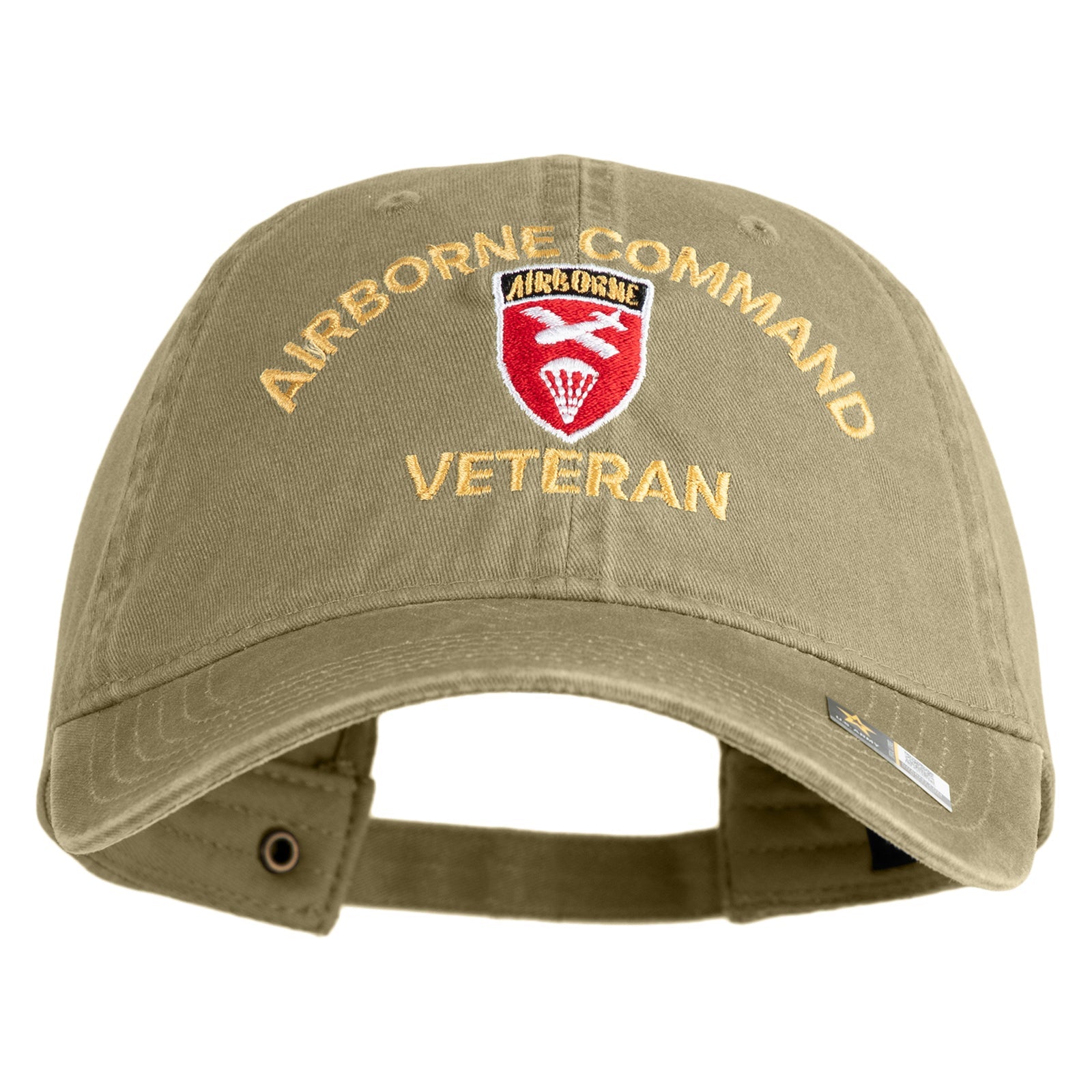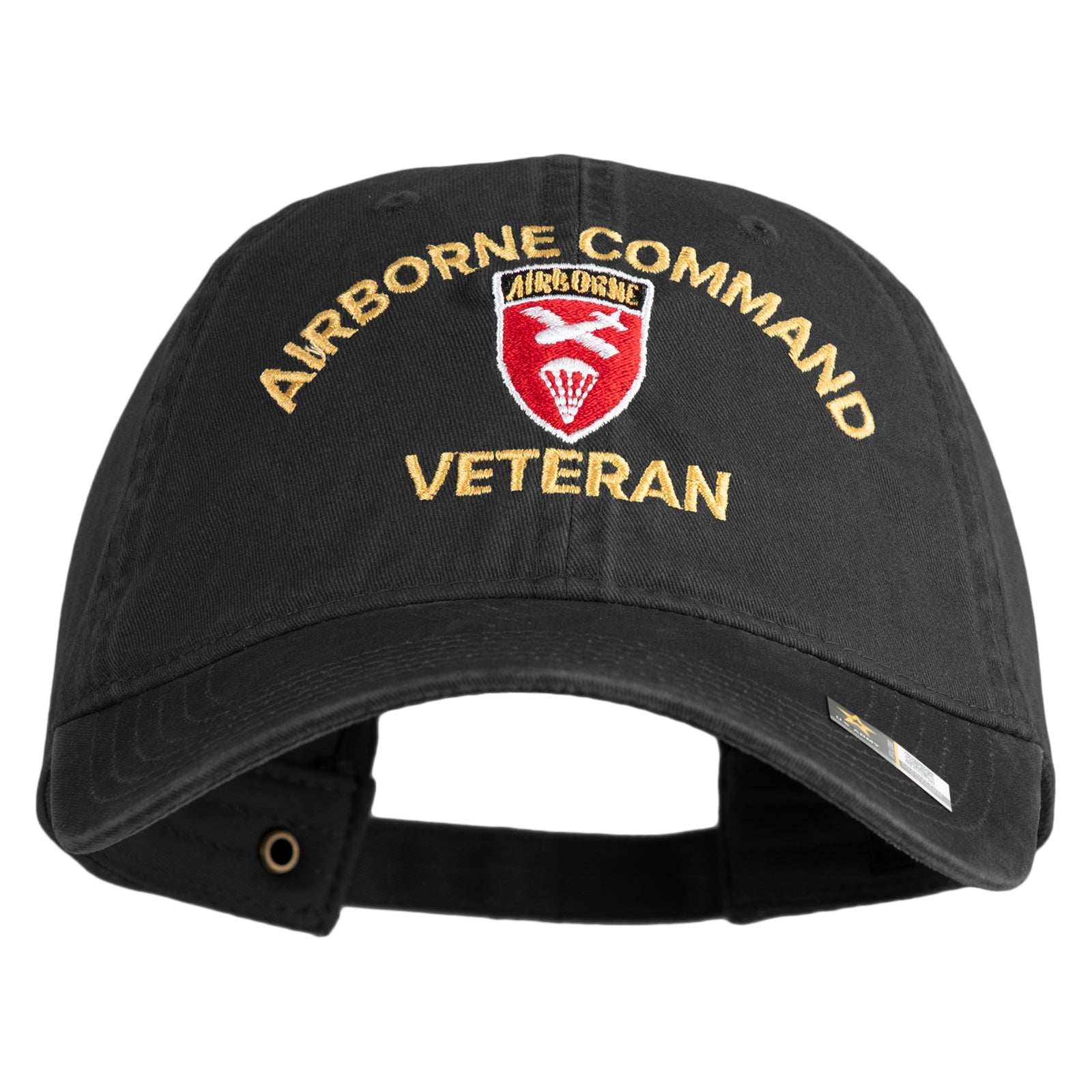U.S. Army Airborne Command Embroidered Washed Solid Pigment Dyed Cotton Twill Brass Buckle Cap