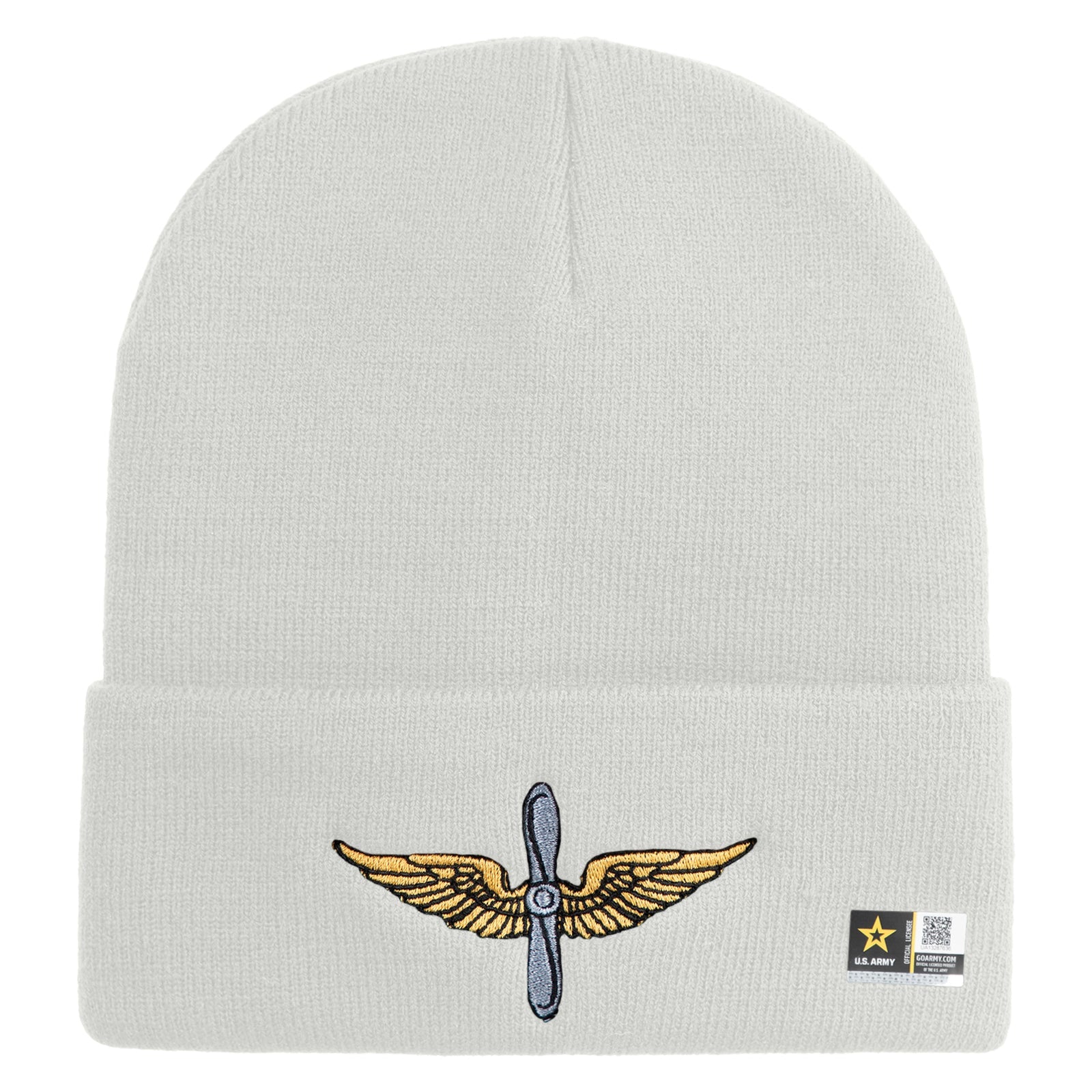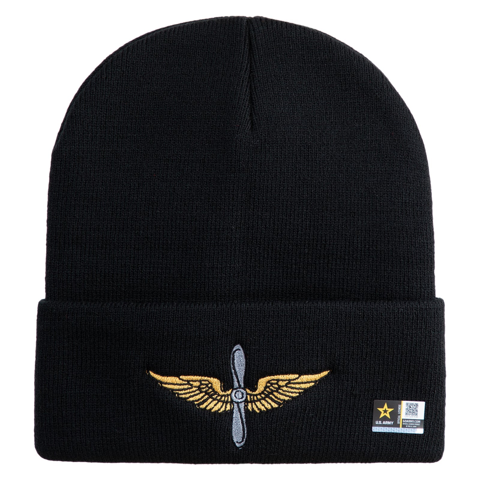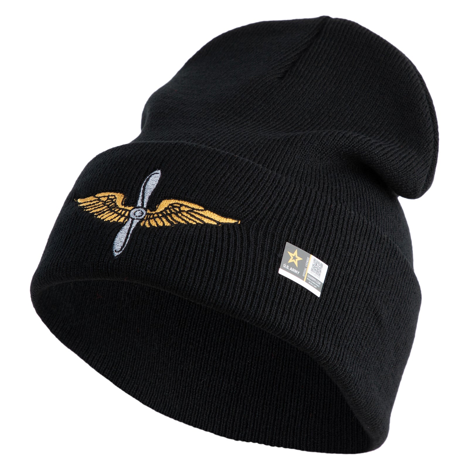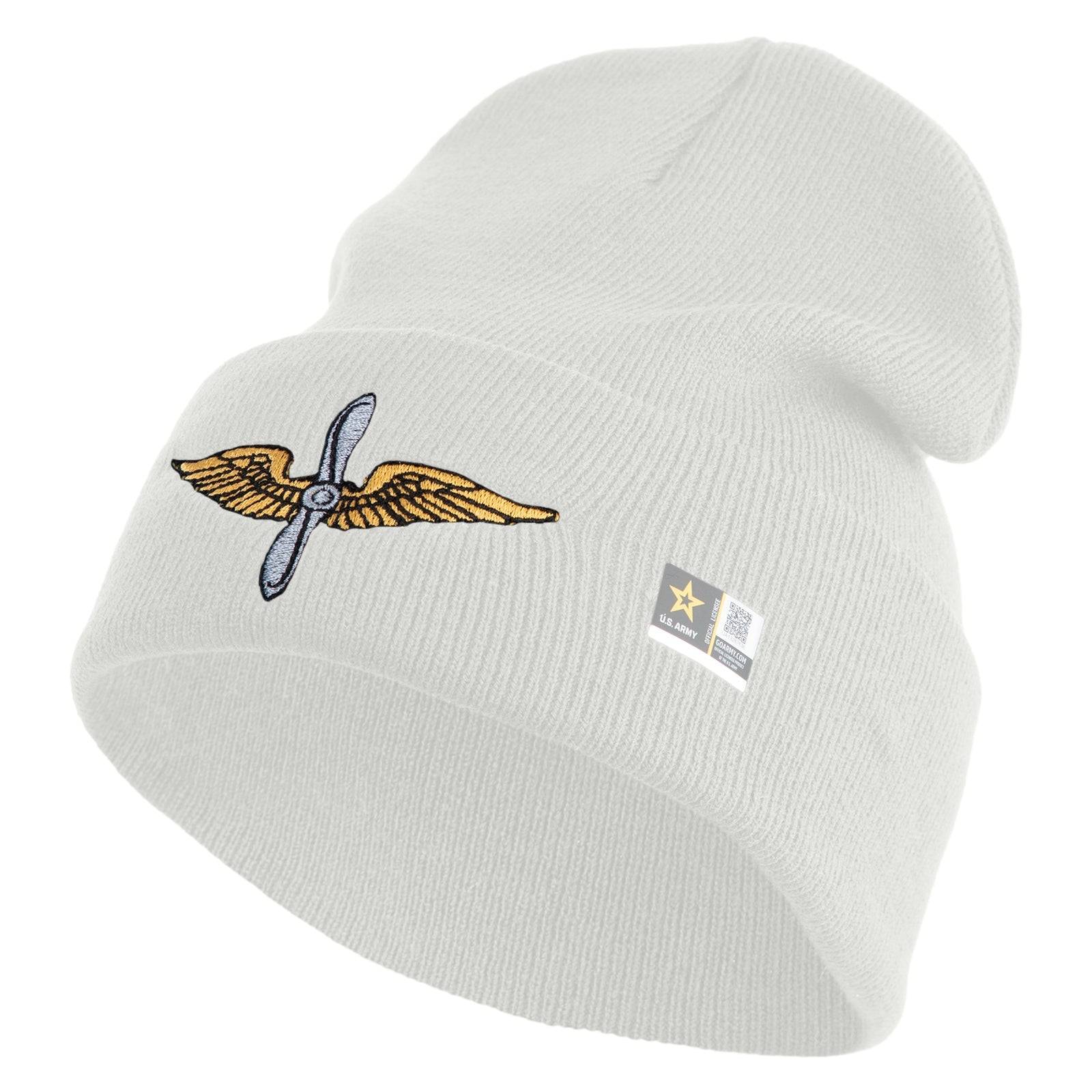 Title, U.S. Army Aviation Logo Embroidered 12 Inch Solid Knit Cuff Long Beanie Made in USA