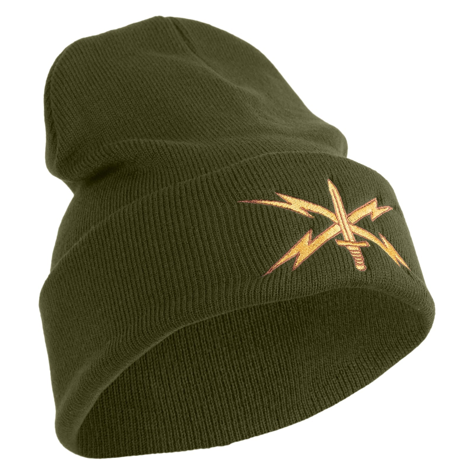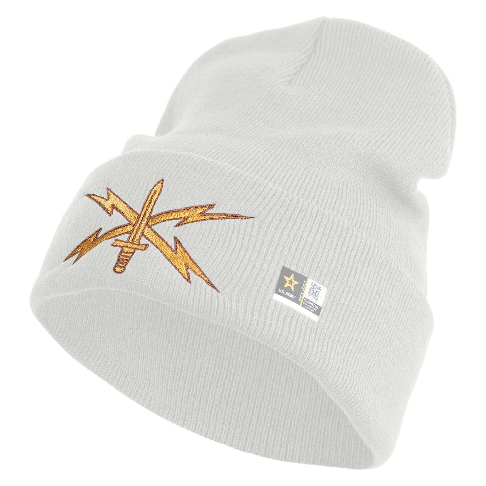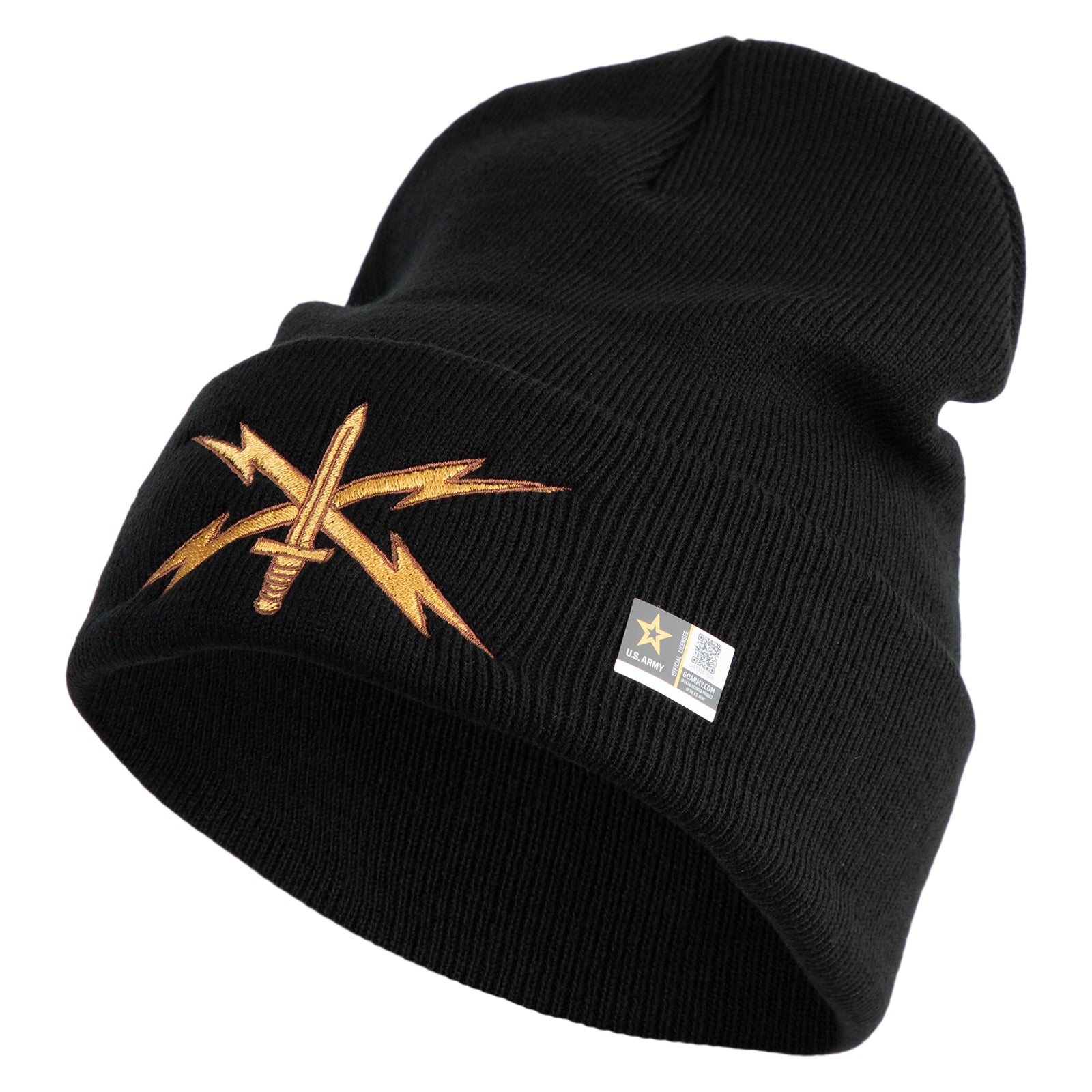 Title, U.S. Army Cyber Corps Logo Embroidered 12 Inch Solid Knit Cuff Long Beanie Made in USA