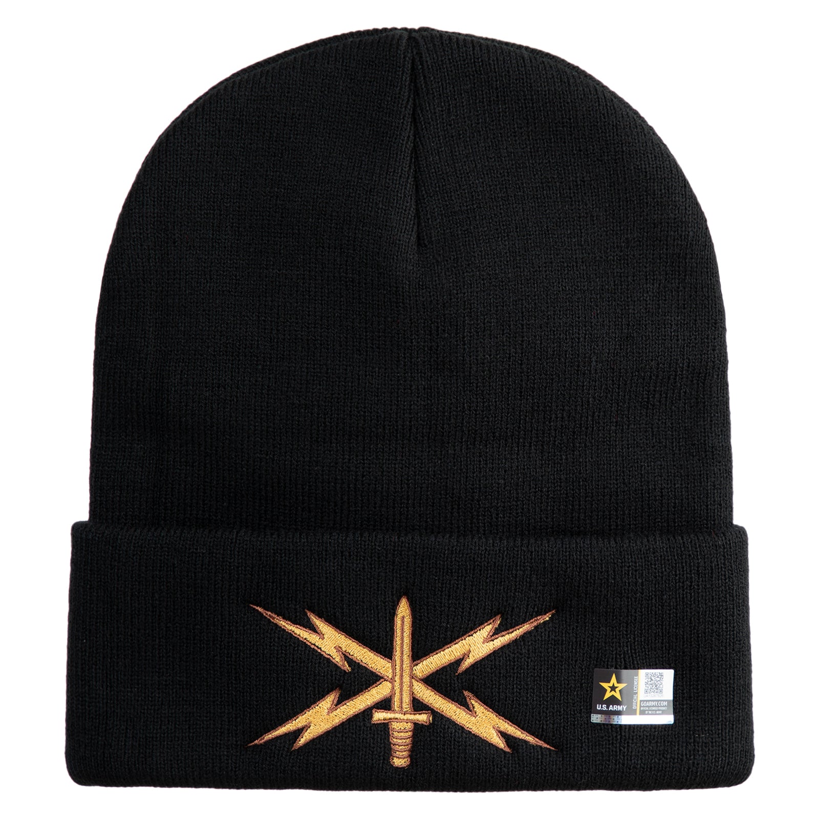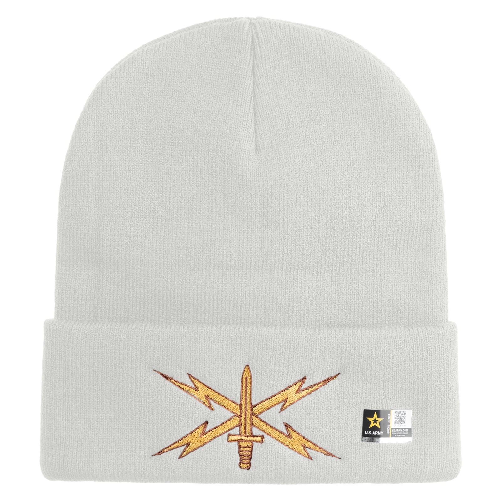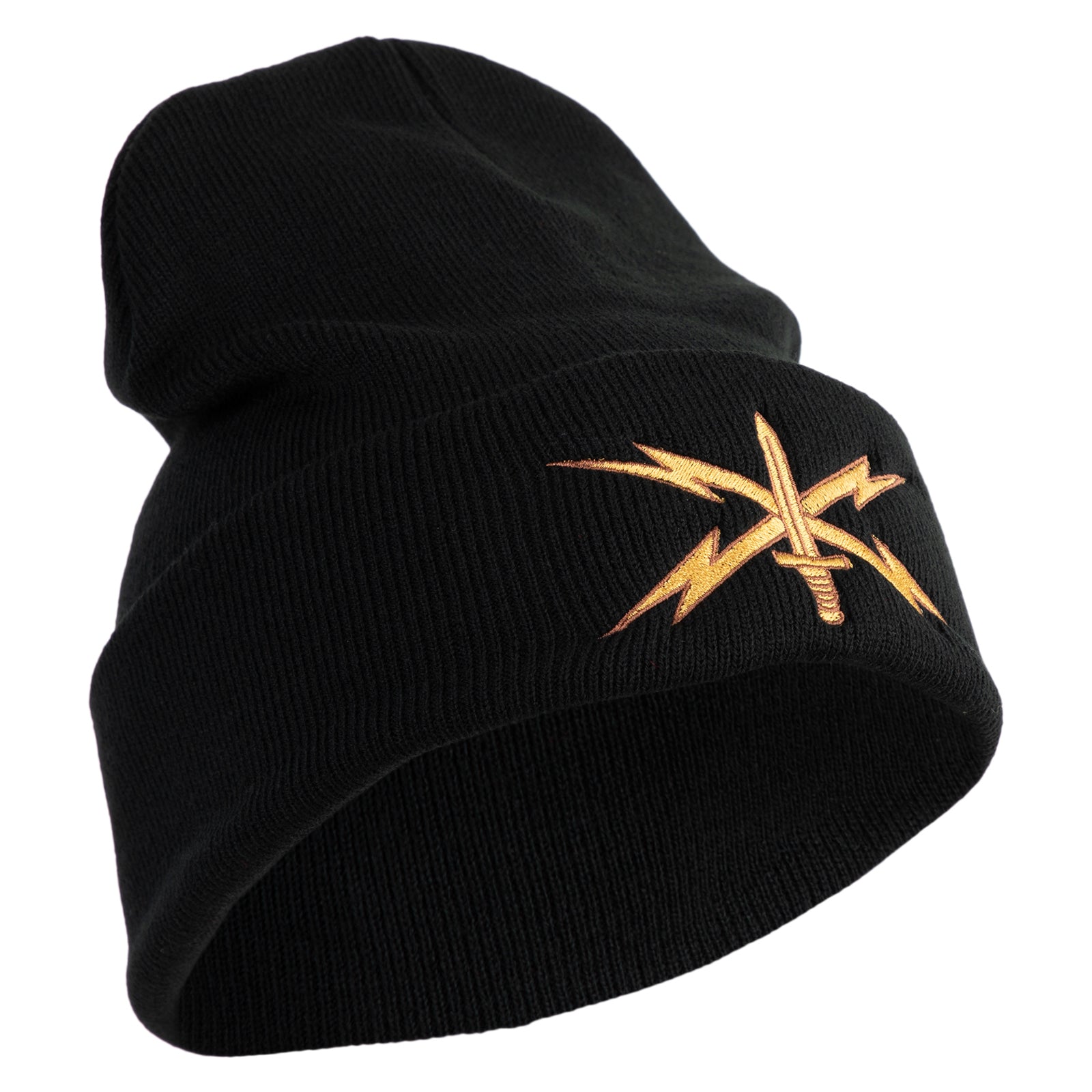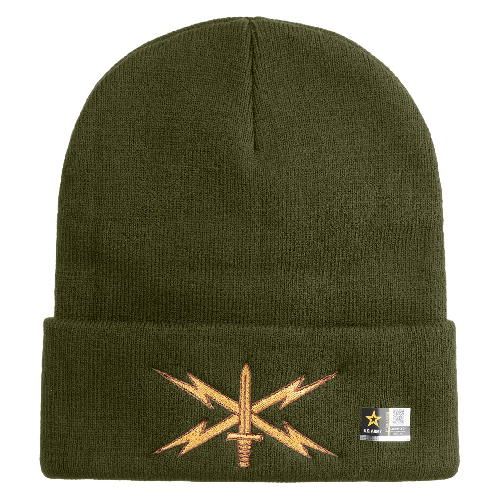 Title, U.S. Army Cyber Corps Logo Embroidered 12 Inch Solid Knit Cuff Long Beanie Made in USA
