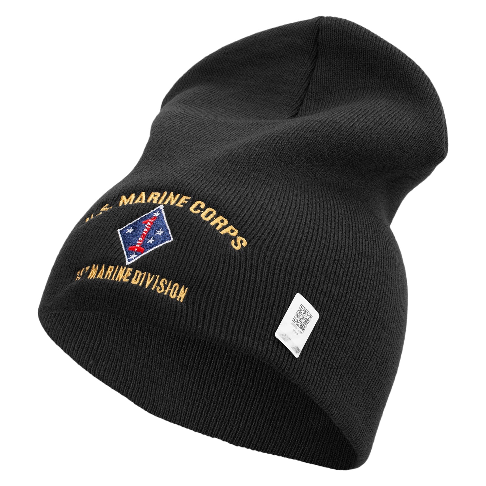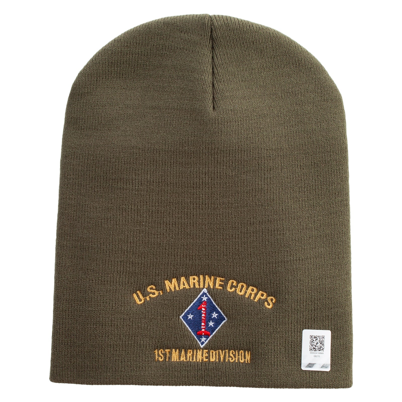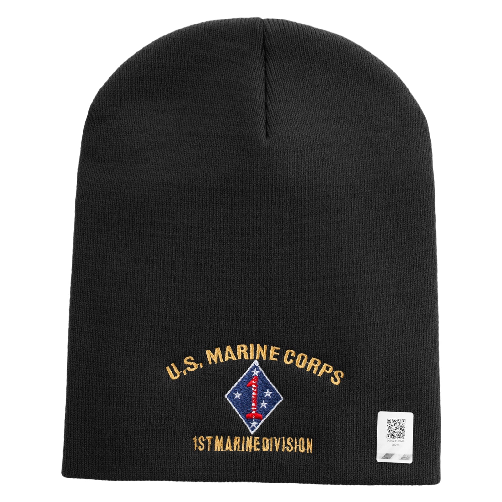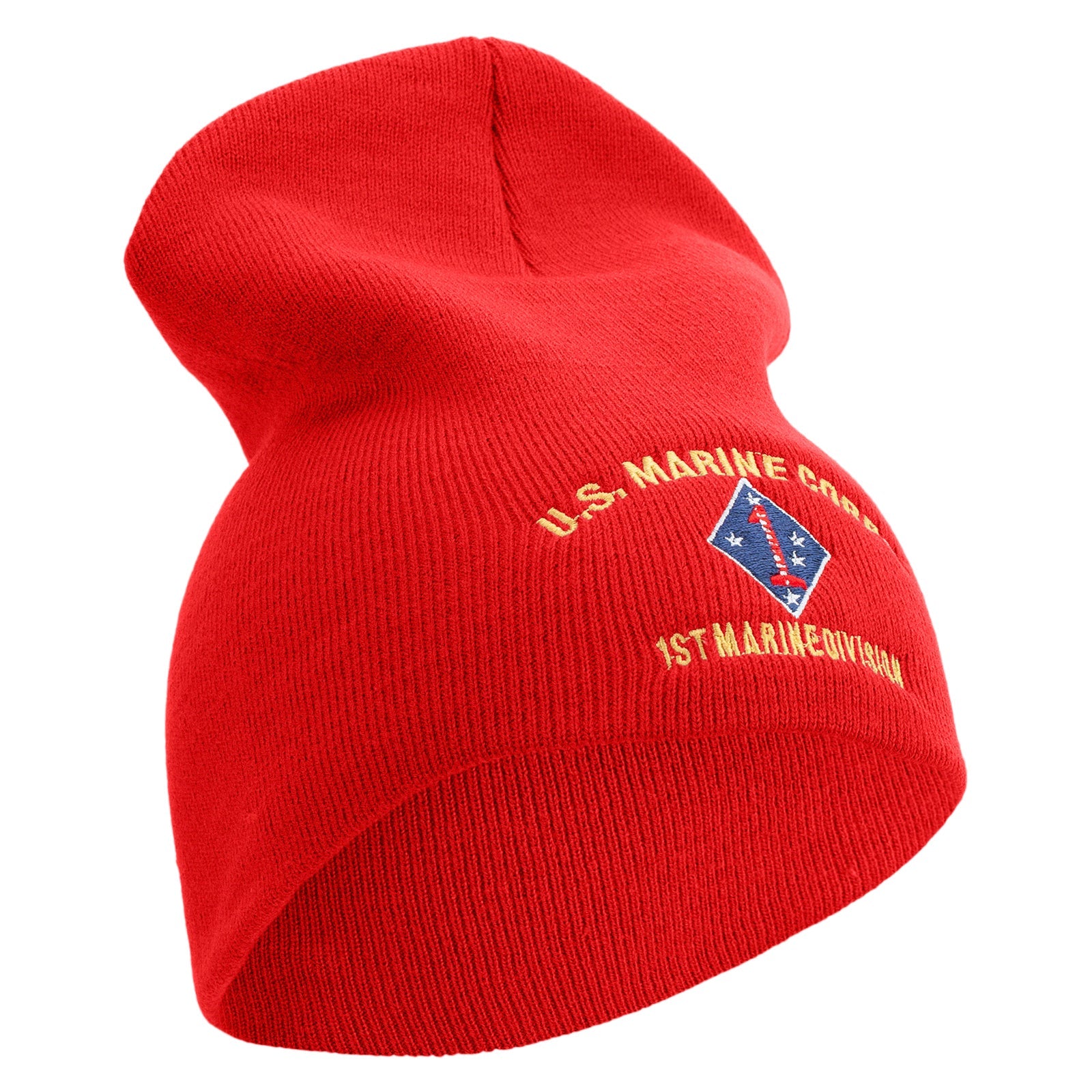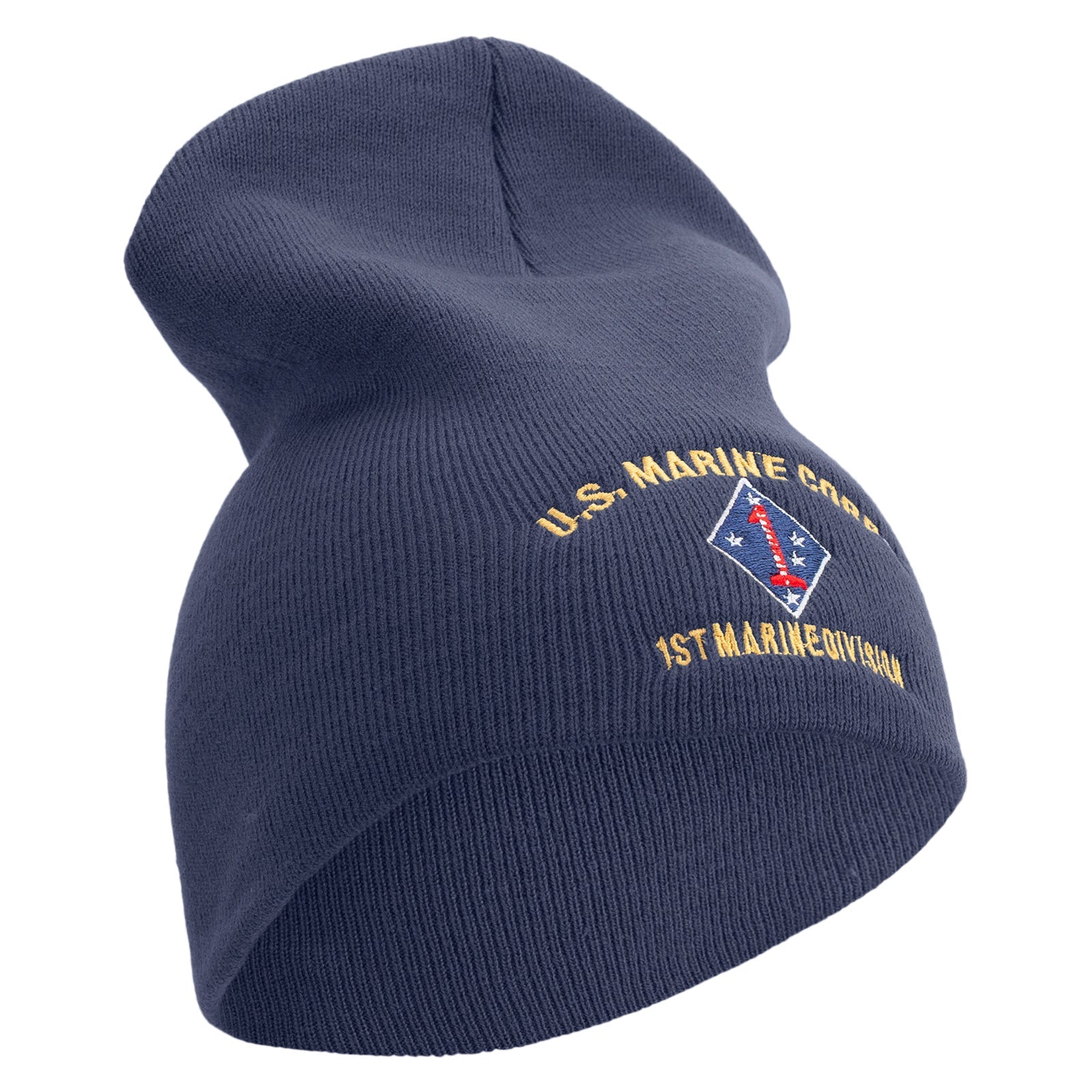 Title, U.S. Marine Corps 1st Marine Division Symbol Embroidered 8 Inch Solid Knit Short Beanie Made in USA