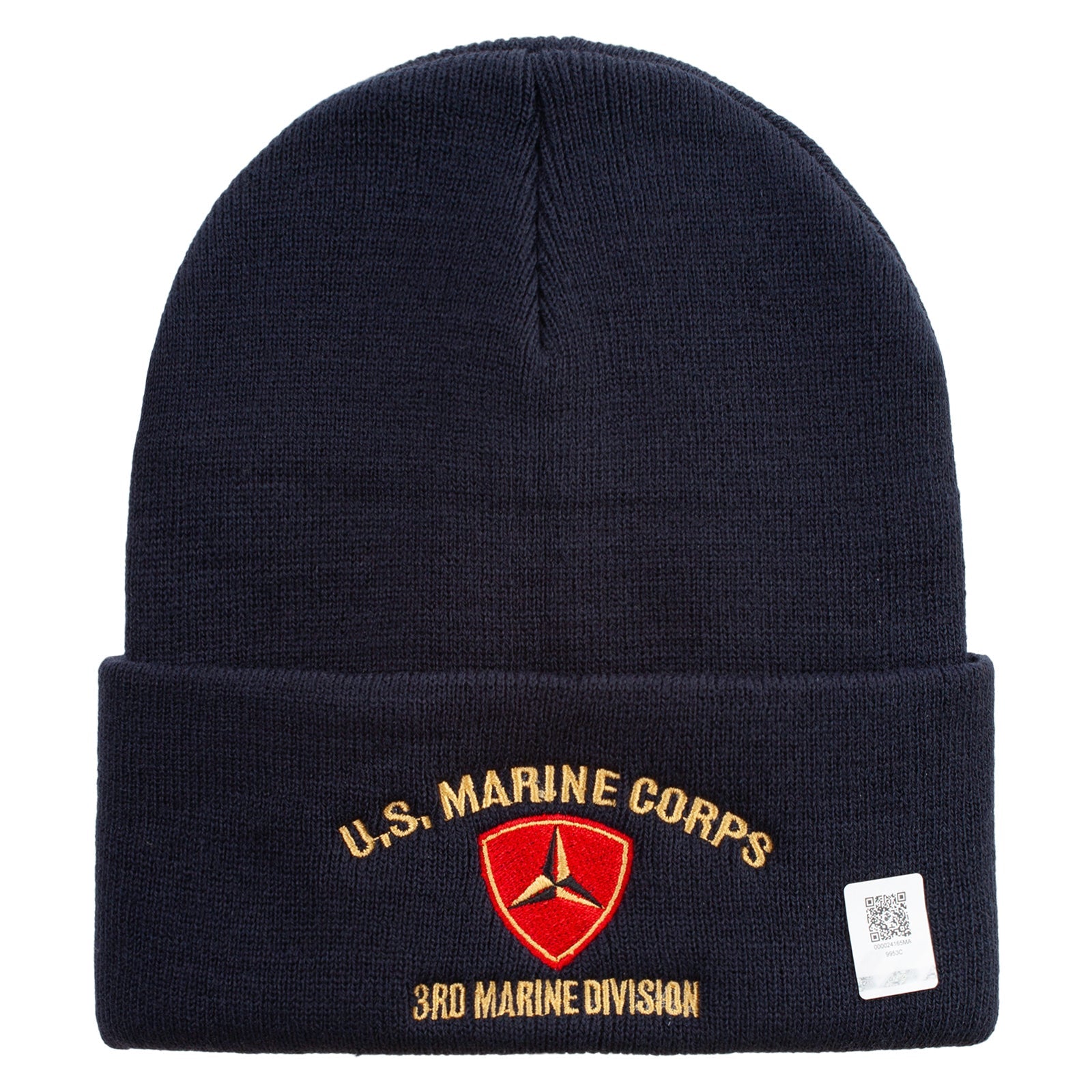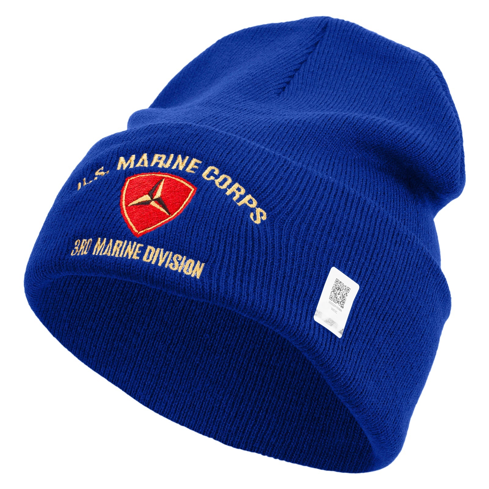 Title, U.S. Marine Corps 3rd Marine Division Logo Embroidered 12 Inch Solid Knit Cuff Long Beanie Made in USA