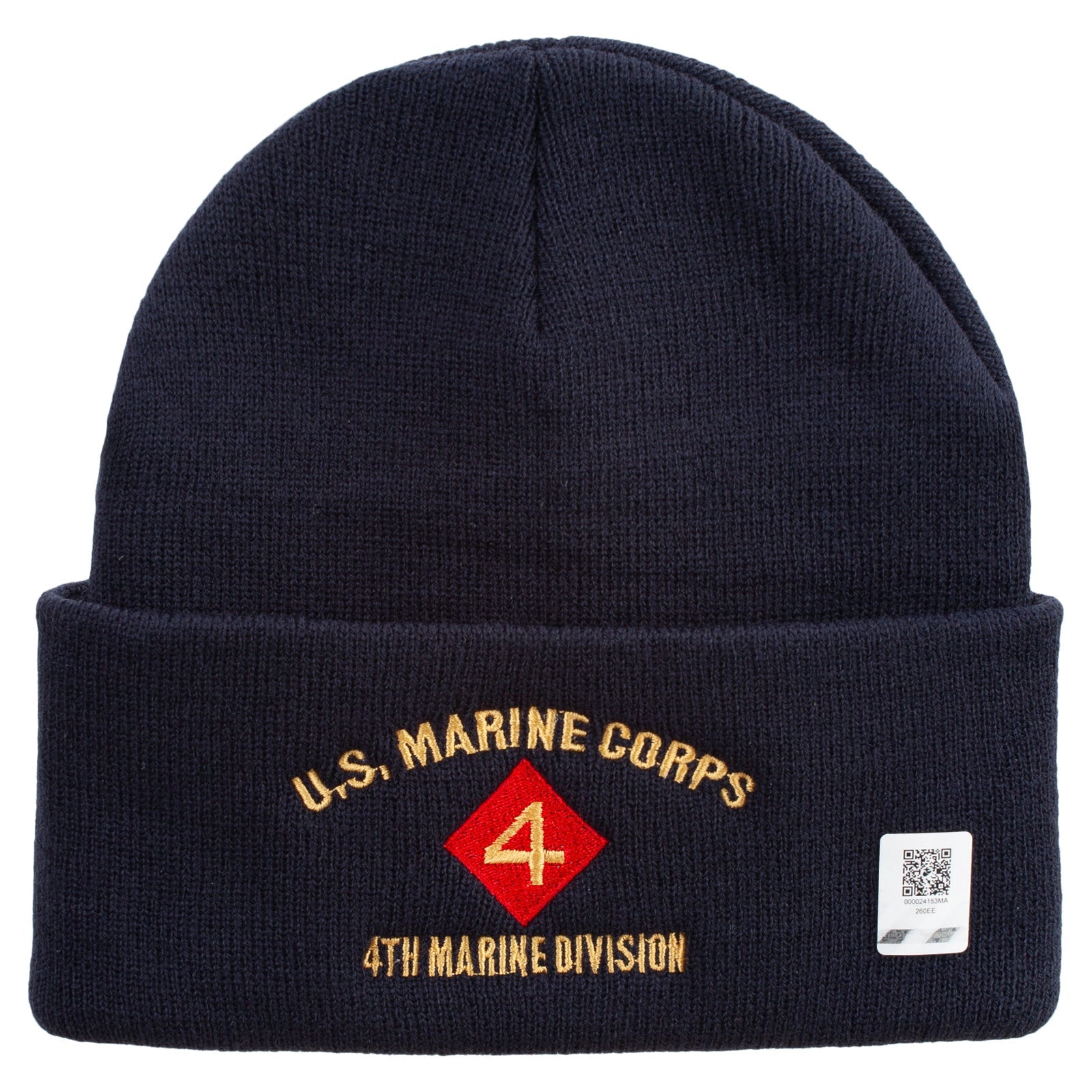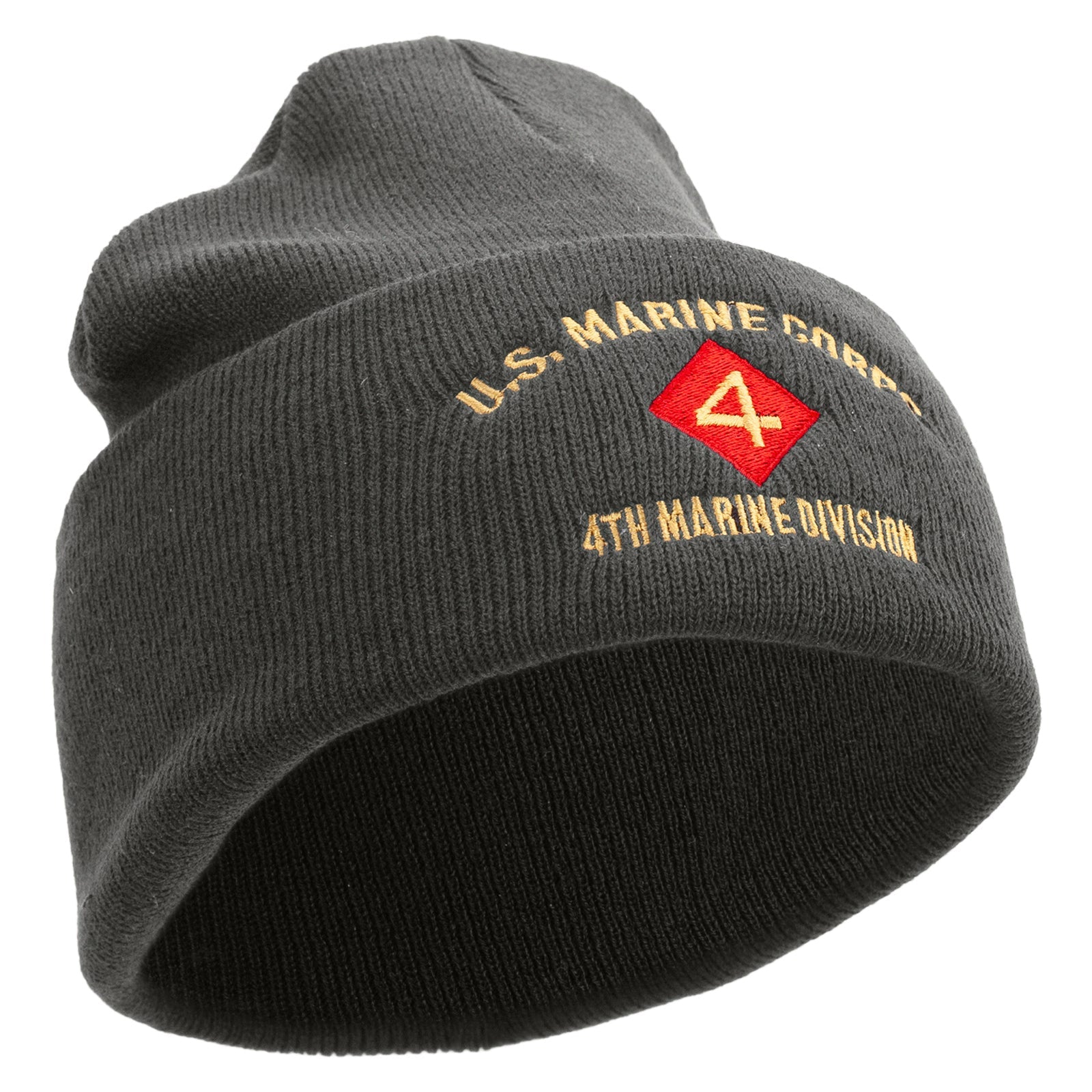 Title, U.S. Marine Corps 4th Marine Division Logo Embroidered 12 Inch Solid Knit Cuff Long Beanie Made in USA