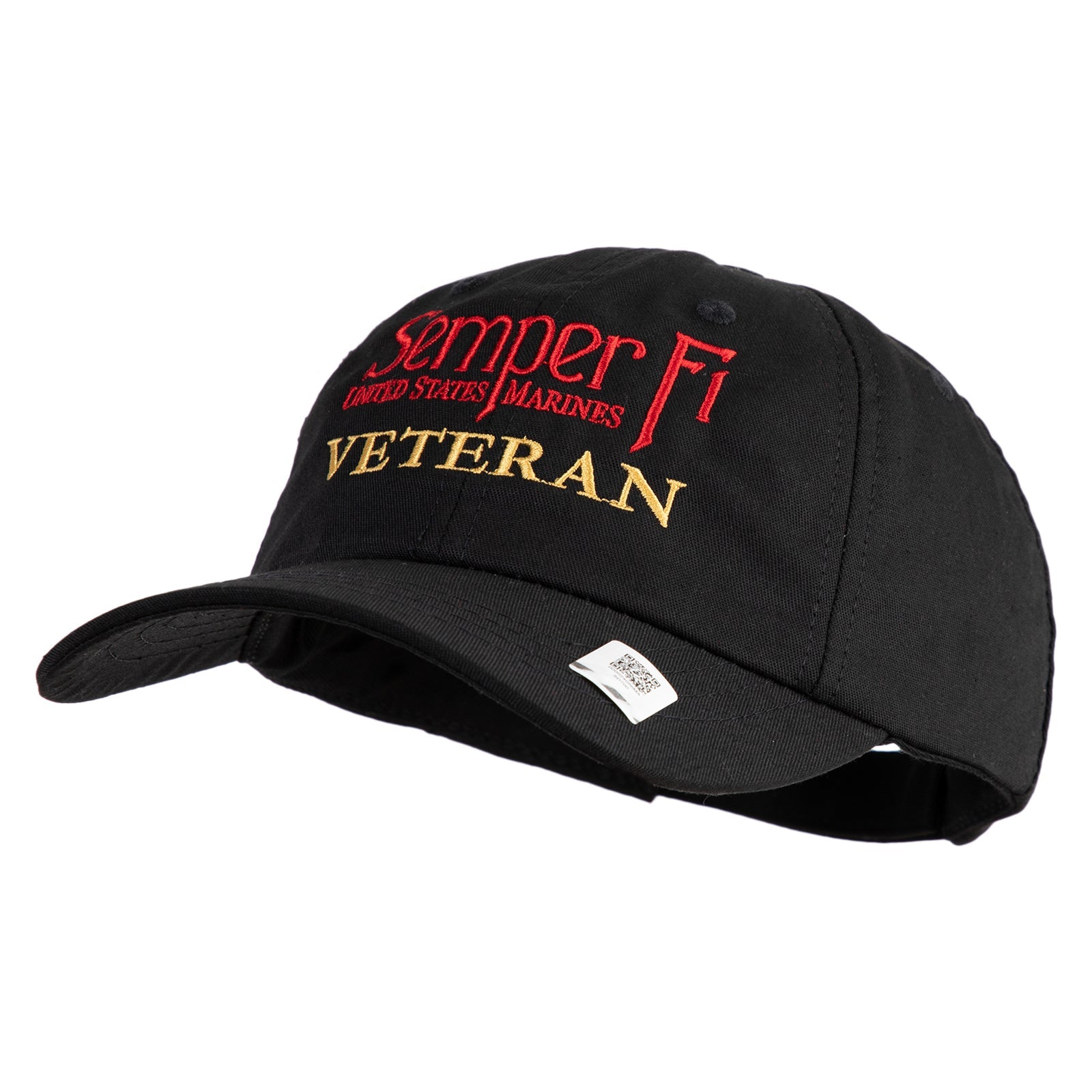 Title, United States Marines Semper Fi Veteran Embroidered Cotton Twill Cap Made in USA