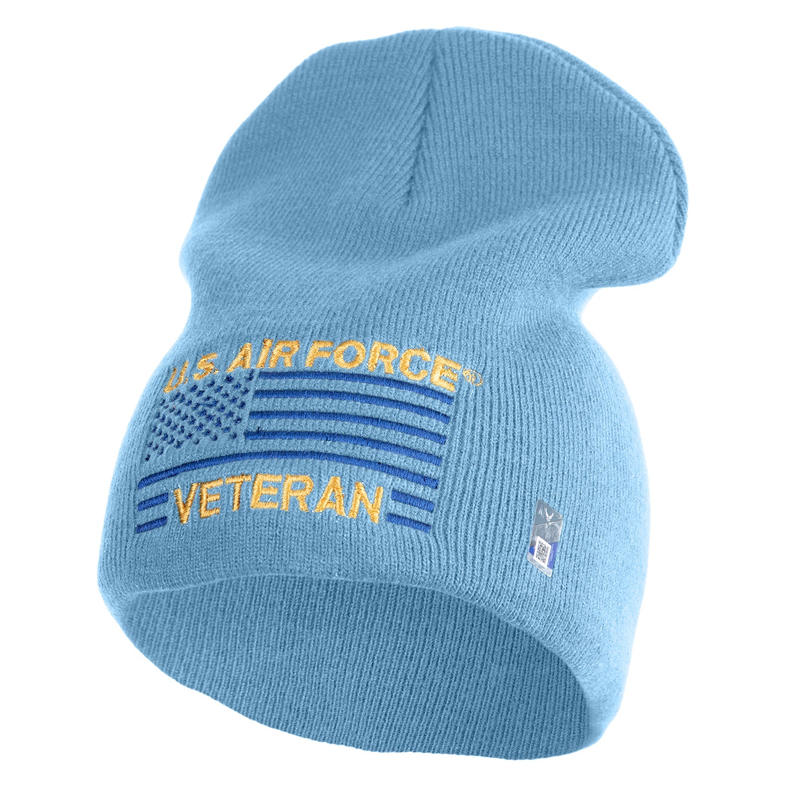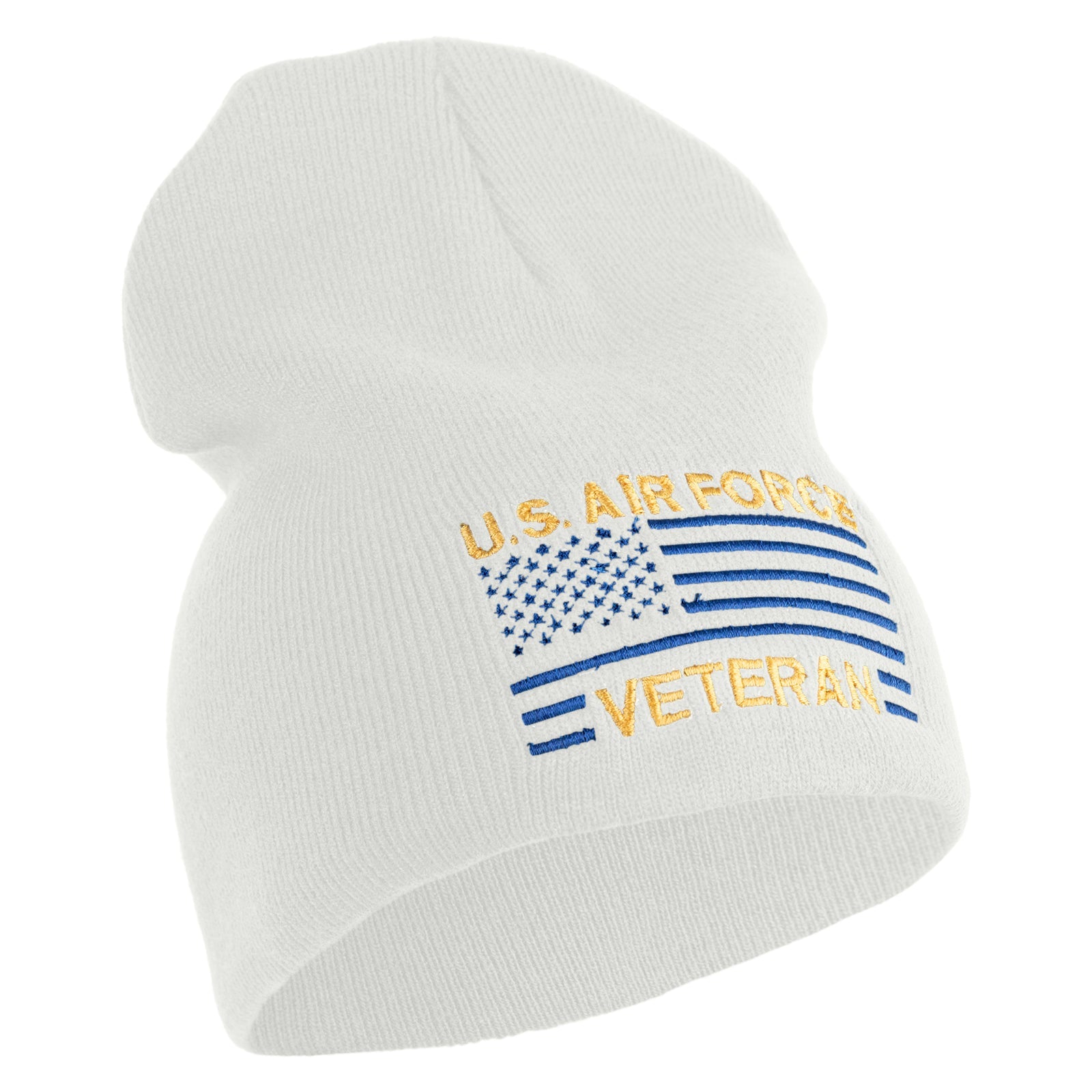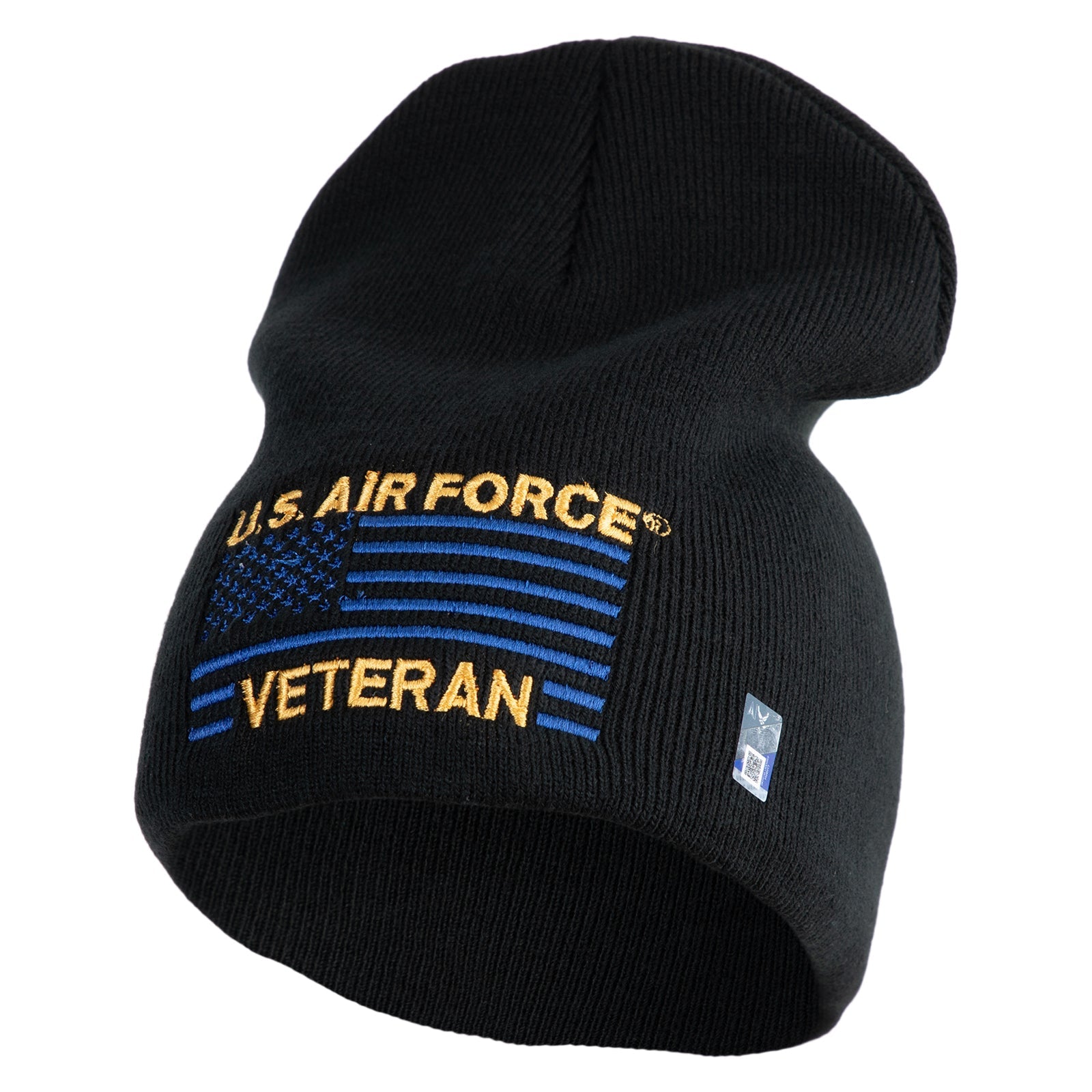 US Air Force Veteran with Flag Symbol Embroidered 8 Inch Solid Knit Short Beanie Made in USA