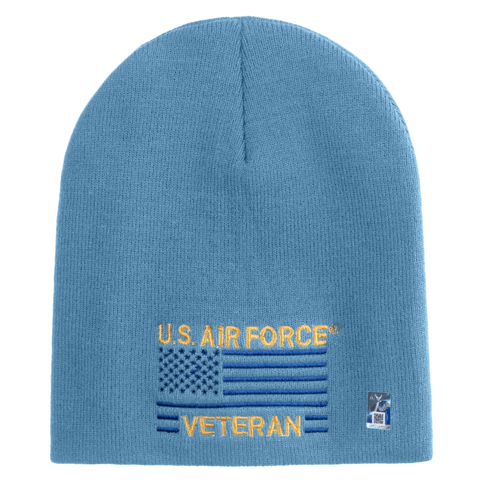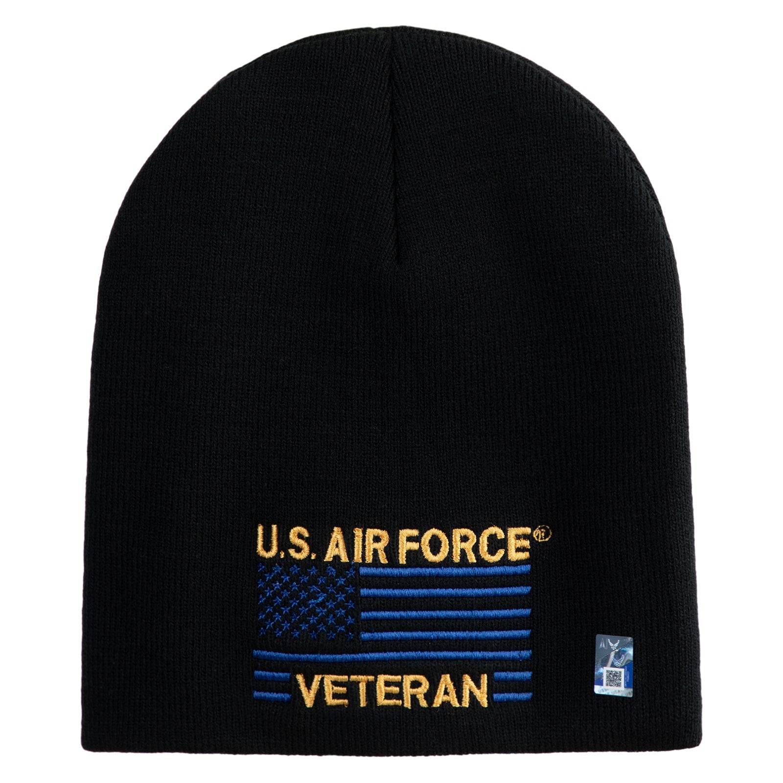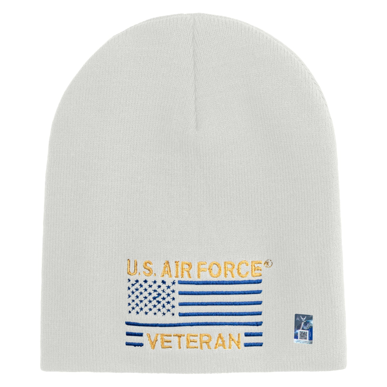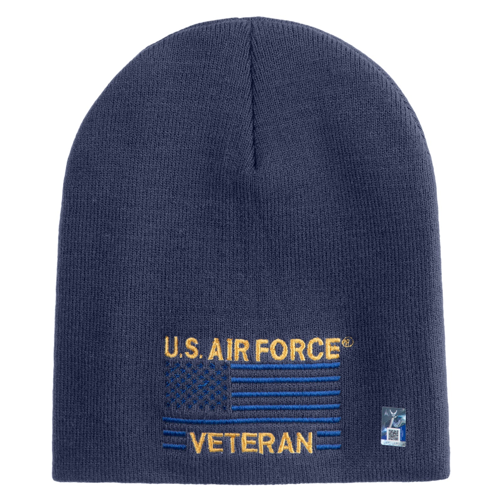 US Air Force Veteran with Flag Symbol Embroidered 8 Inch Solid Knit Short Beanie Made in USA