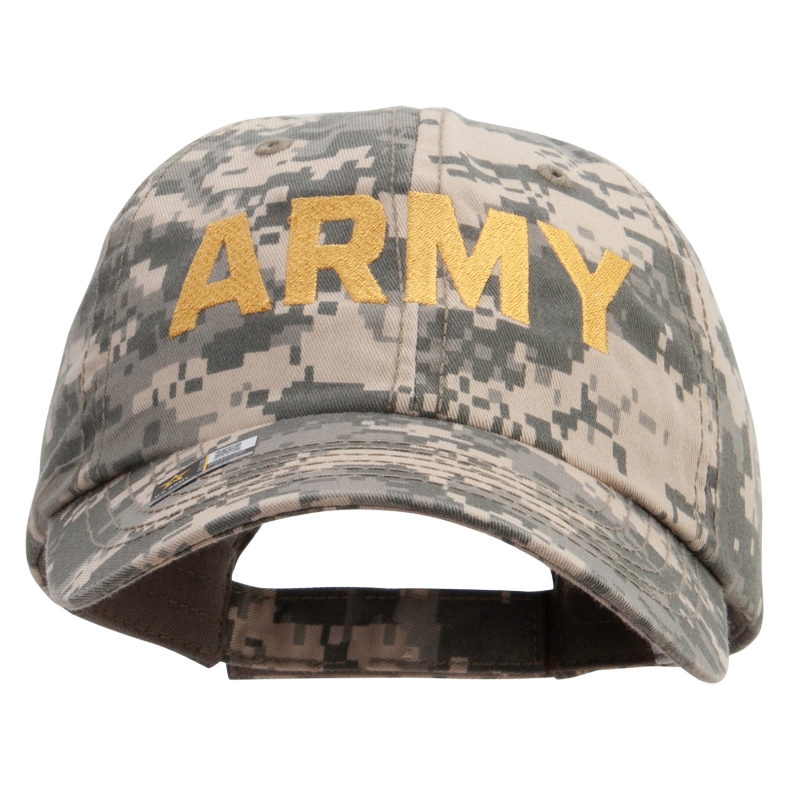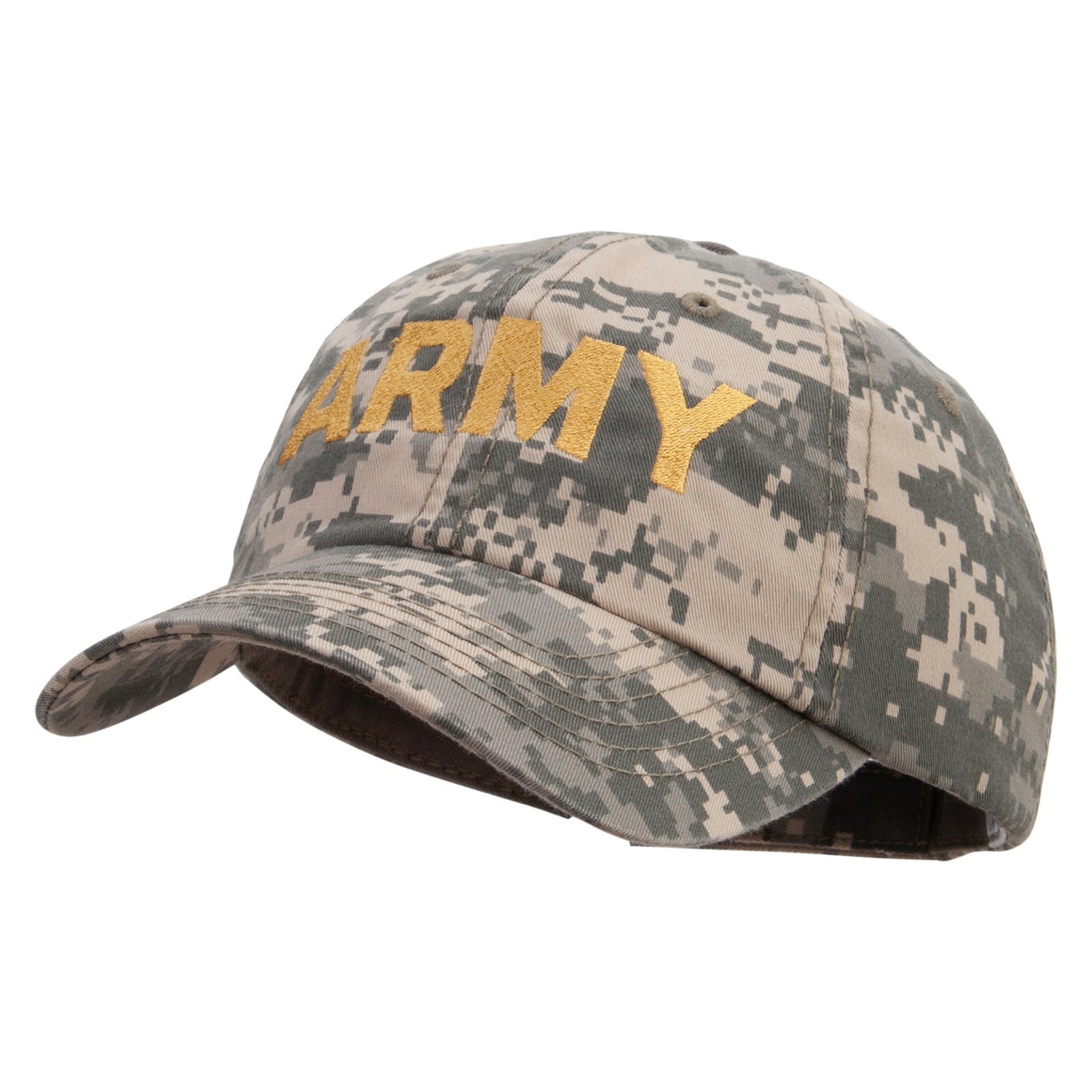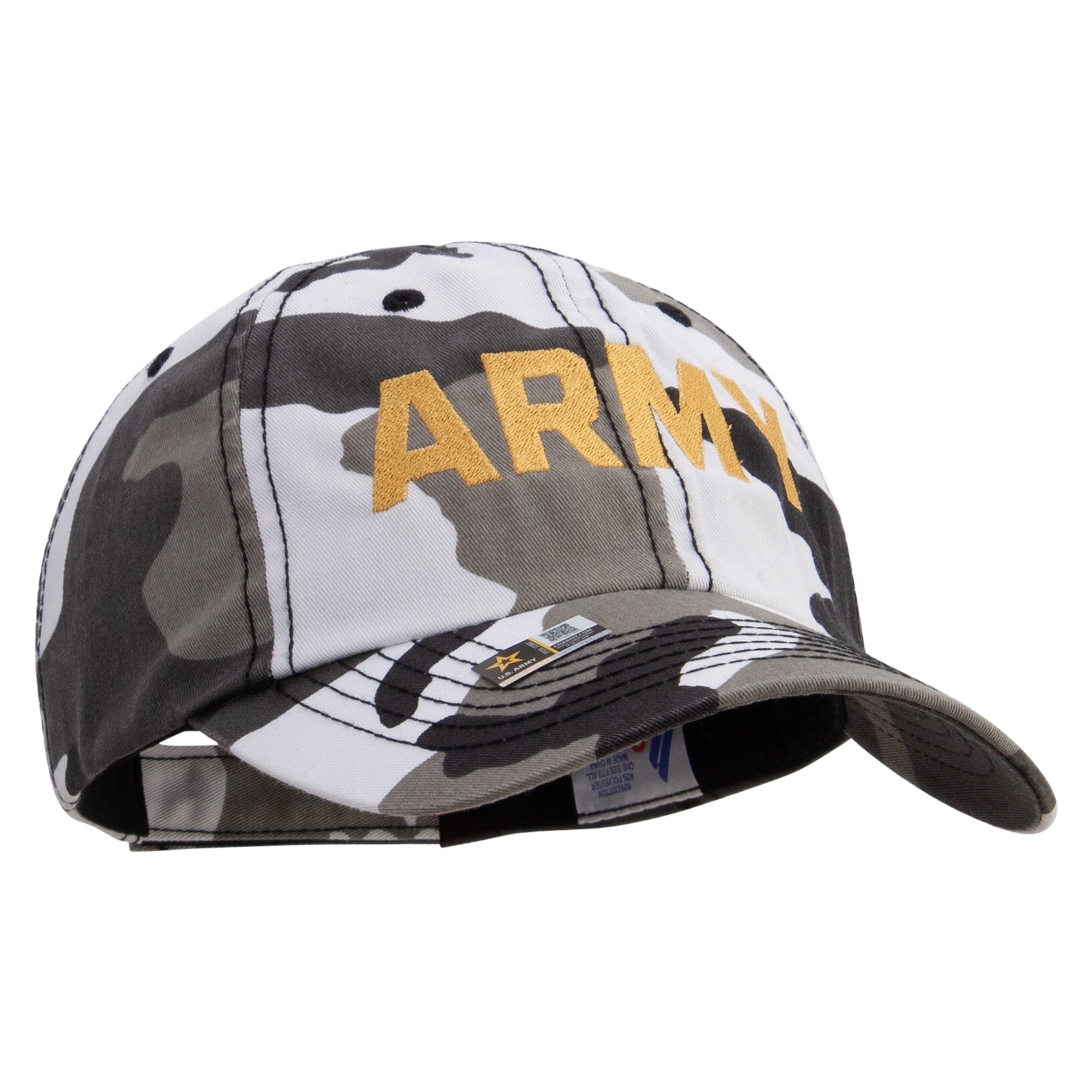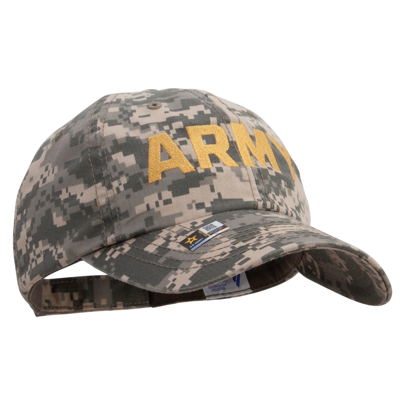 Title, Licensed Wording of U.S. Army Embroidered Enzyme Washed Camo Cap