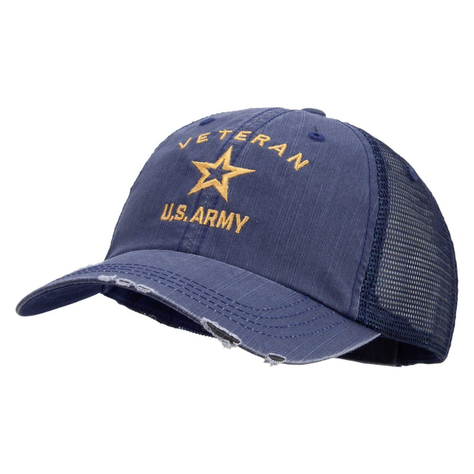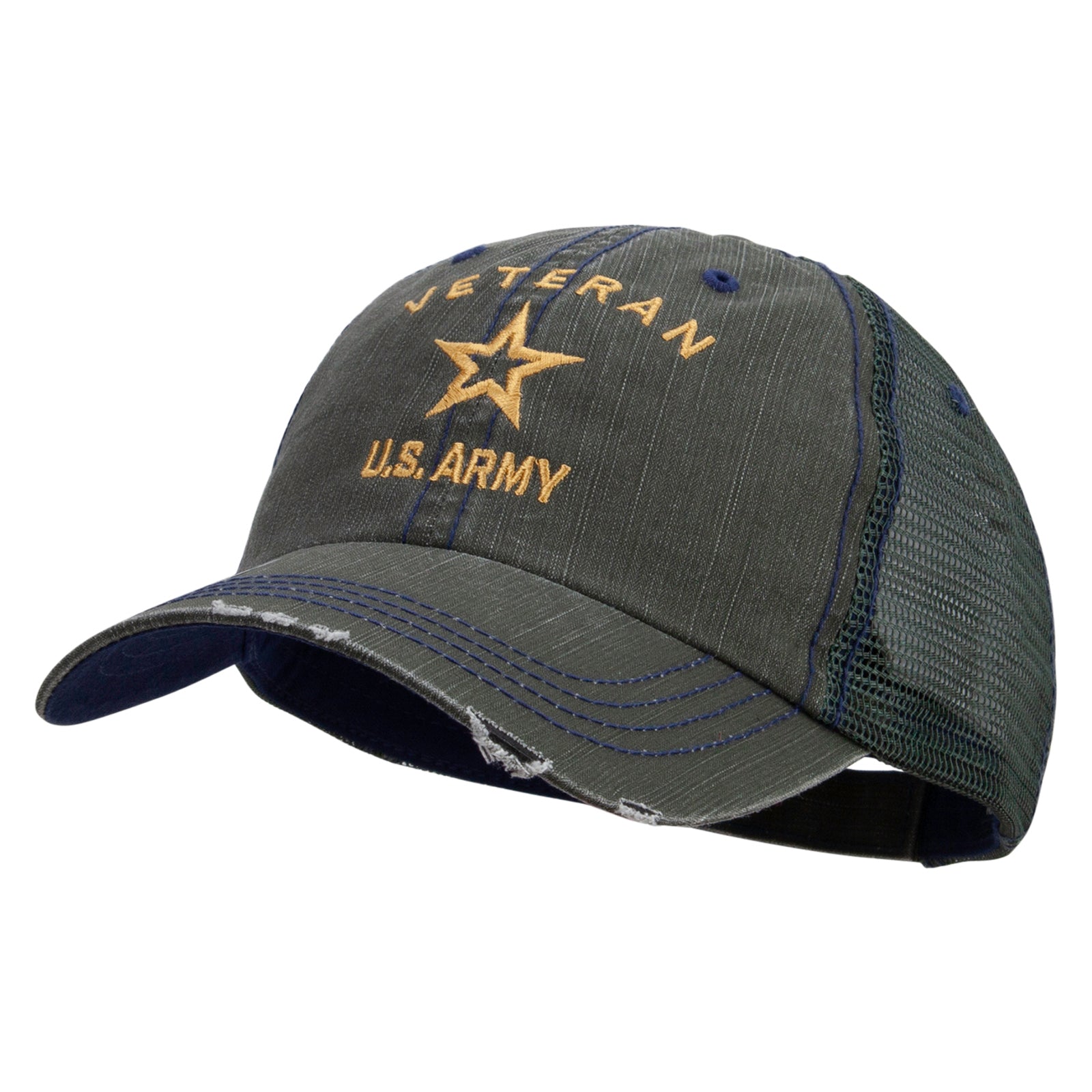 Title, Licensed U.S. Army Veteran Military Embroidered Low Profile Special Cotton Mesh Cap