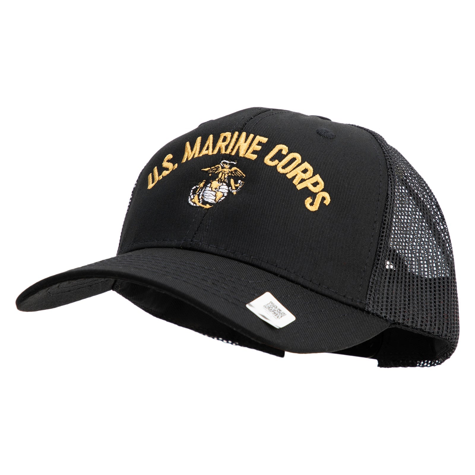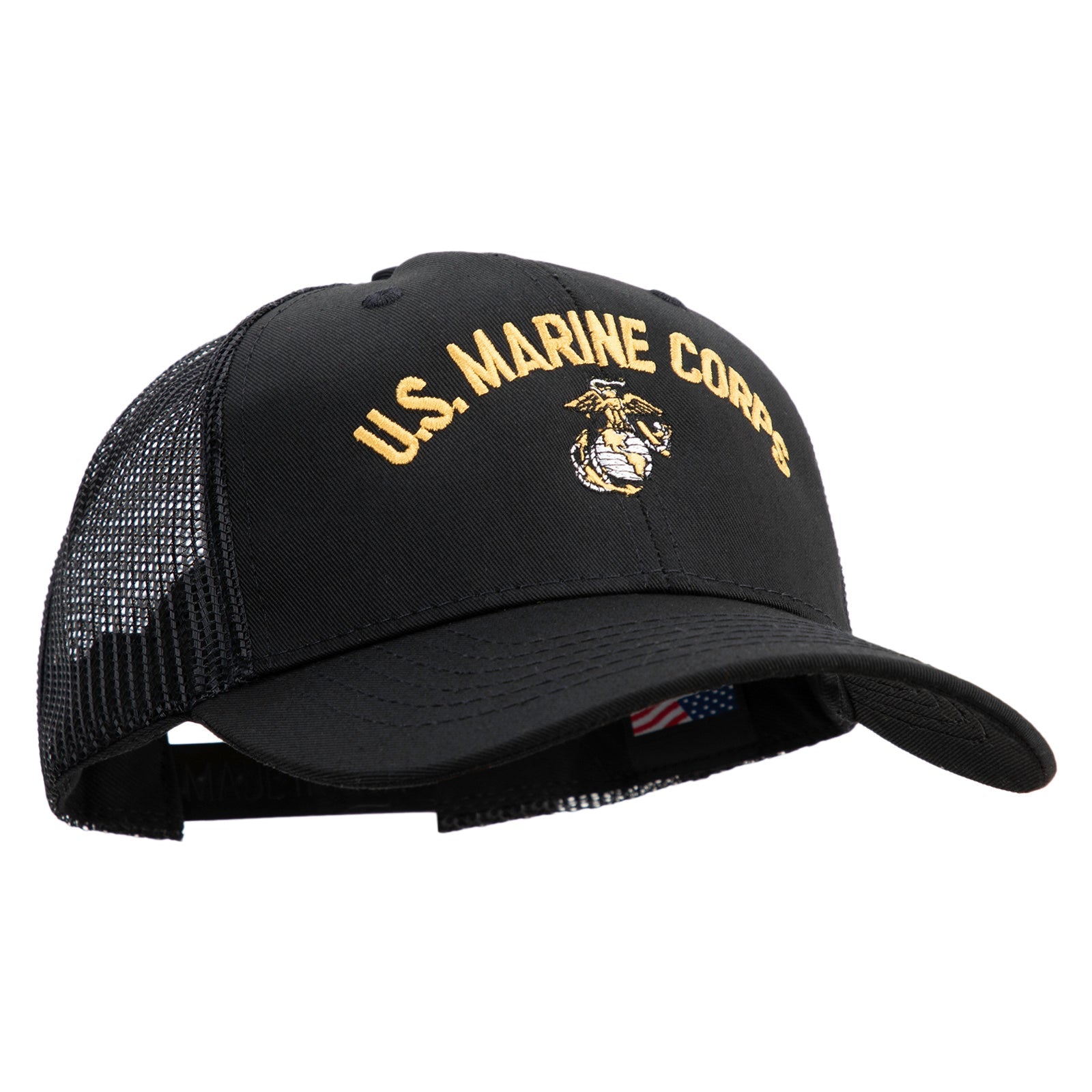 Title, US Marine Corps Emblem Design Embroidered 6 Panel Structured Cotton Twill Mesh Cap Made in USA