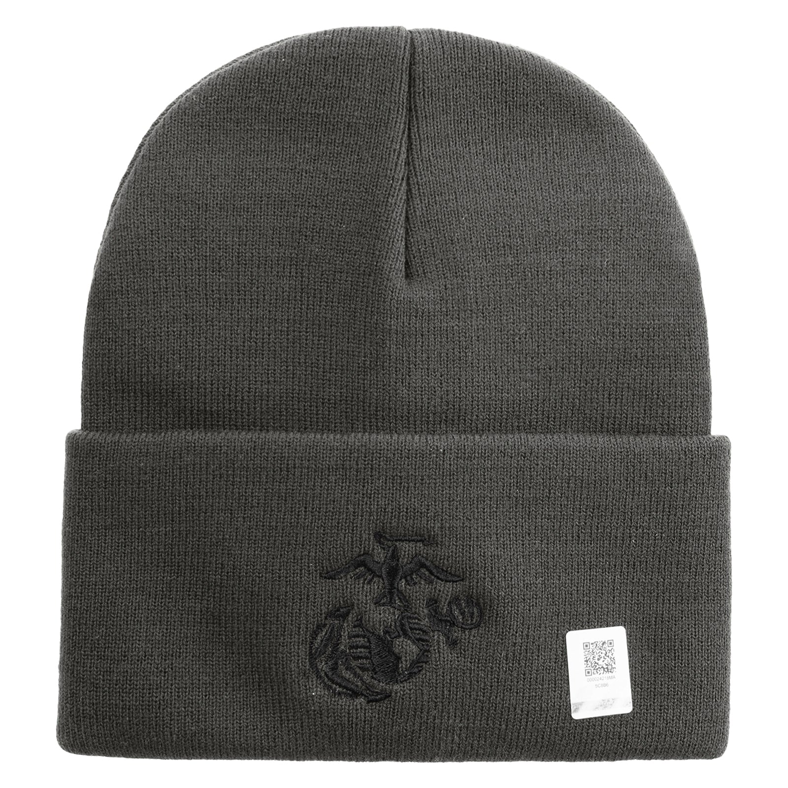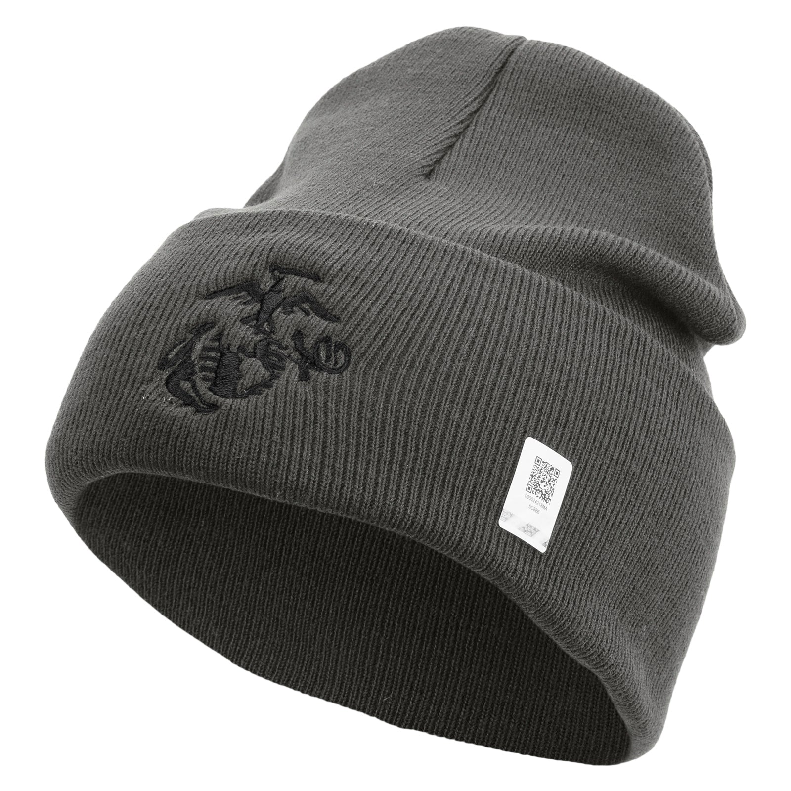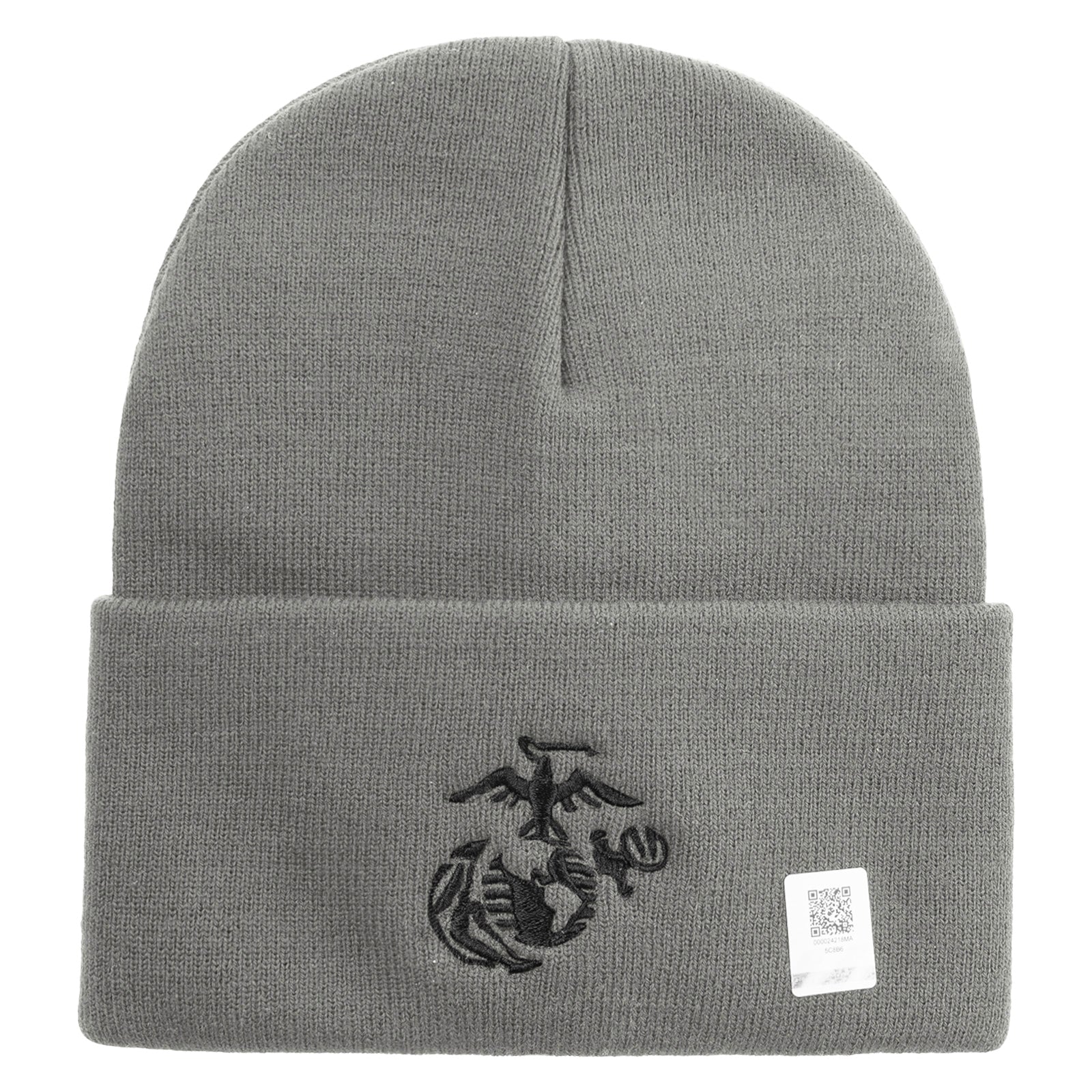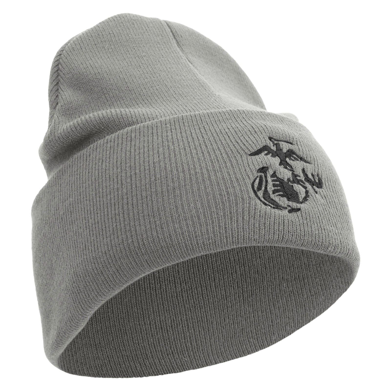Title, US Marine Corps Seal Logo Embroidered 12 Inch Solid Knit Cuff Long Beanie Made in USA