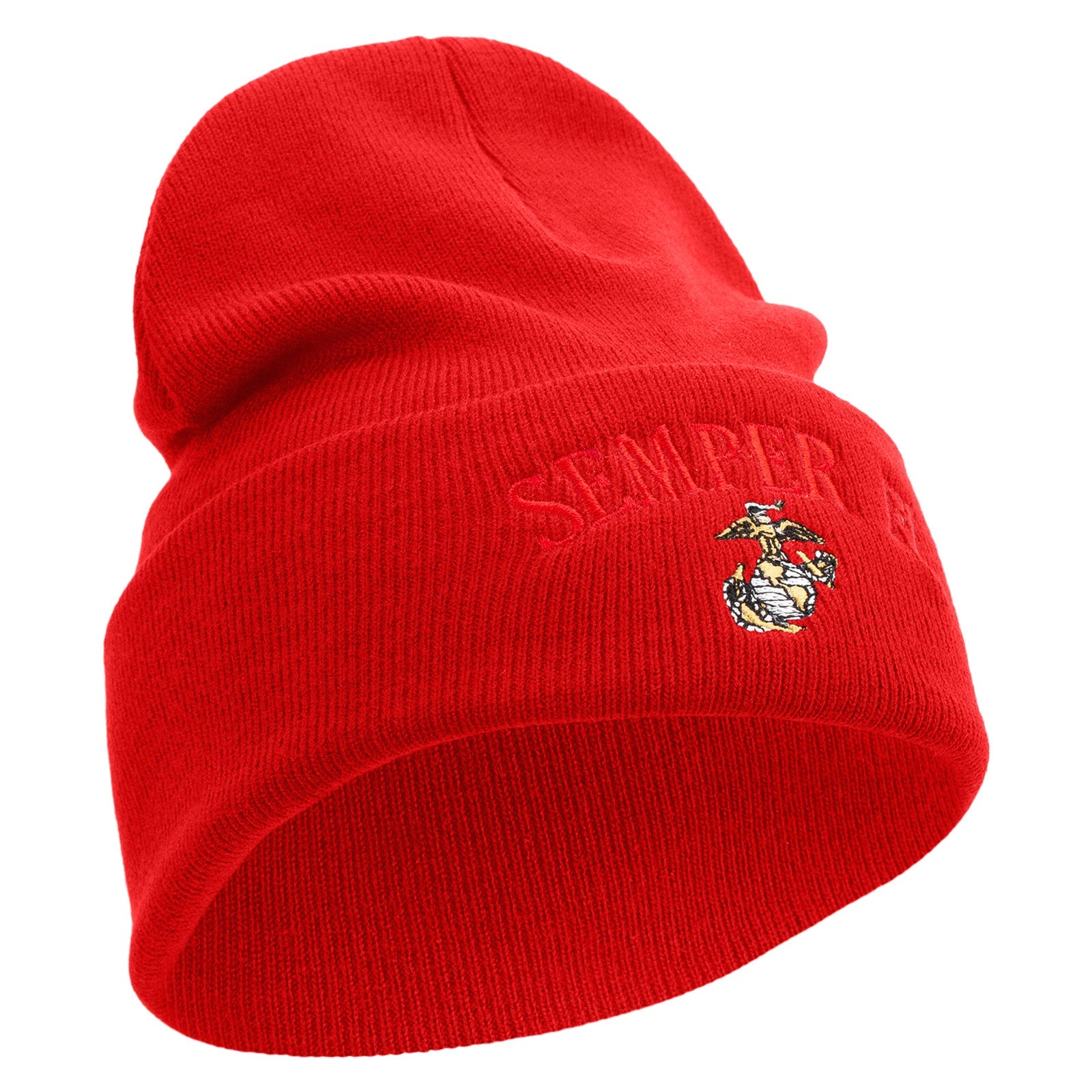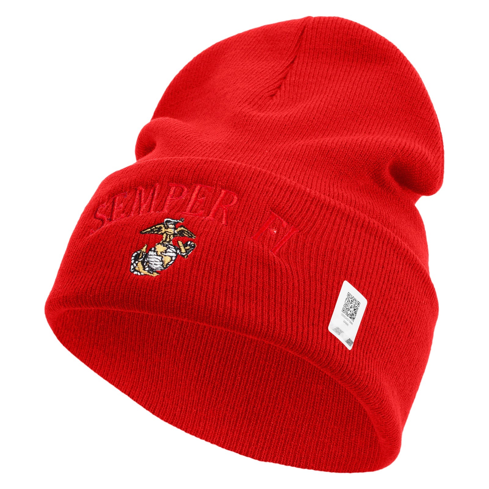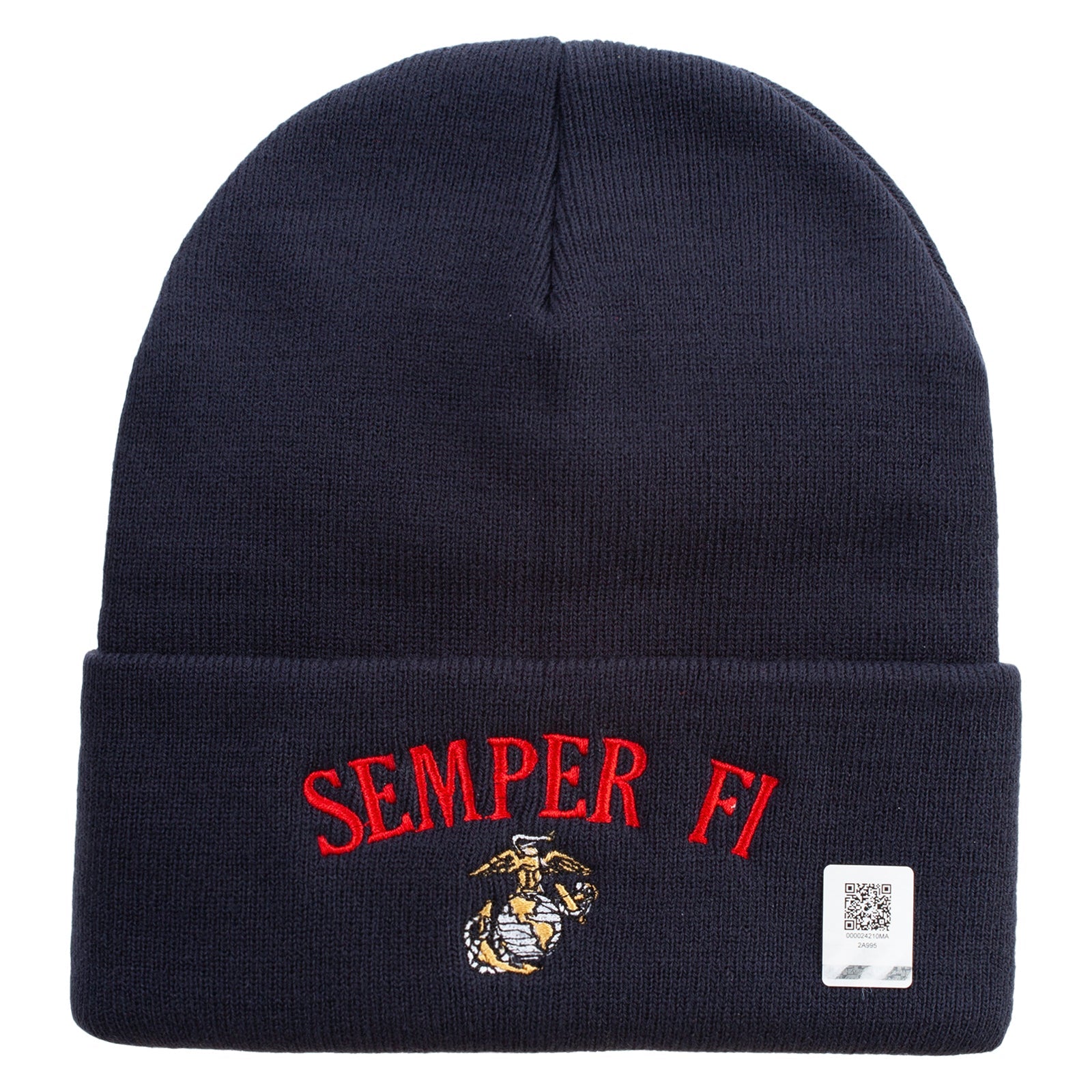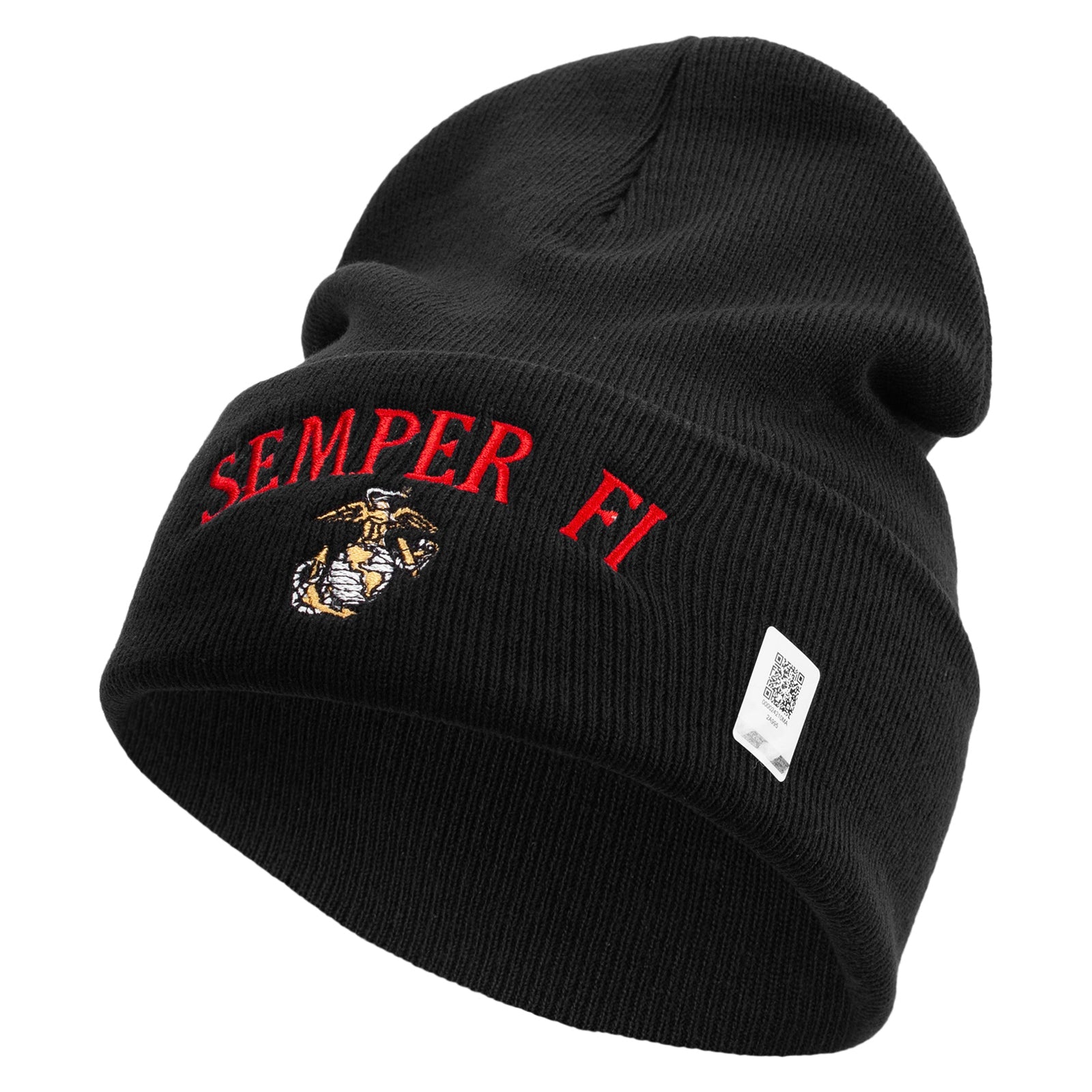 Title, US Marine Semper Fidelis Logo Embroidered Solid Knit Cuff Long Beanie Made in USA