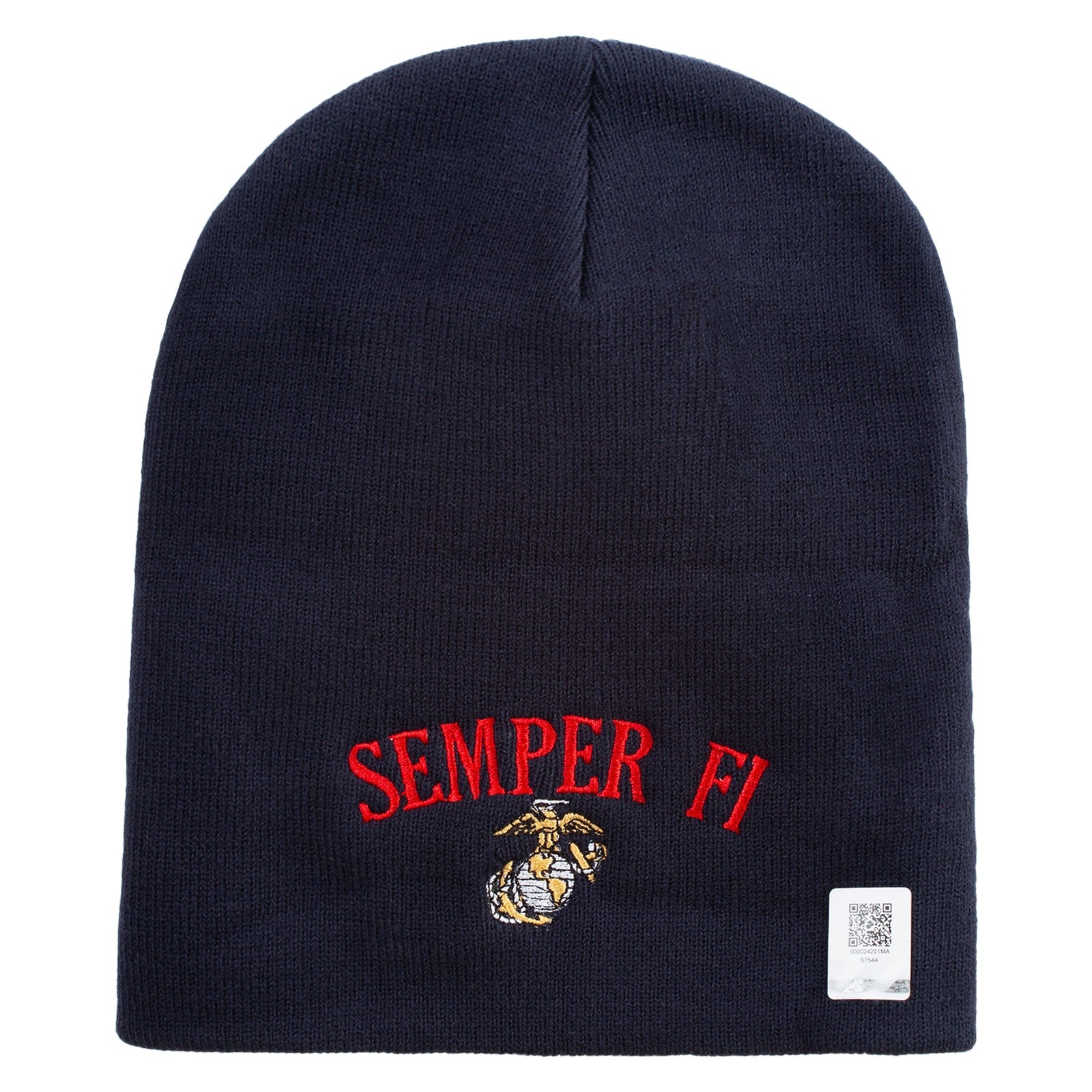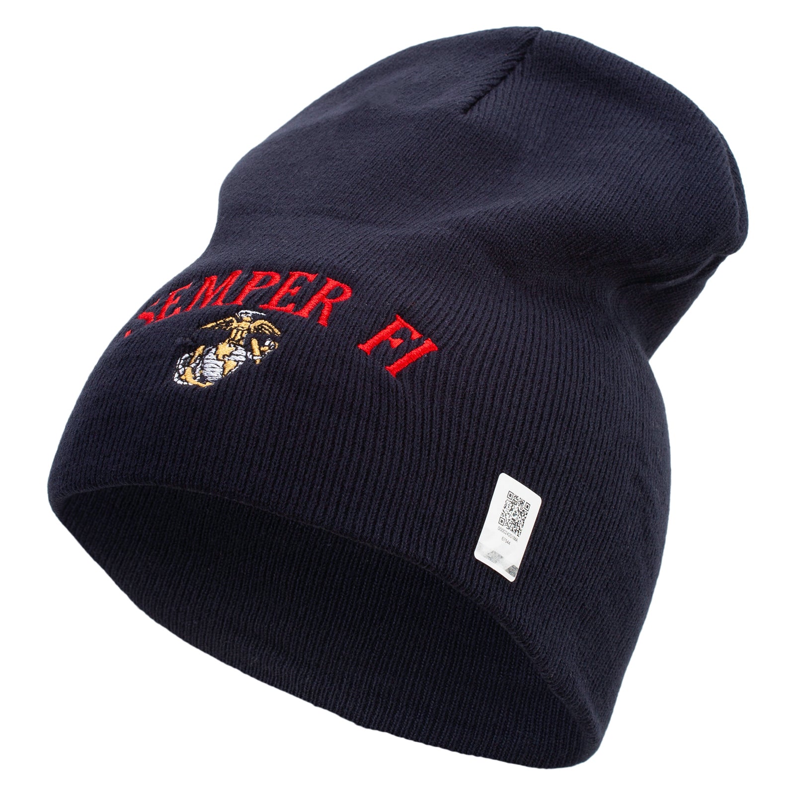 Title, US Marine Semper Fidelis Symbol Embroidered 8 Inch Short Beanie Made in USA