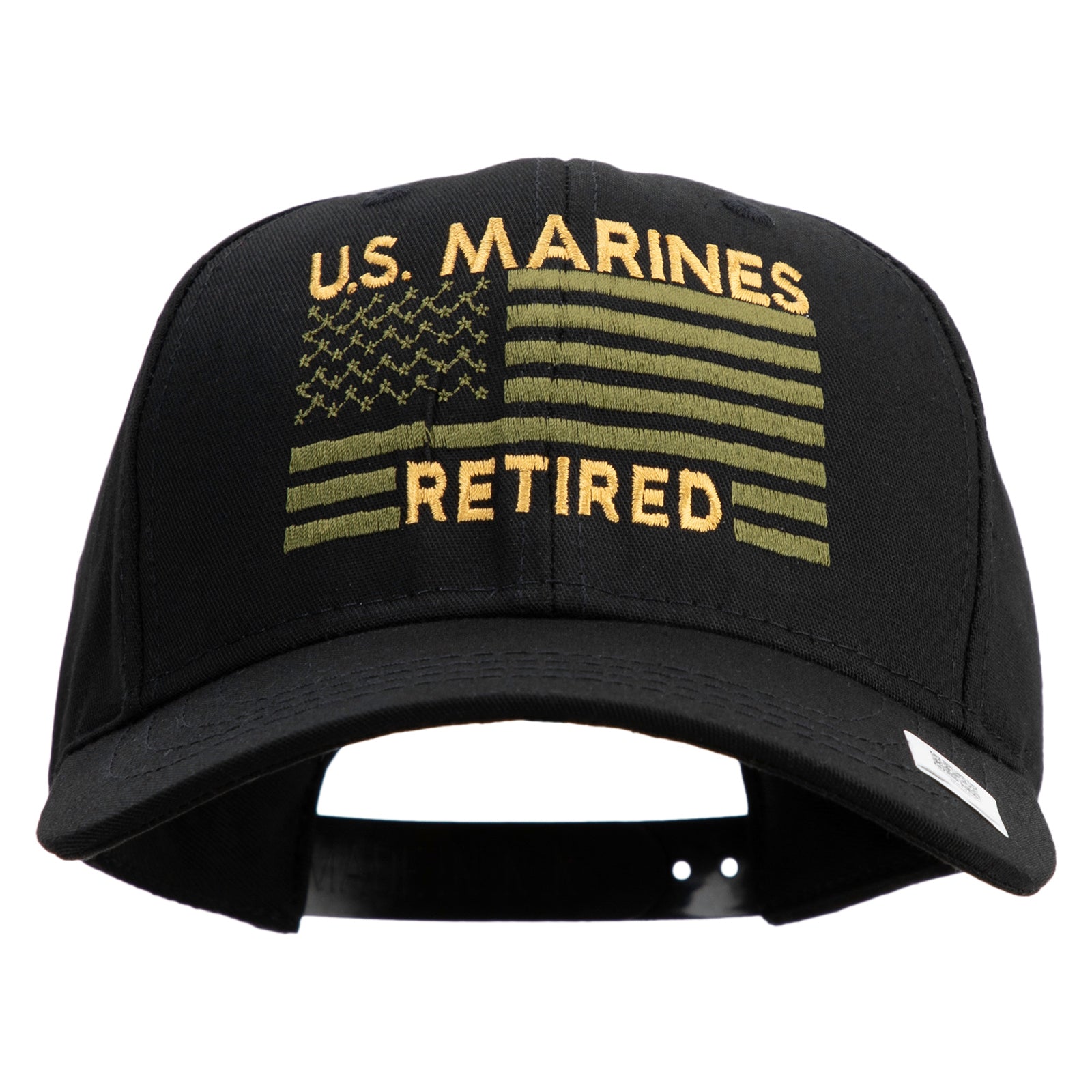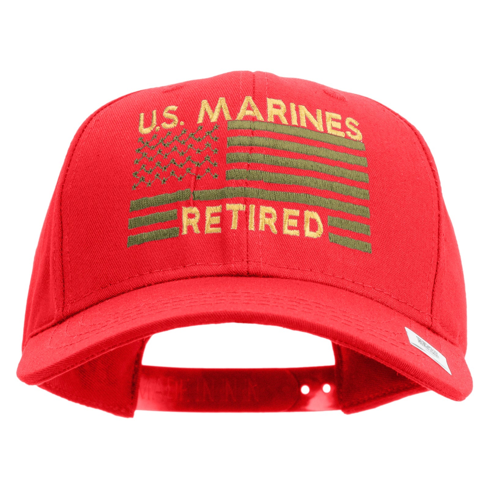 US Marines Retired Flag Design Embroidered 6 Panel Structured Cotton Twill Cap Made in USA