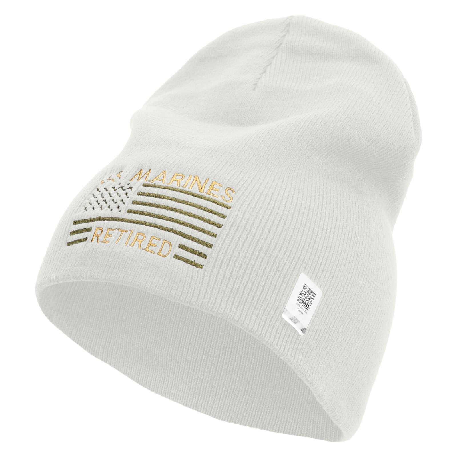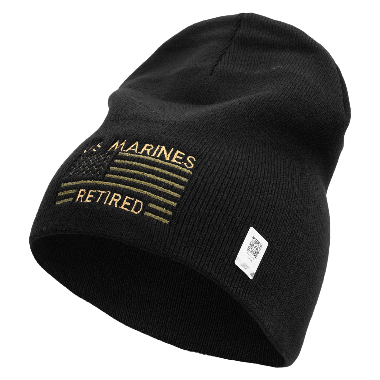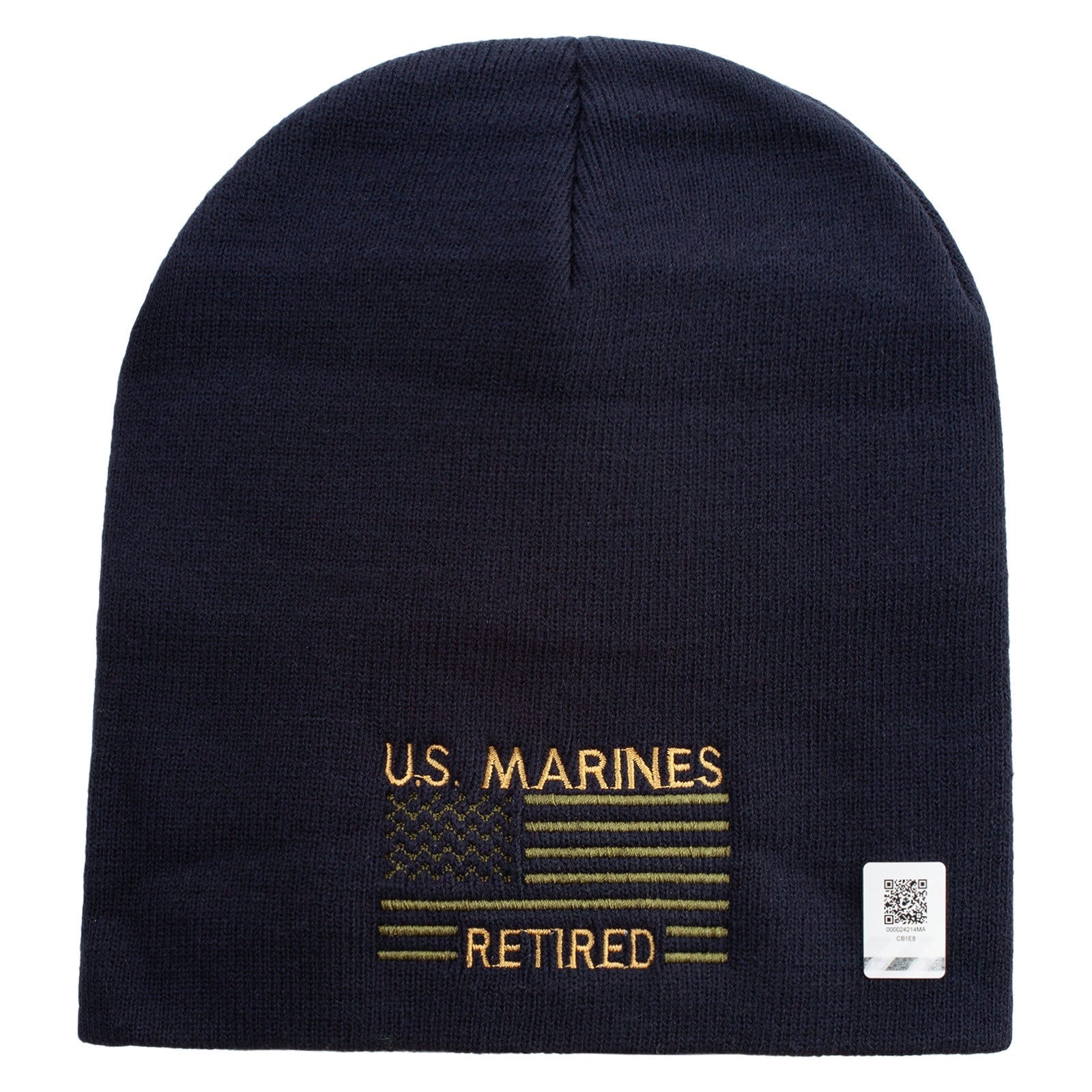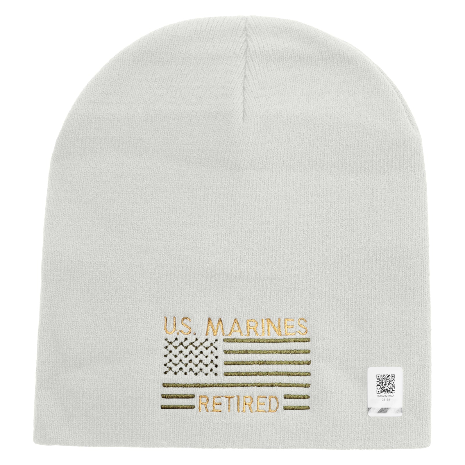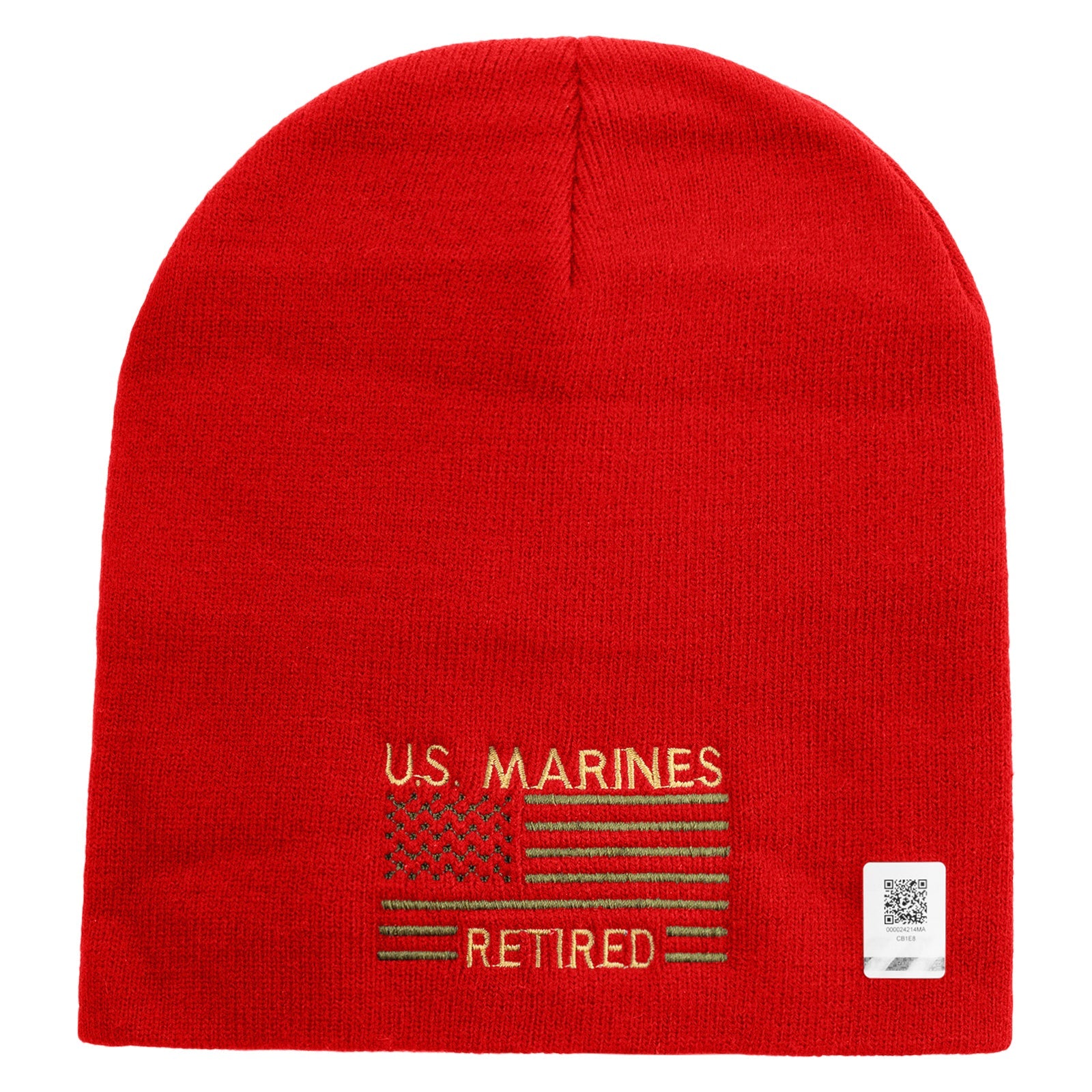 Title, US Marines Retired Flag Symbol Embroidered 8 Inch Short Beanie Made in USA