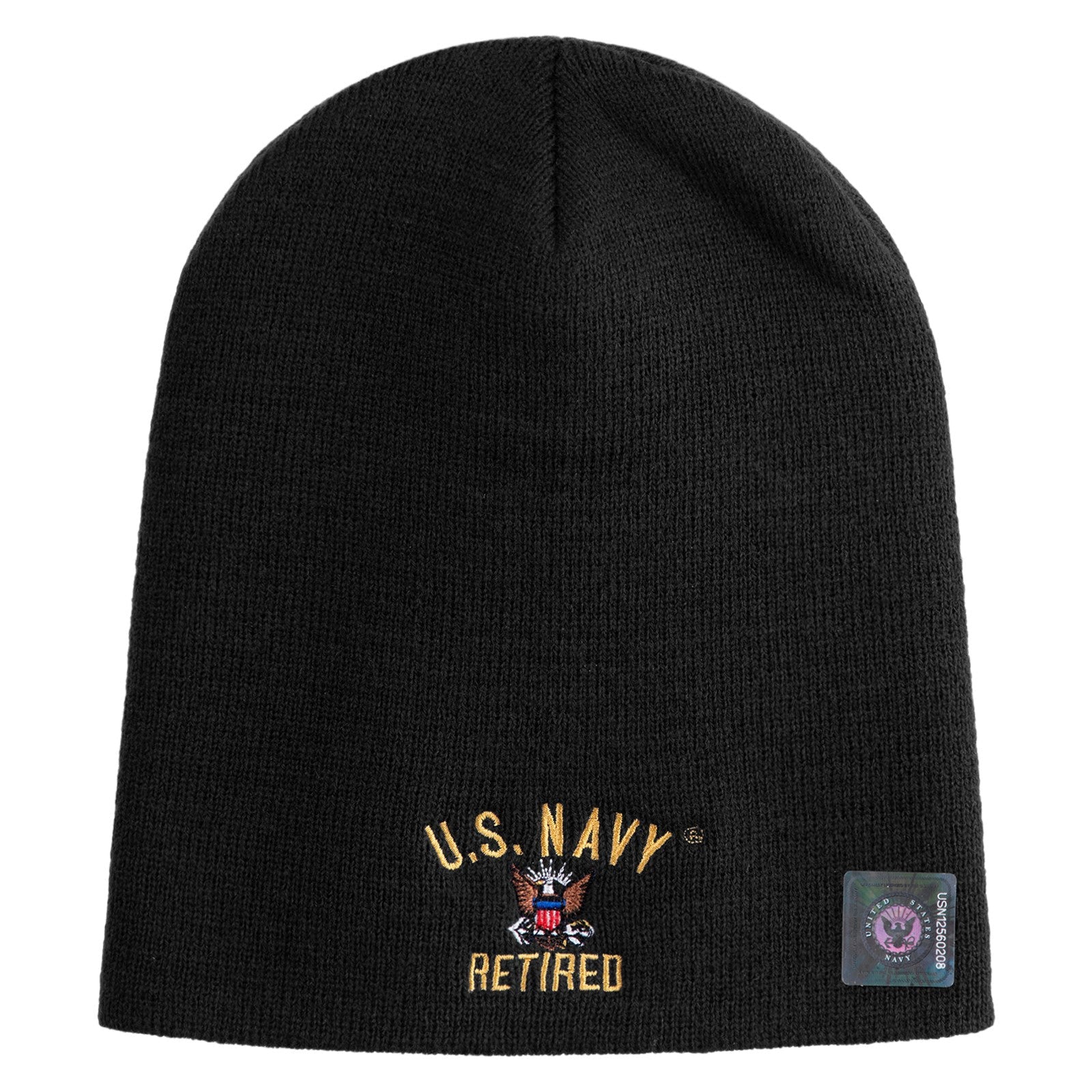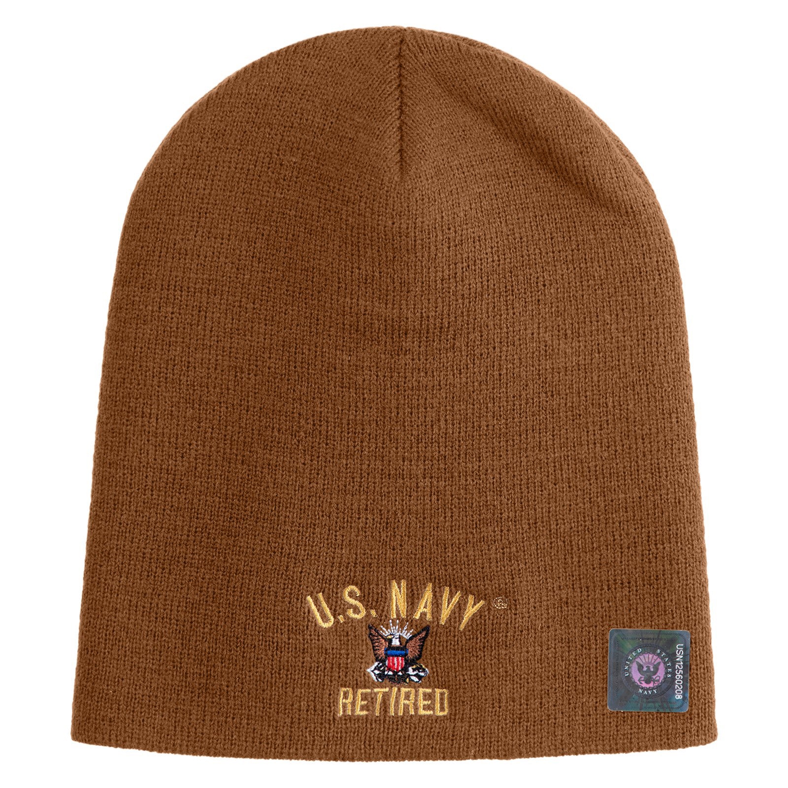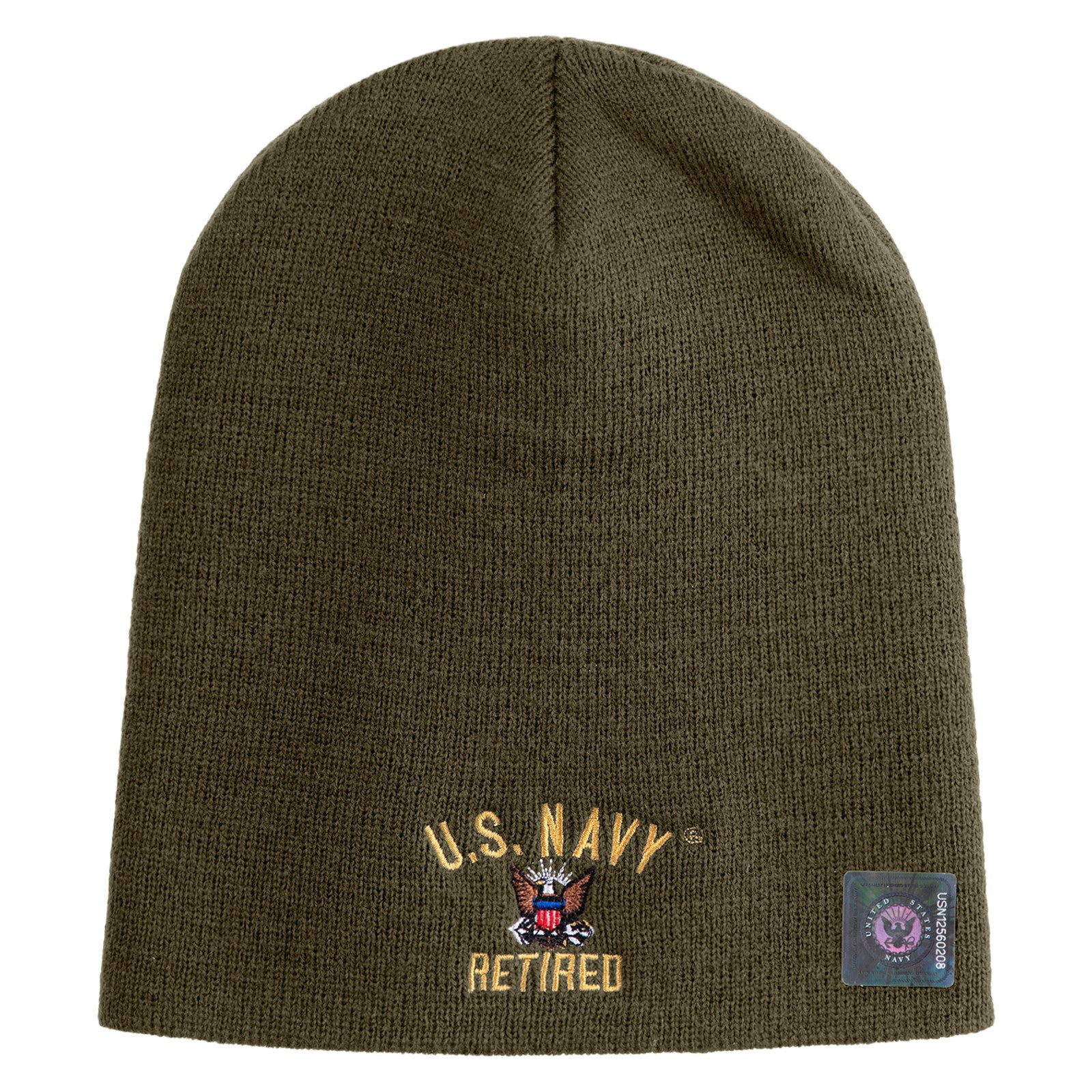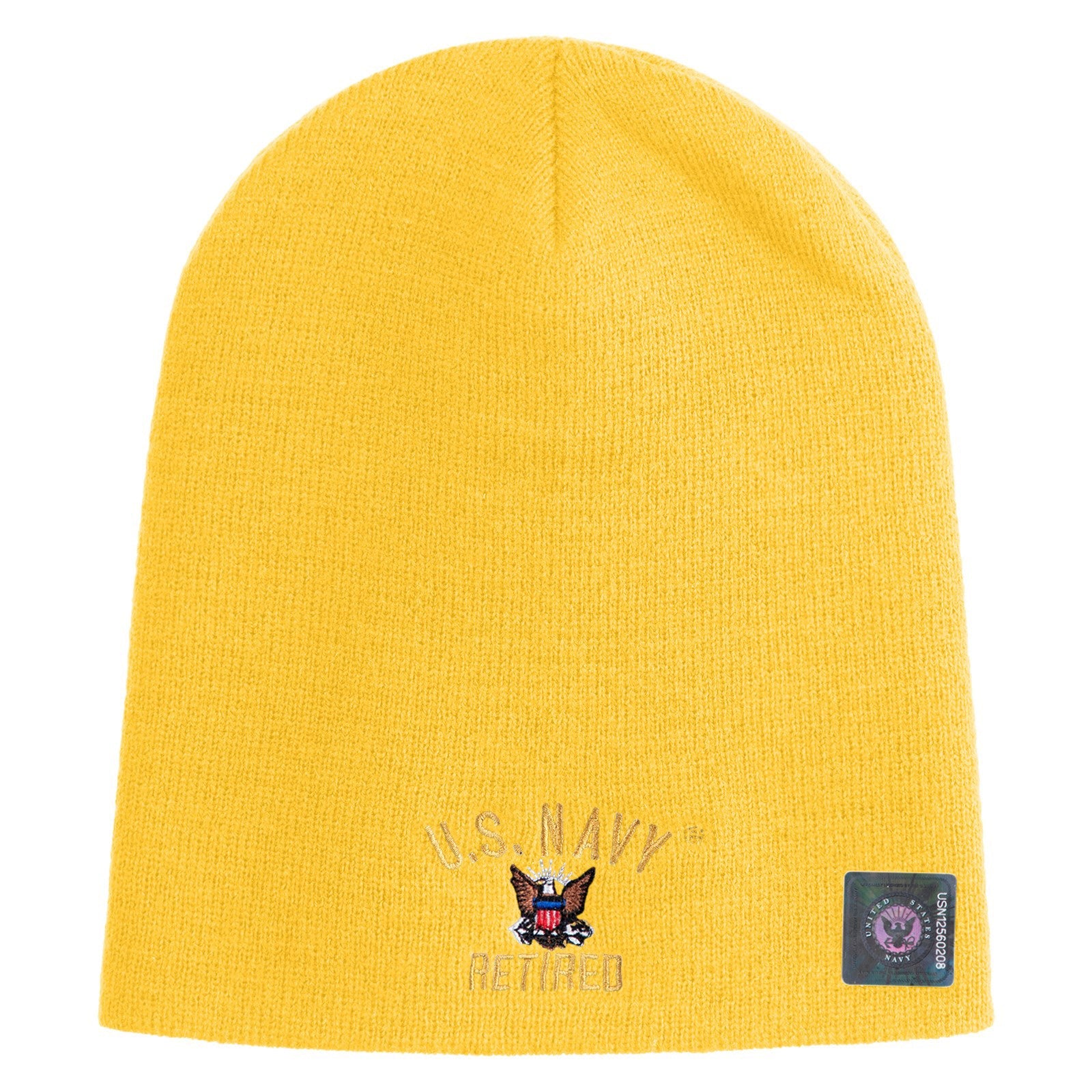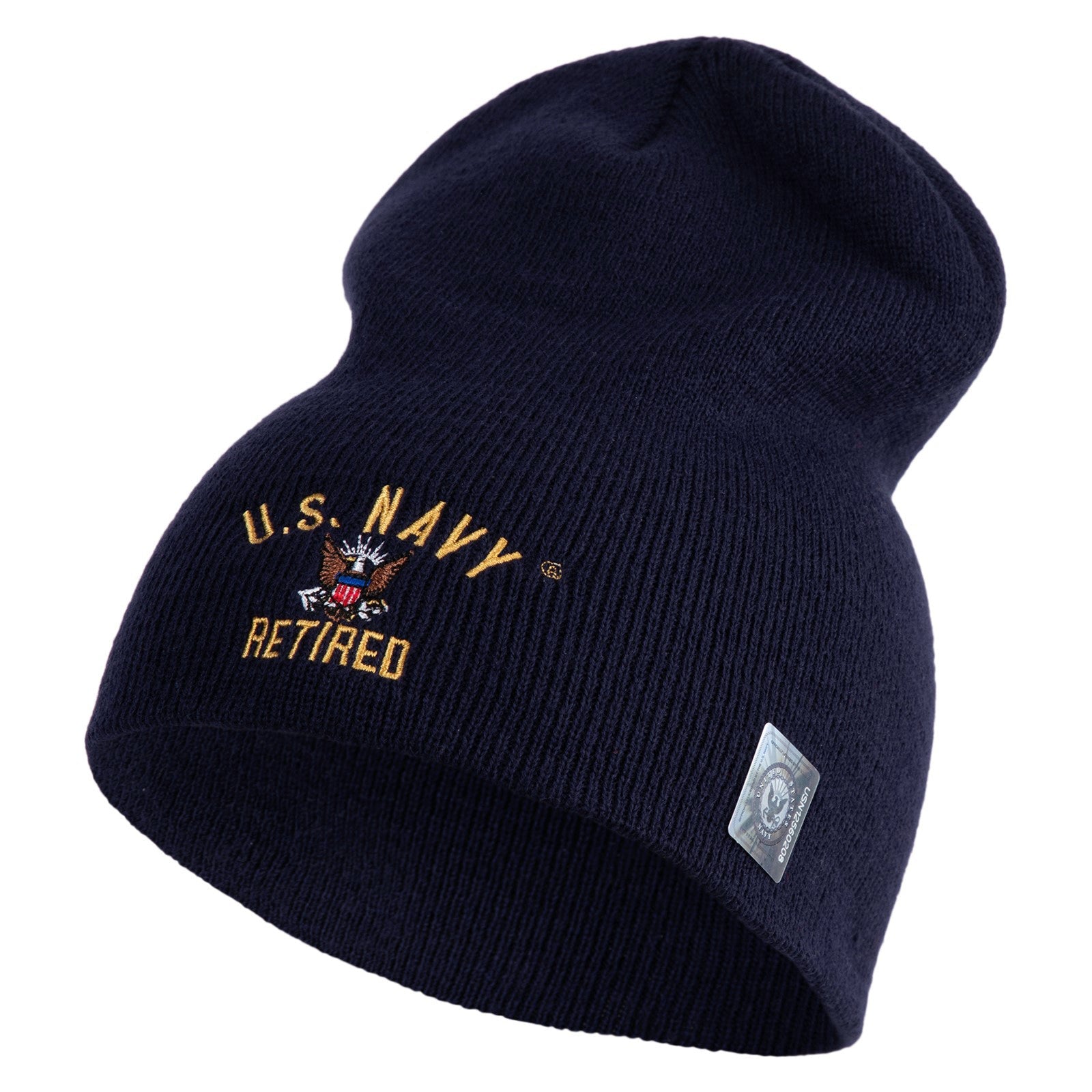 Title, US Navy Retired Military Embroidered Heavyweight Classic Knit YP Short Beanie