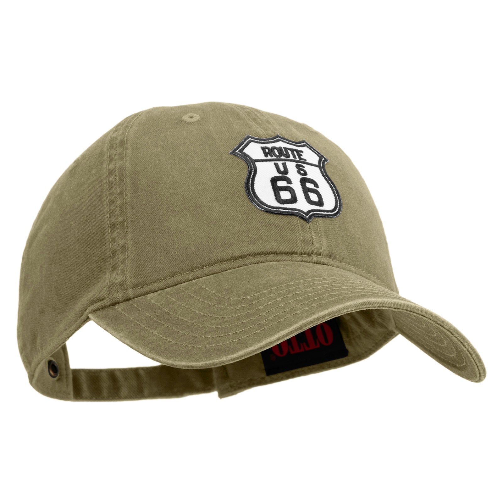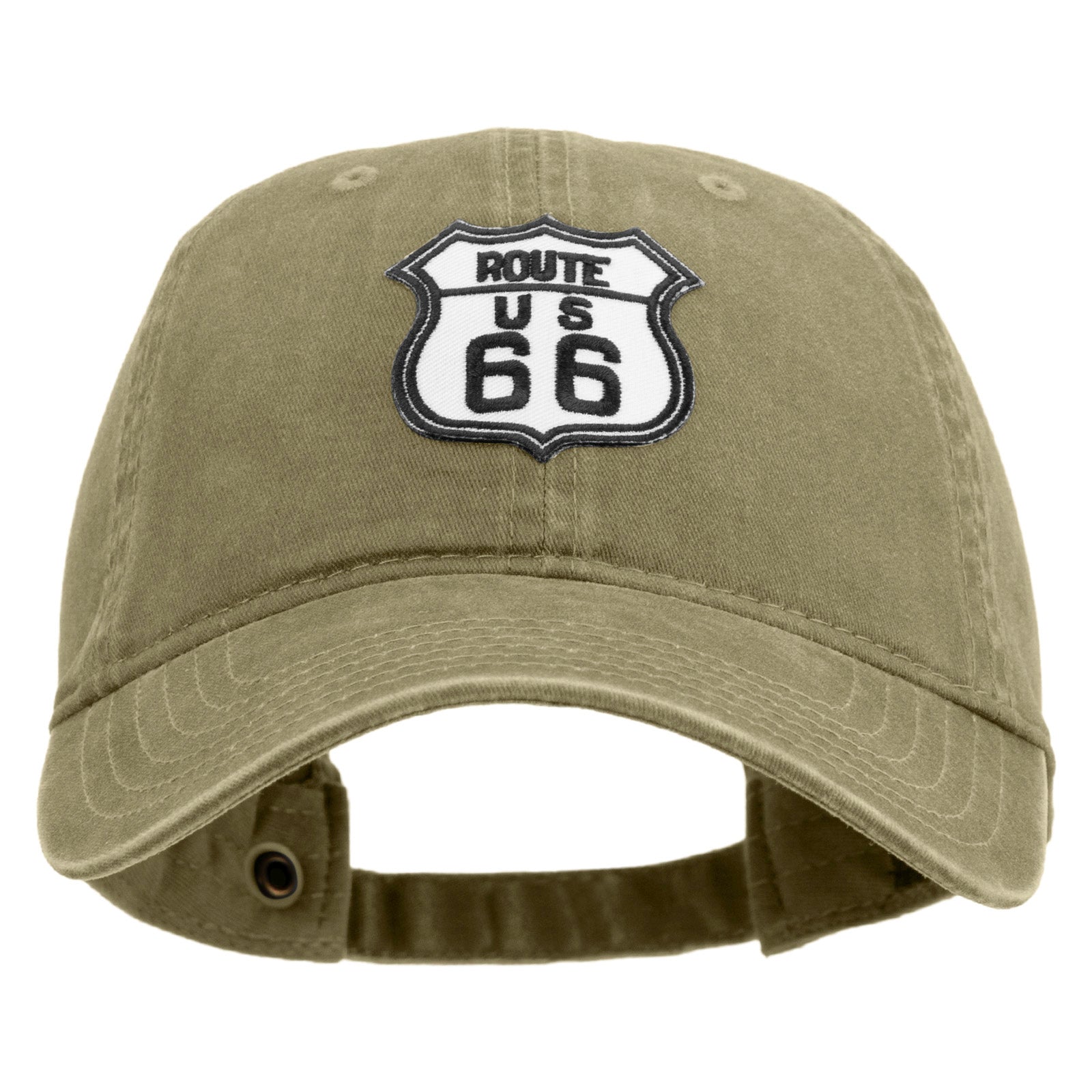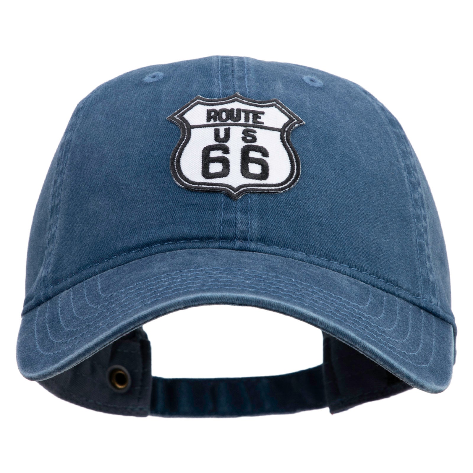 US Route 66 Patched Washed Solid Pigment Dyed Cotton Twin Brass Buckle Cap