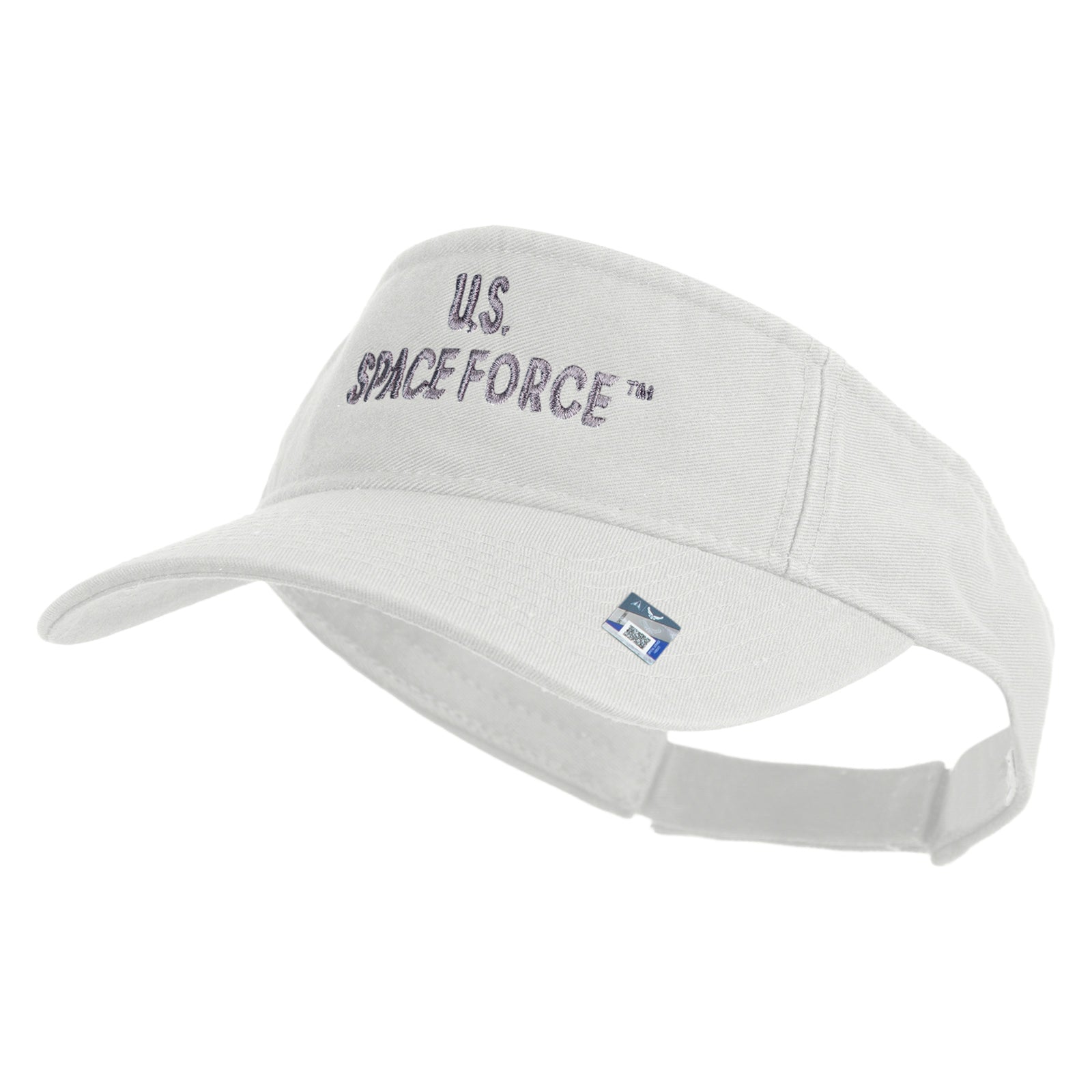 Title, US Space Force Grey Letter Design Embroidered Pro Style Cotton Twill Washed Visor