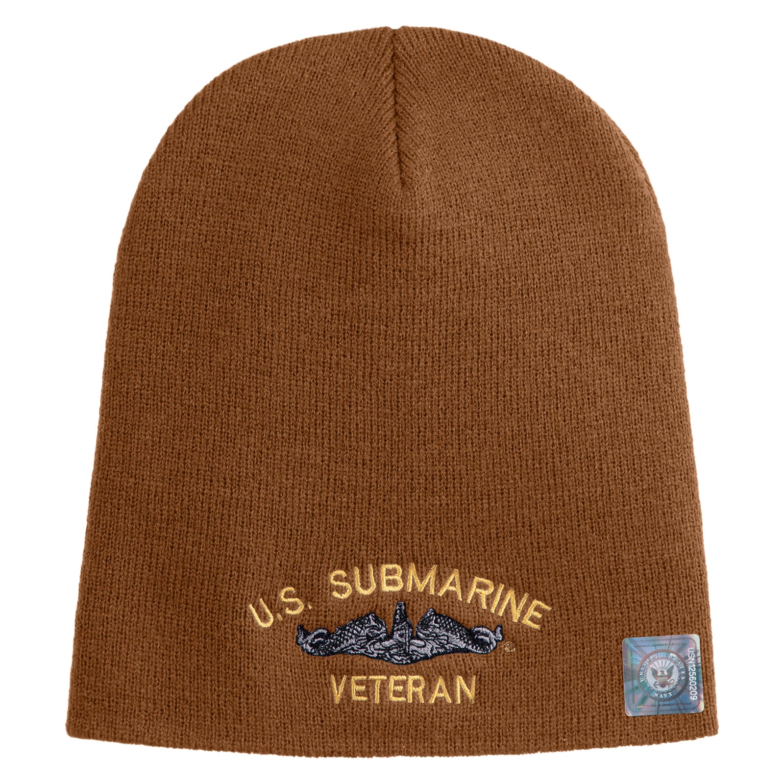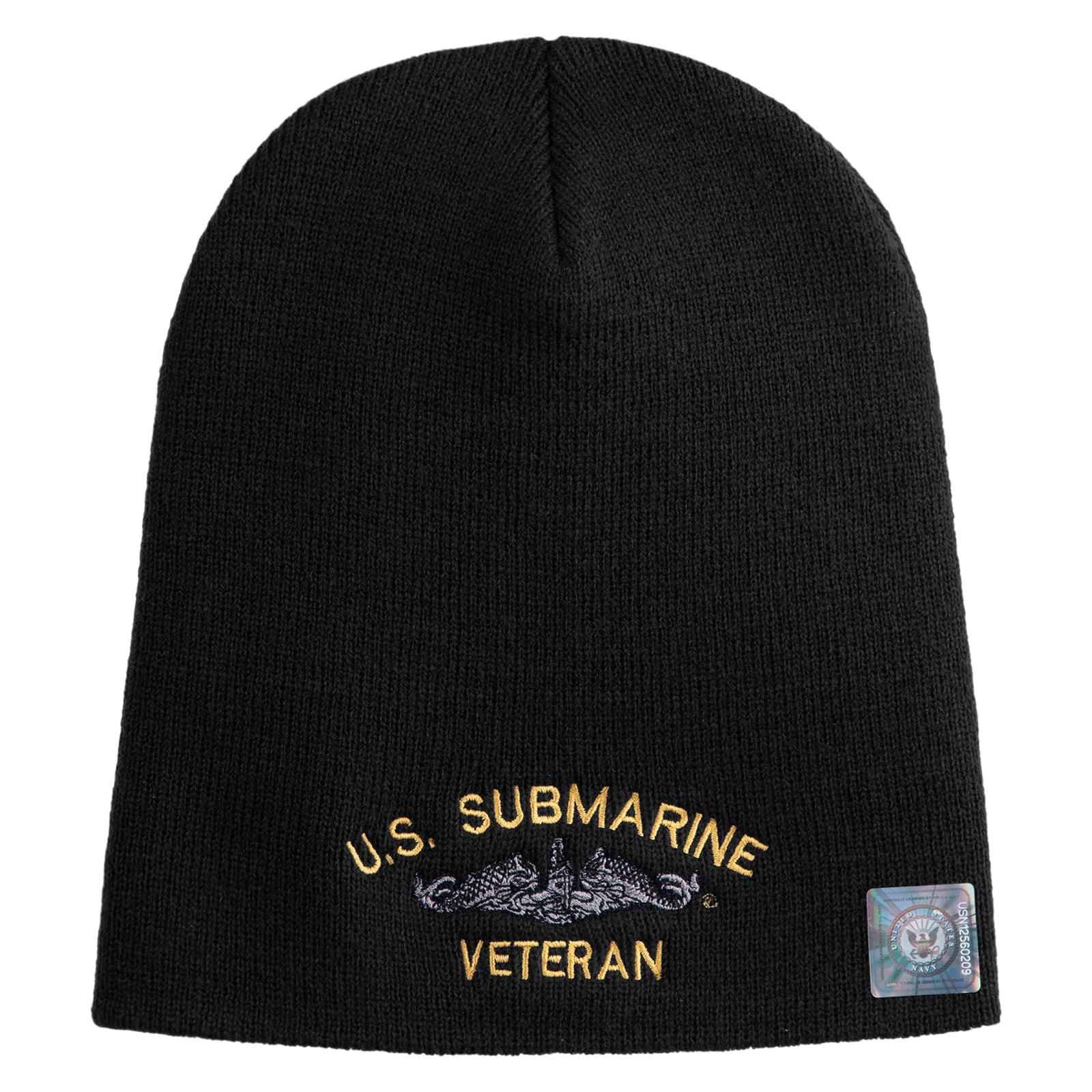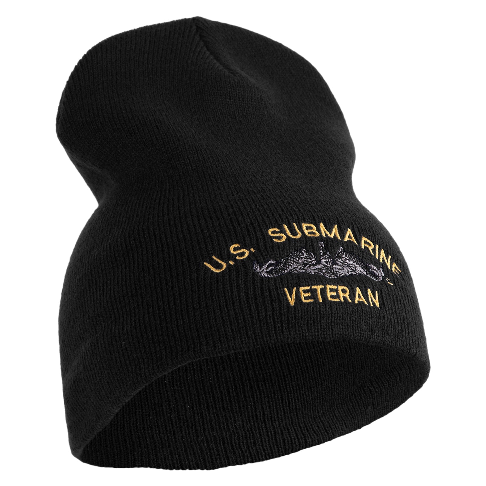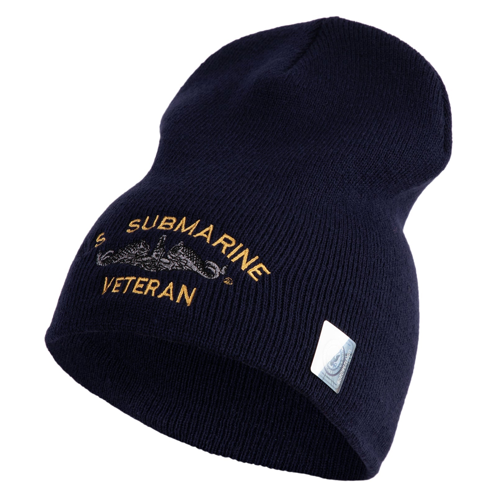 Title, US Submarine Veteran Symbol Embroidered Heavyweight Classic Knit YP Short Beanie