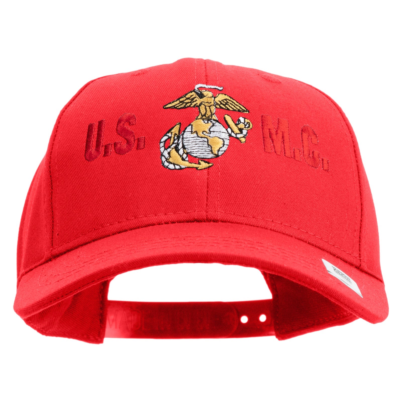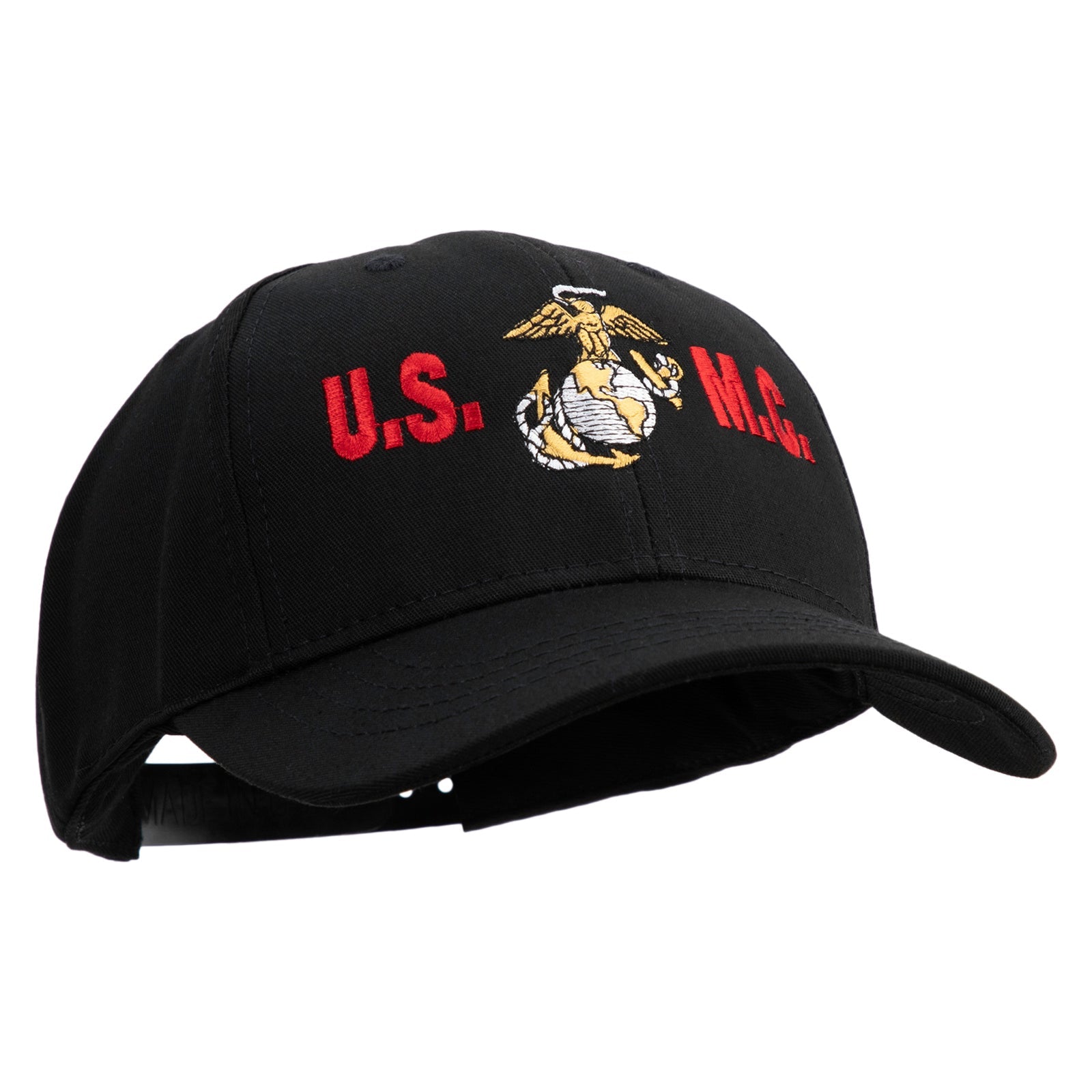 Title, USMC Design Embroidered 6 Panel Structured Cotton Twill Cap Made in USA