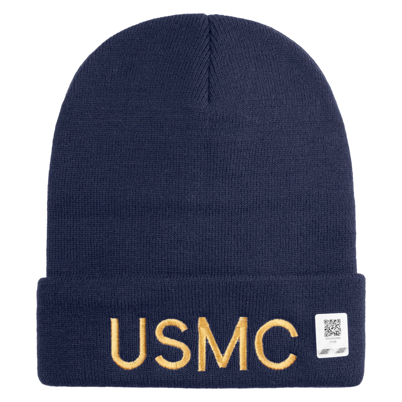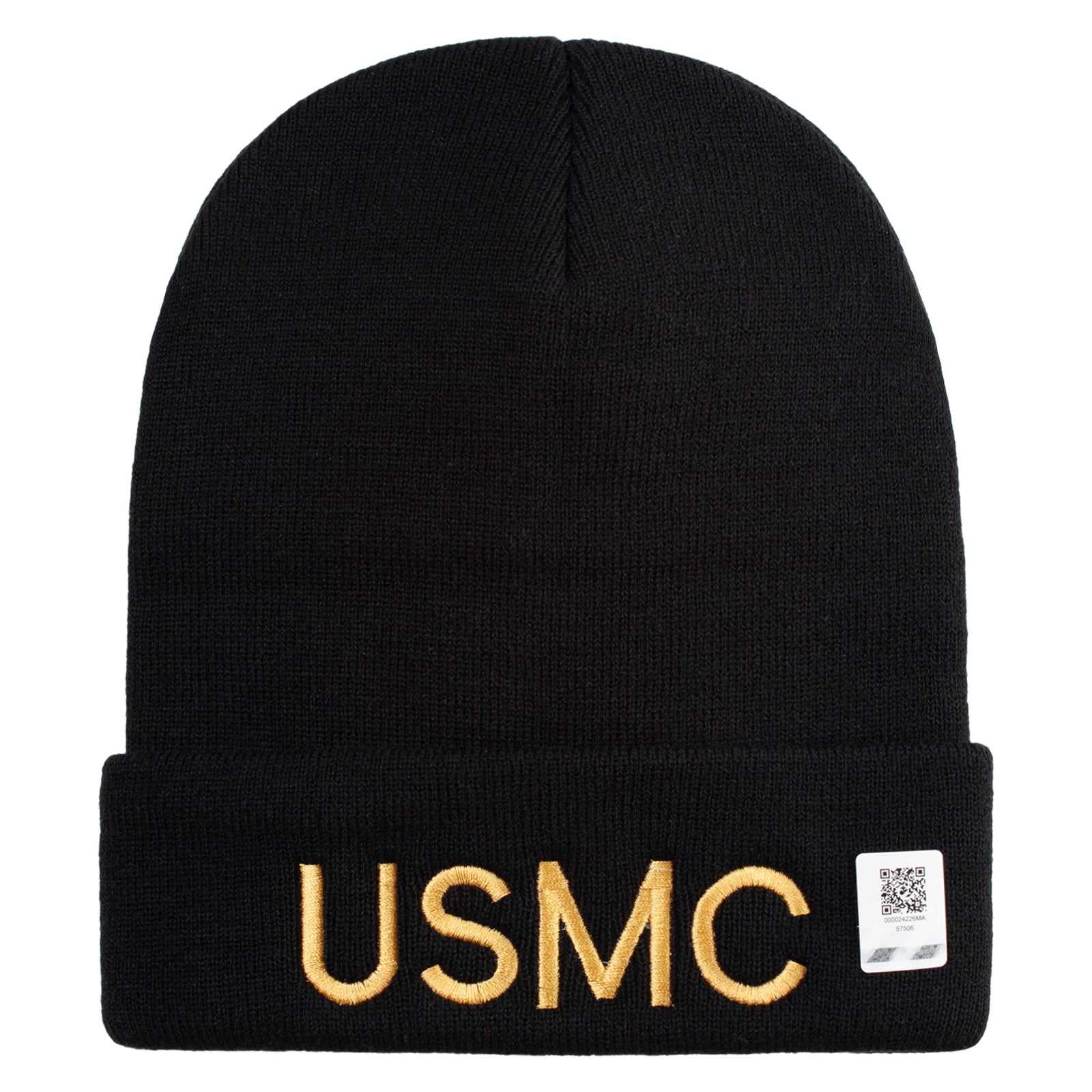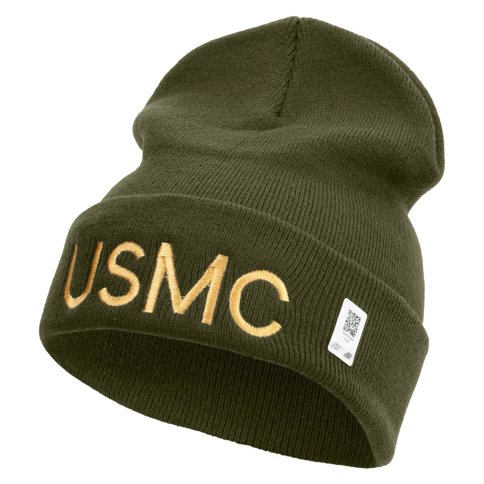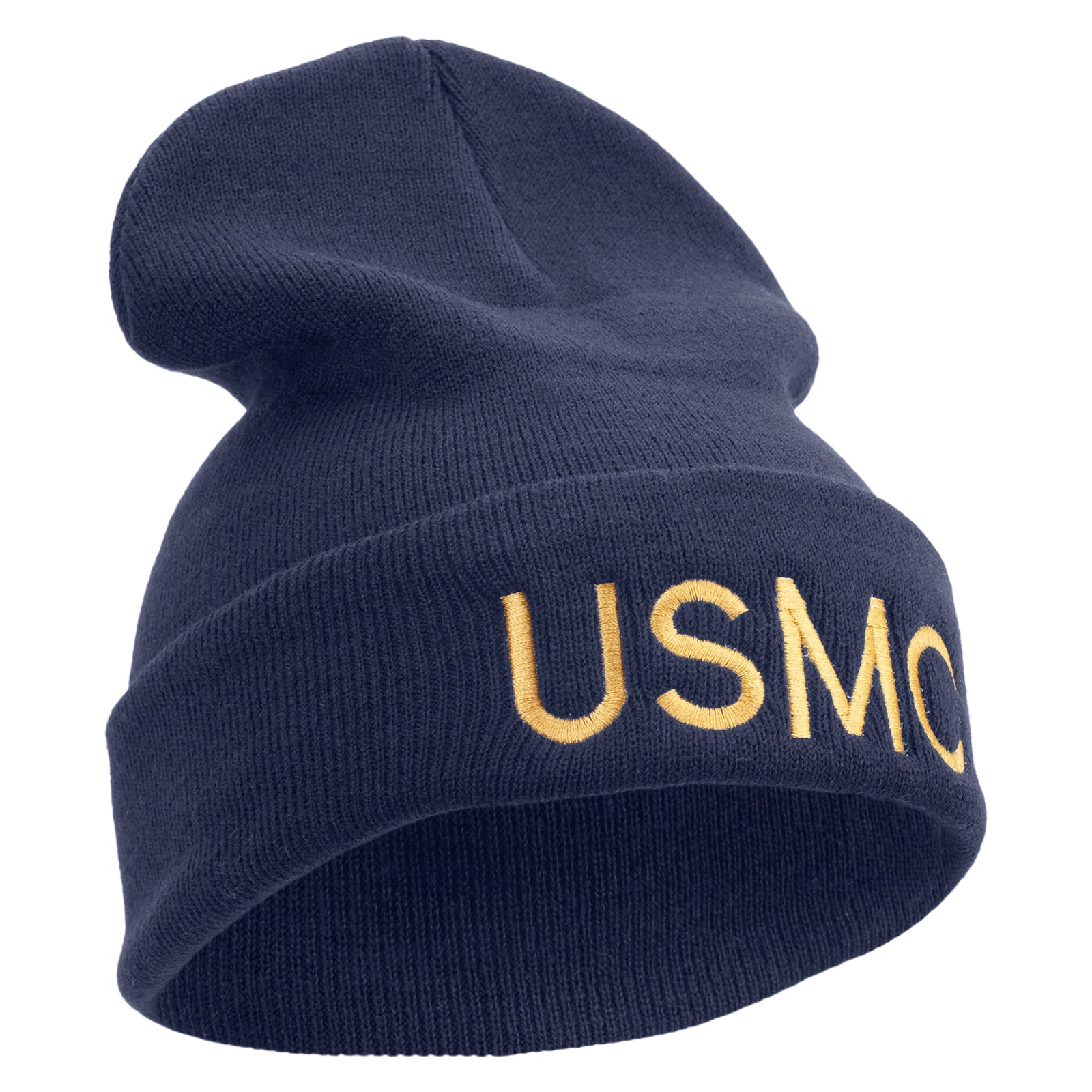 USMC Embroidered 12 Inch Solid Knit Cuff Long Beanie Made in USA