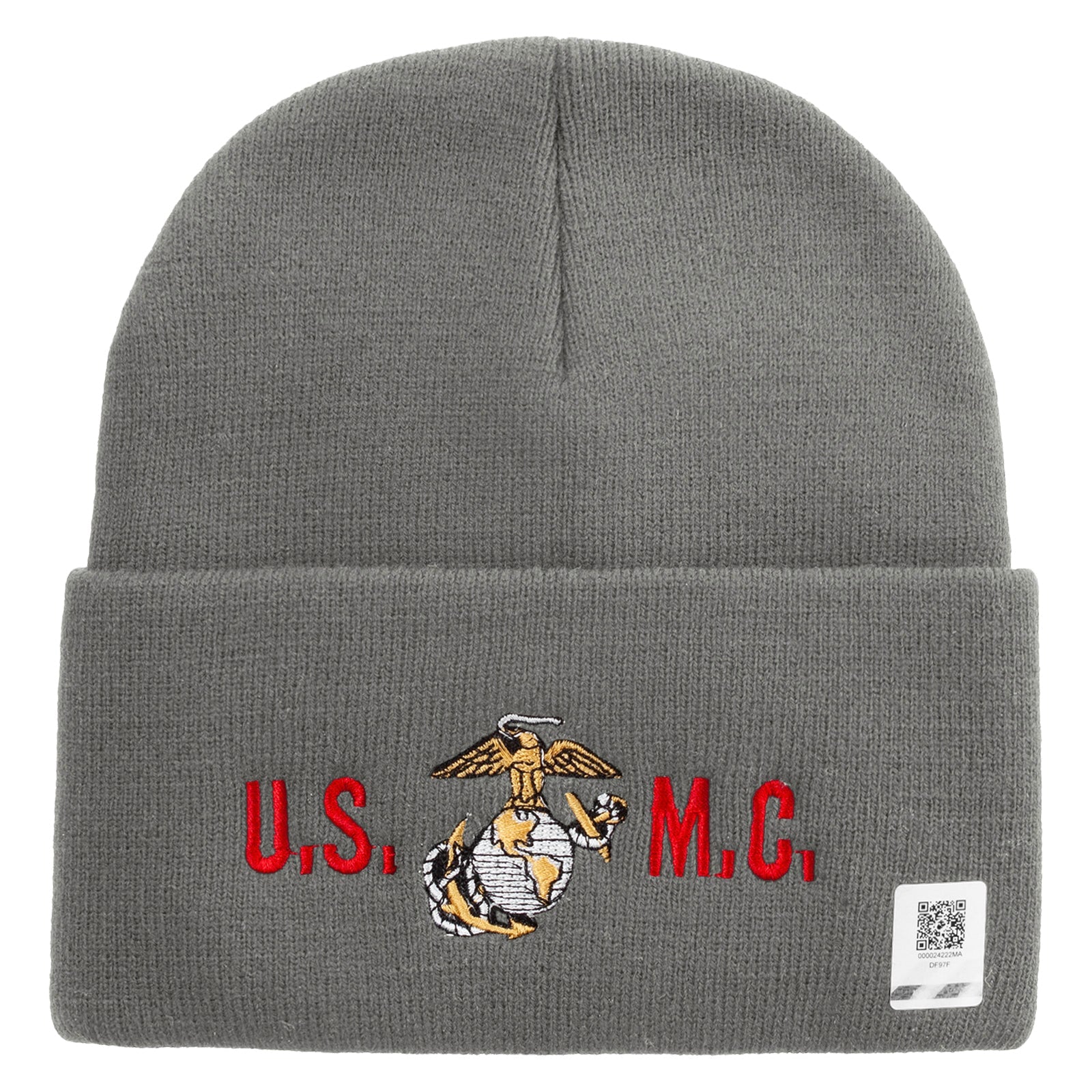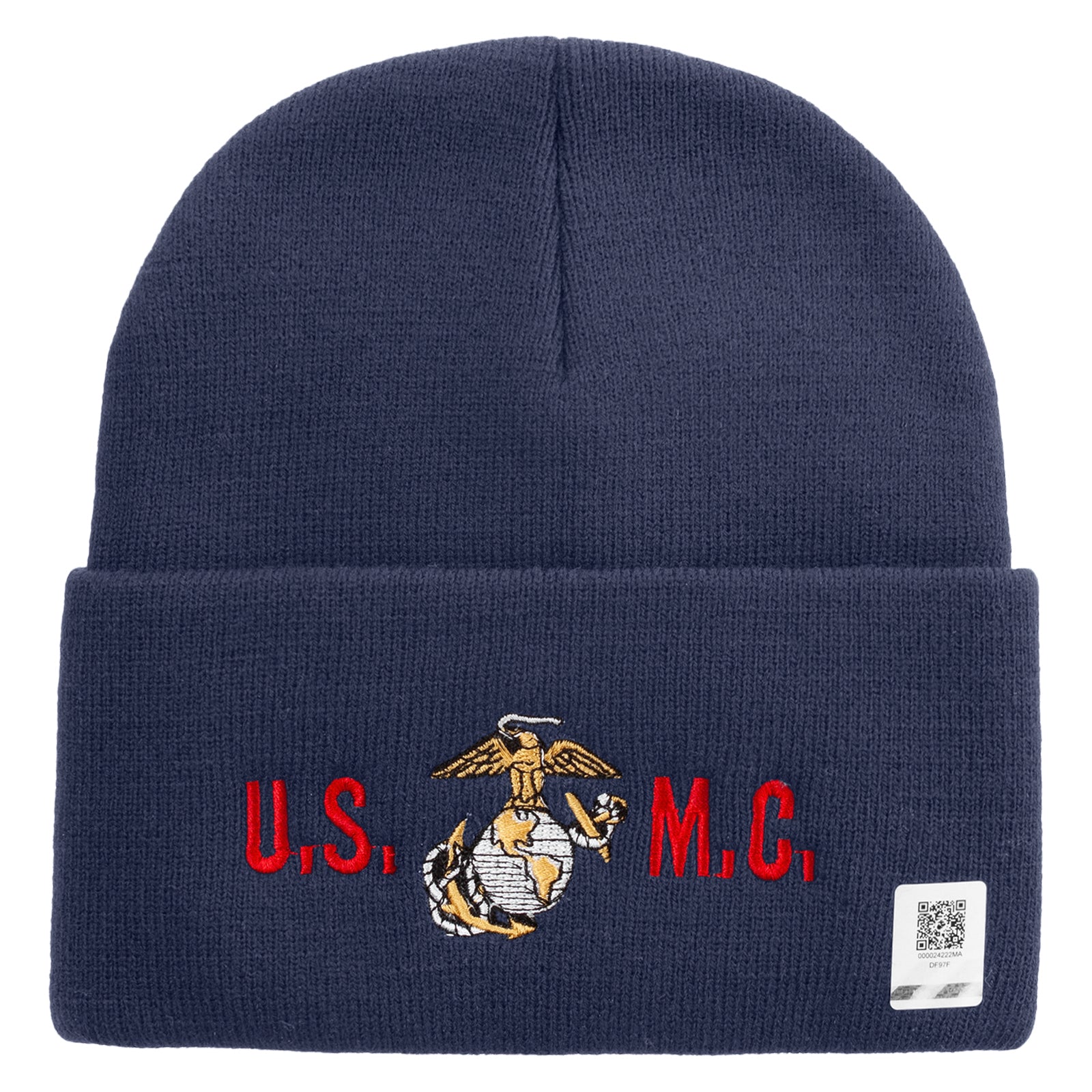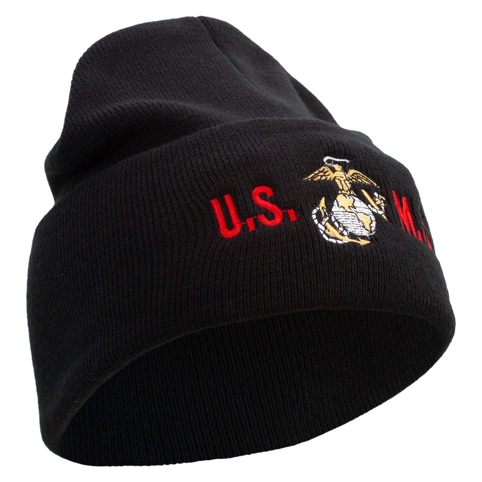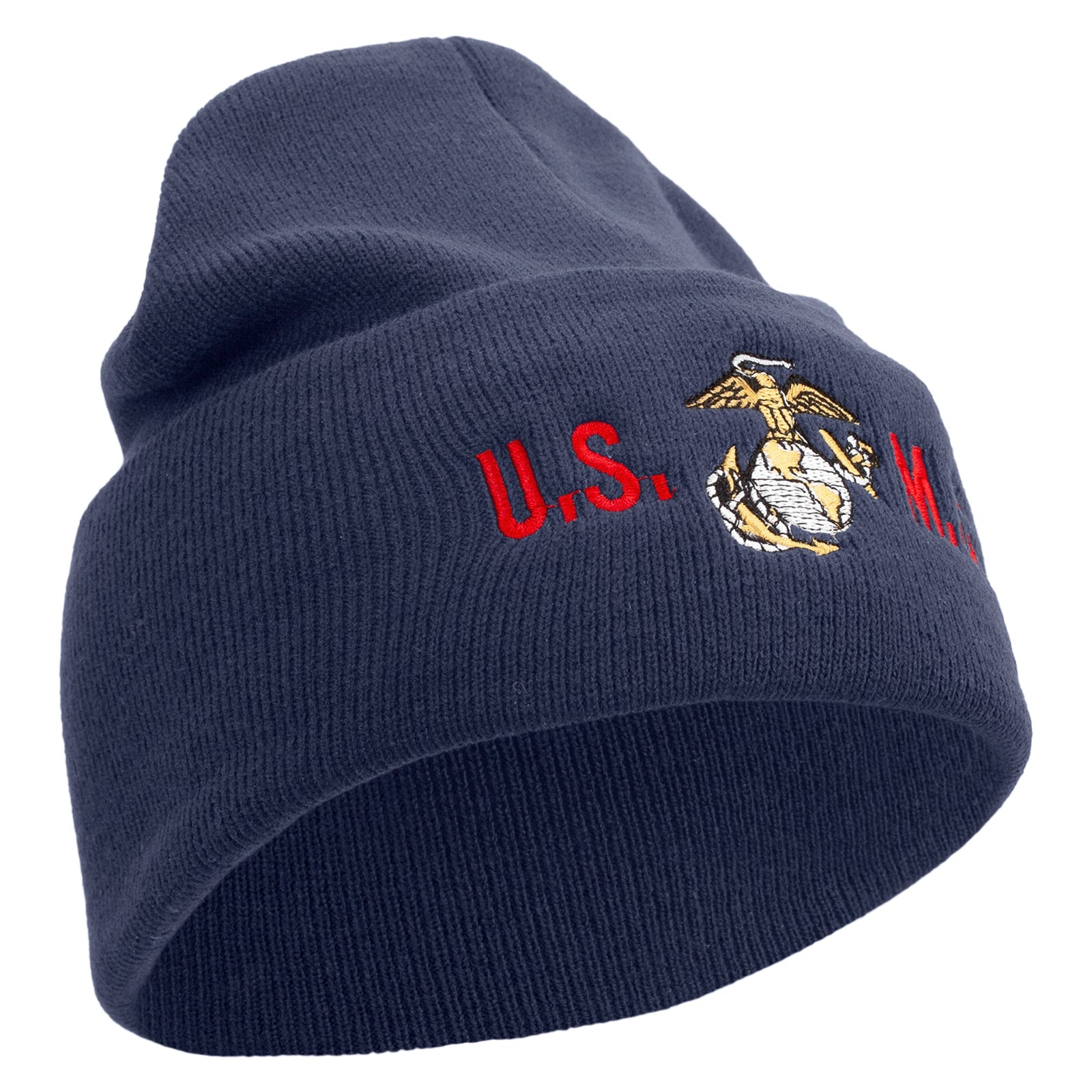 USMC Logo Embroidered 12 Inch Solid Knit Cuff Long Beanie Made in USA