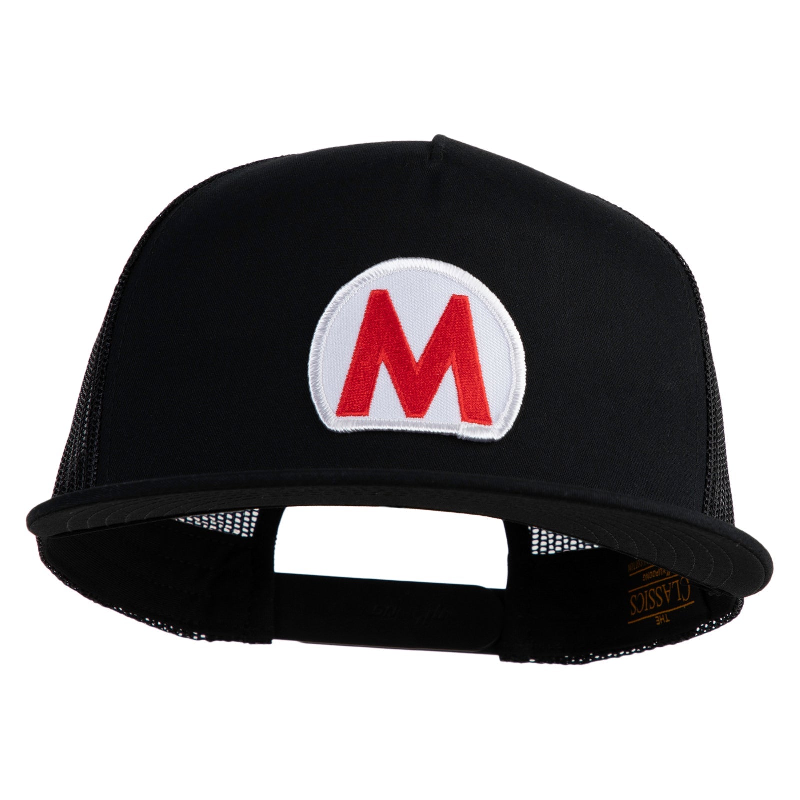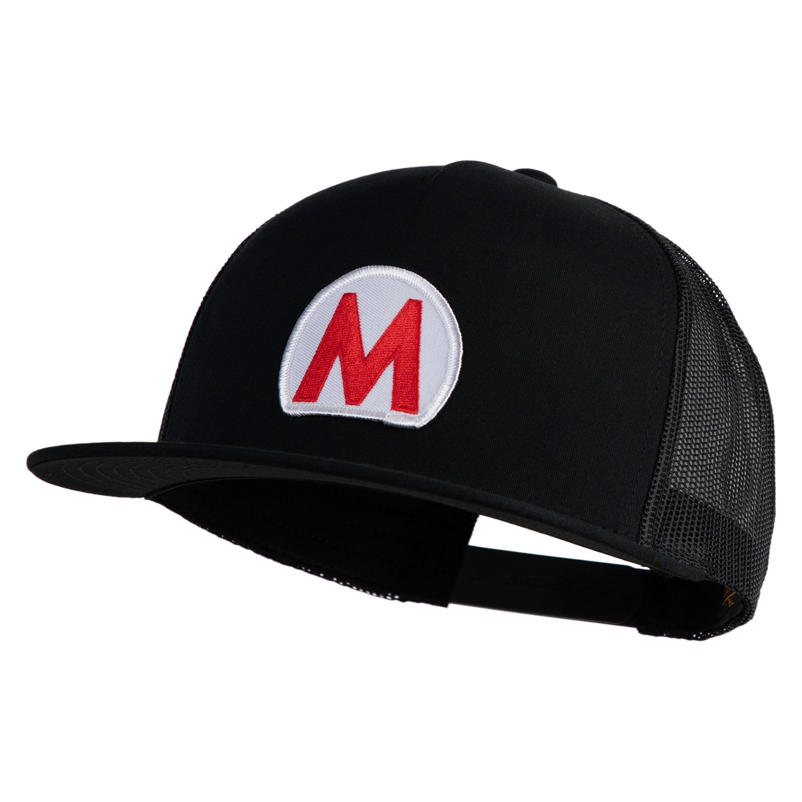 Title, Mario World Logo Circle Patched 5 Panel Mesh Trucker Snapback Cap