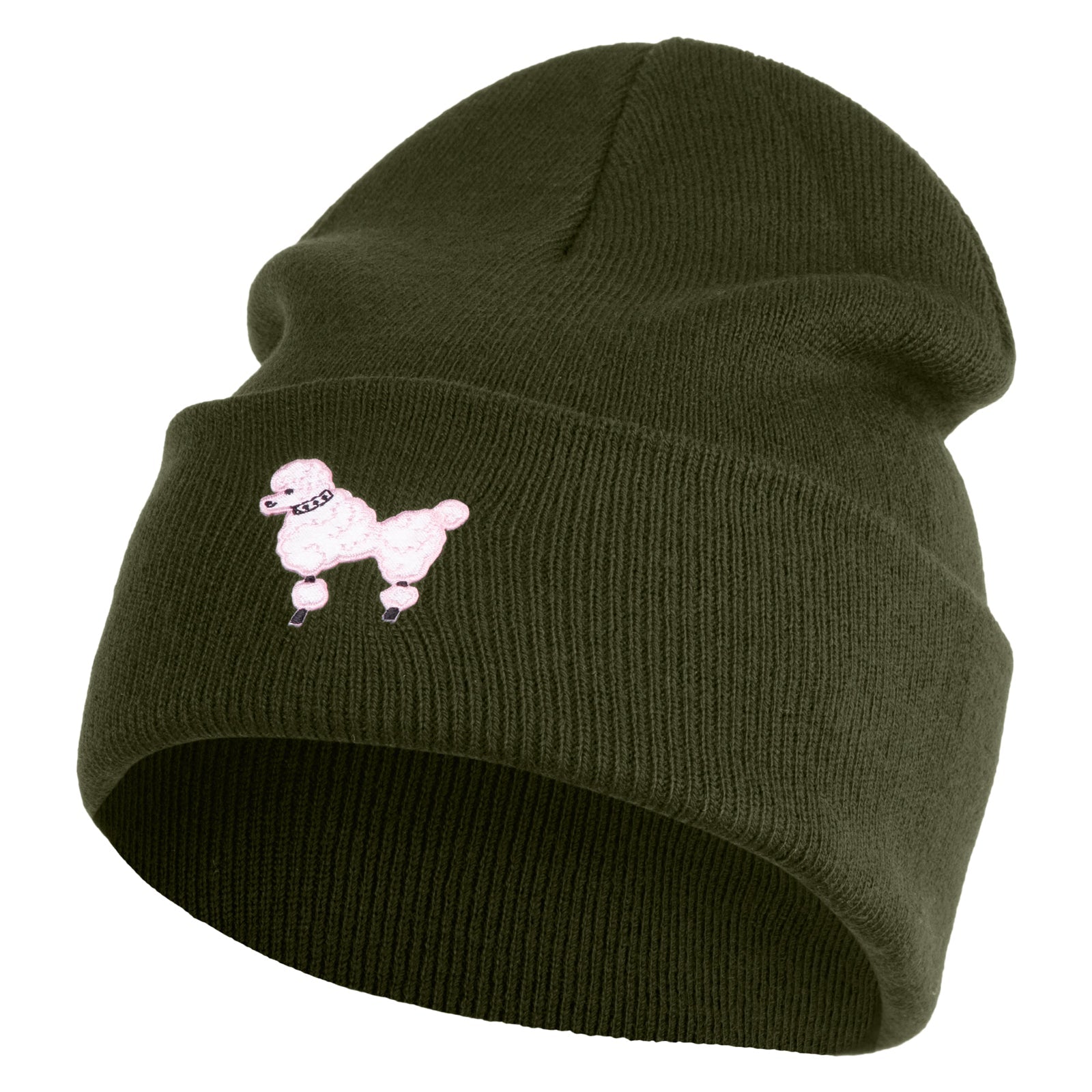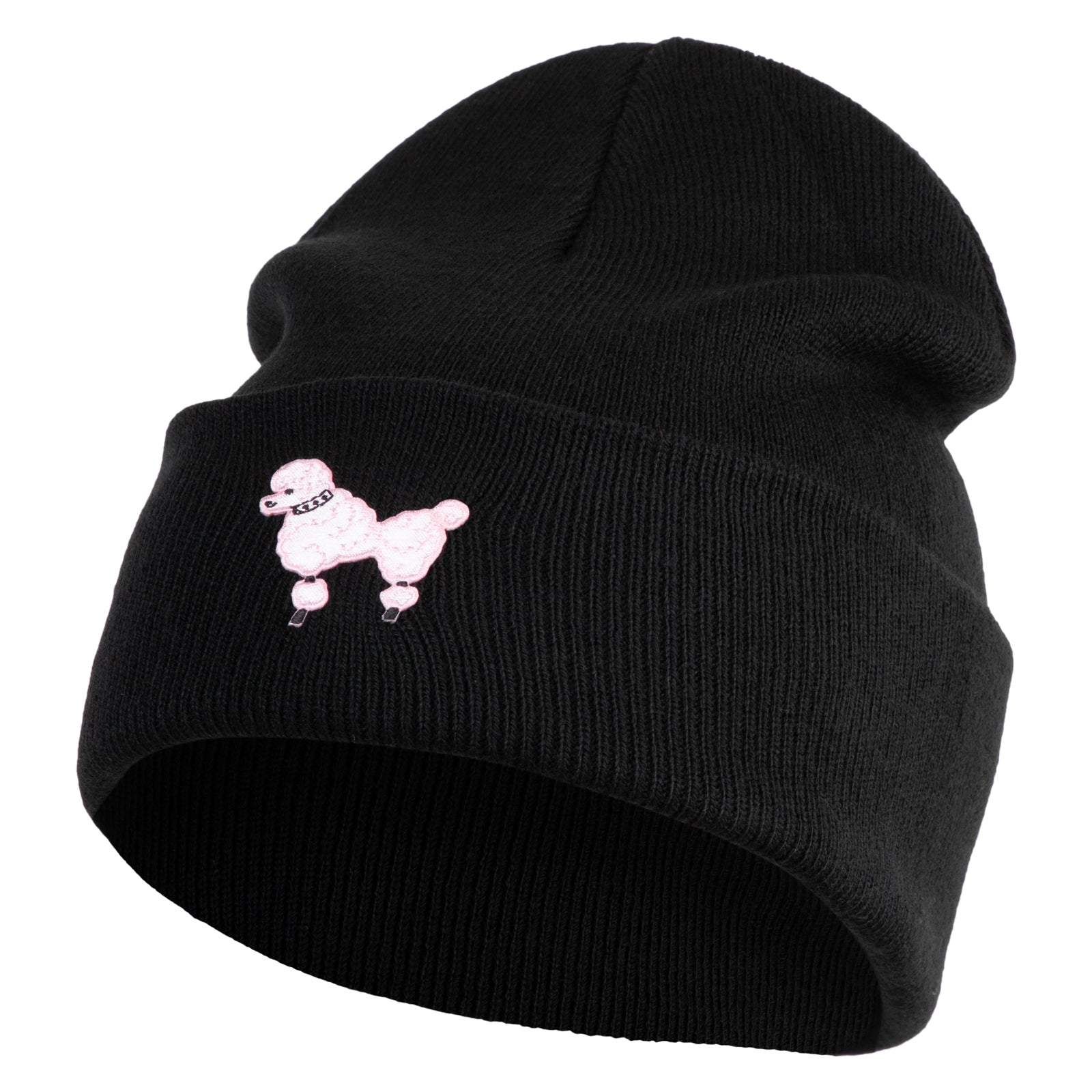 Title, 50's Pink Poodle Iron On Patched 12 Inch Long Knitted Beanie
