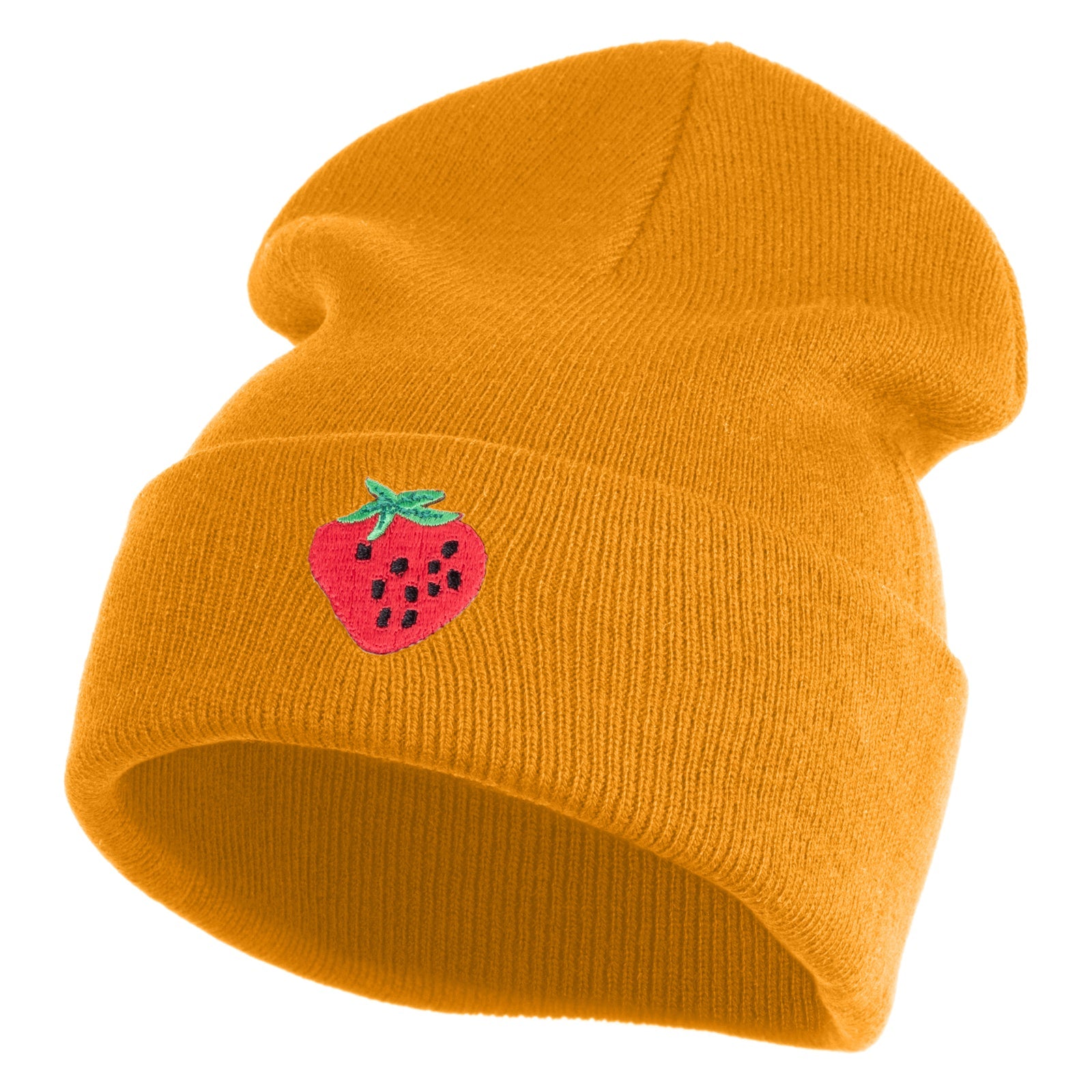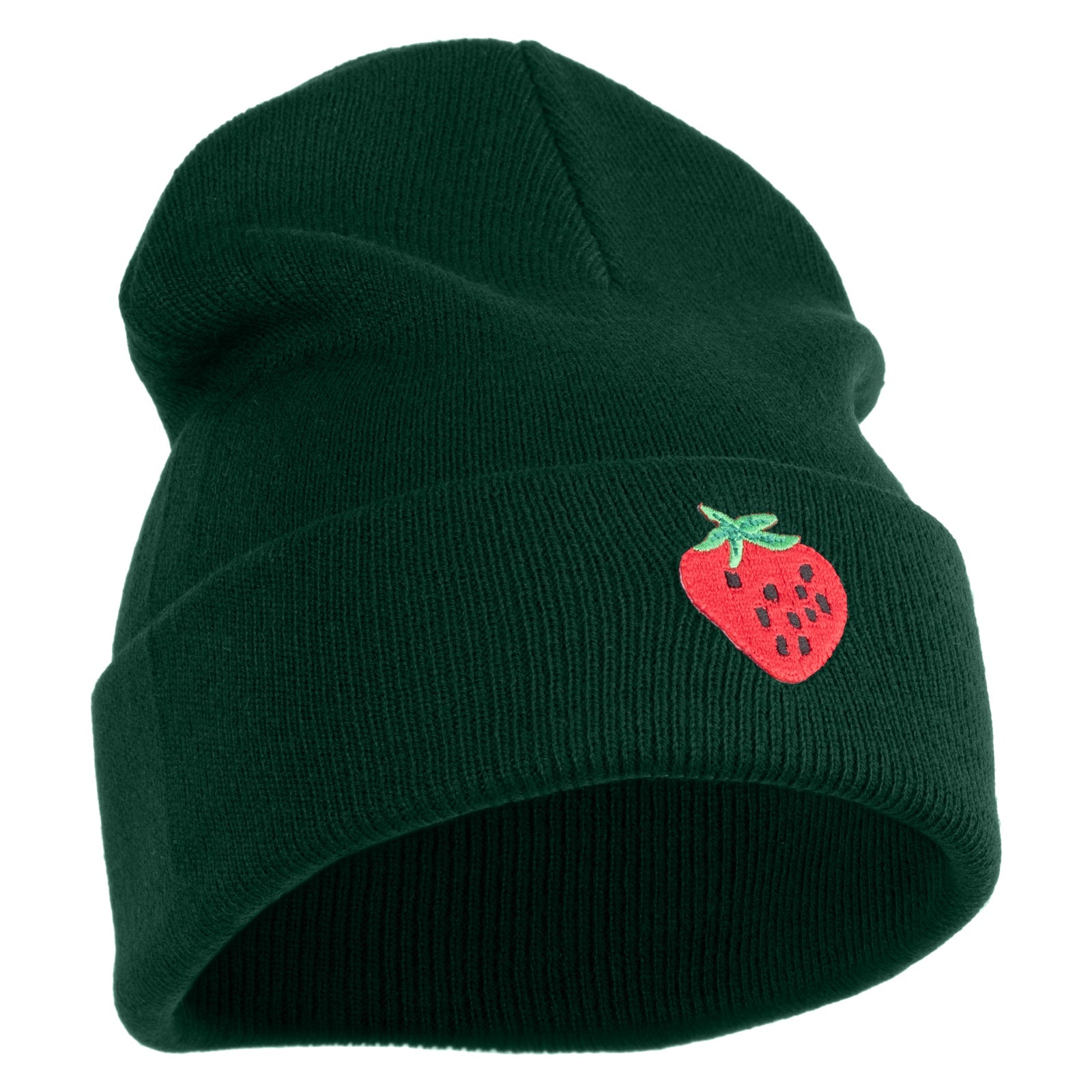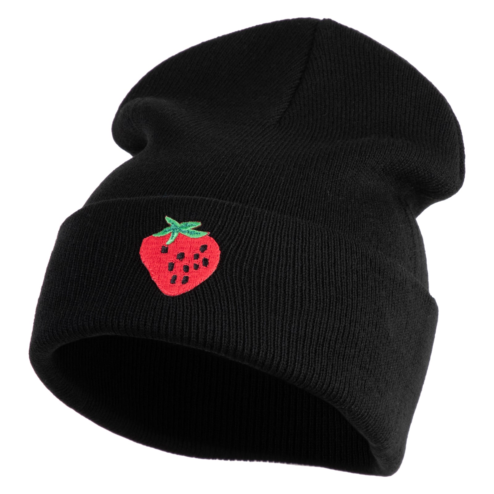 Title, Large Strawberry Applique Iron On Patch Patched 12 Inch Long Knitted Beanie