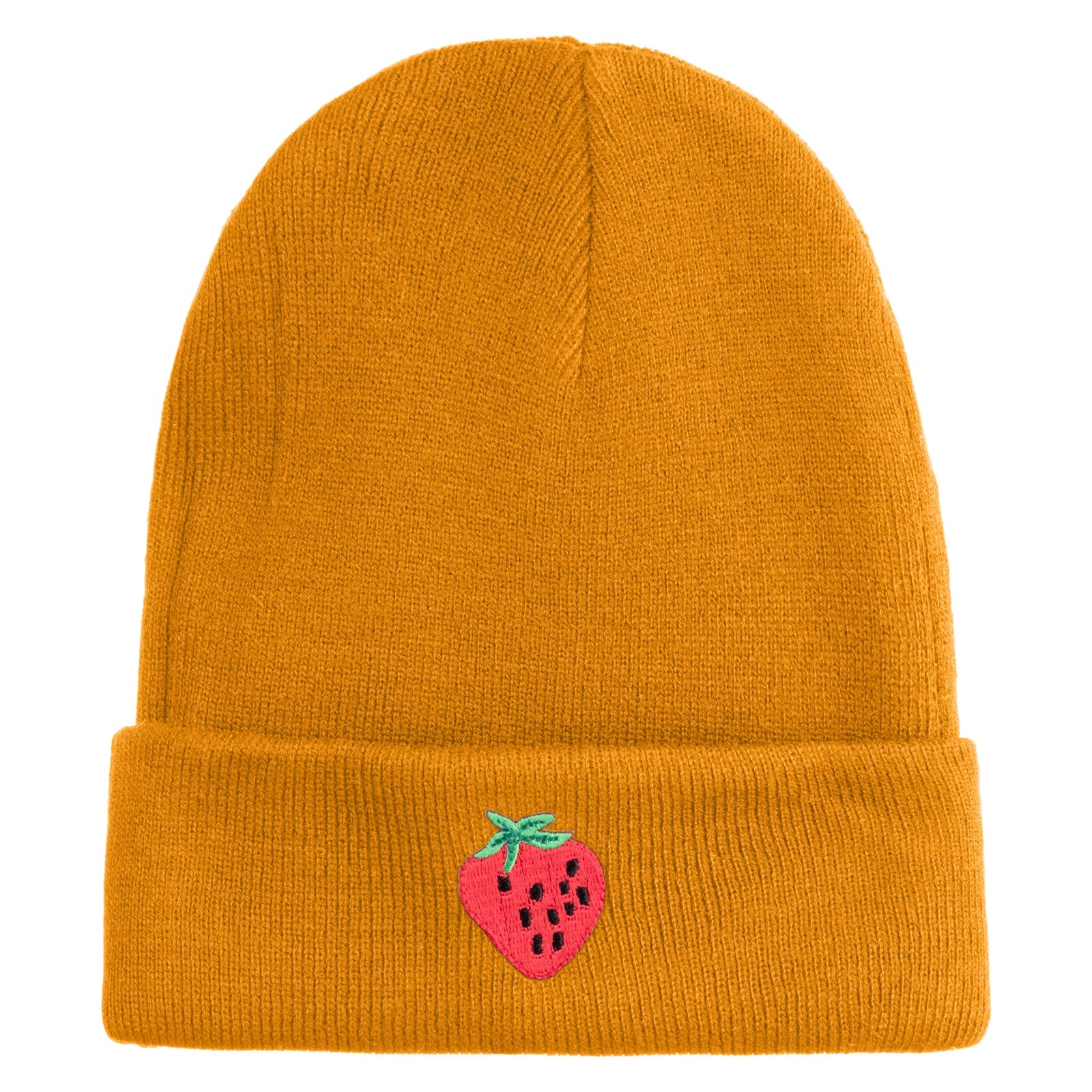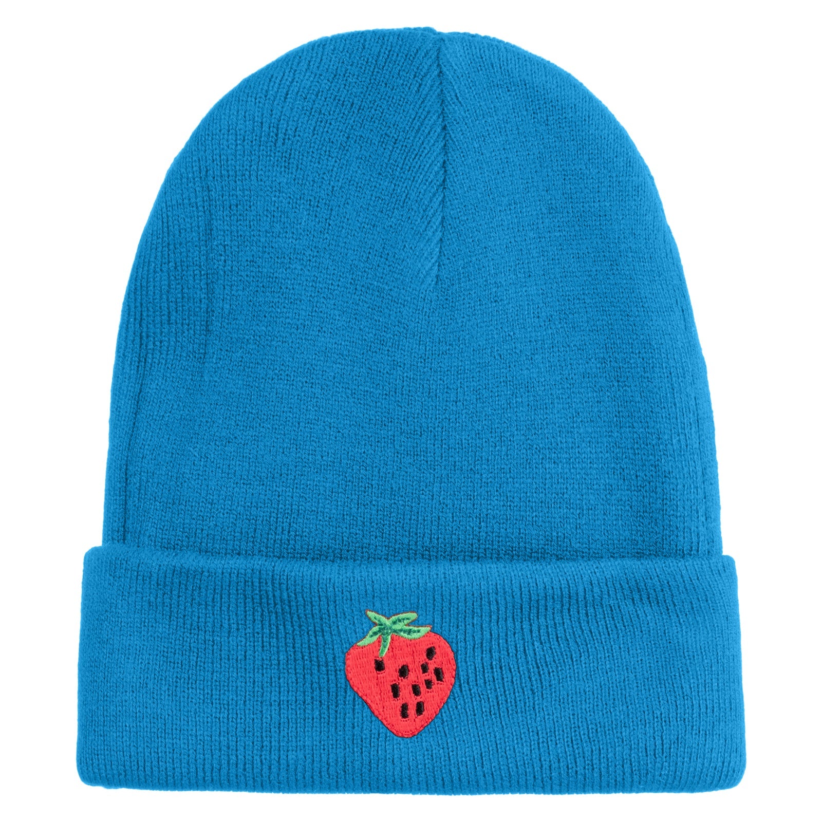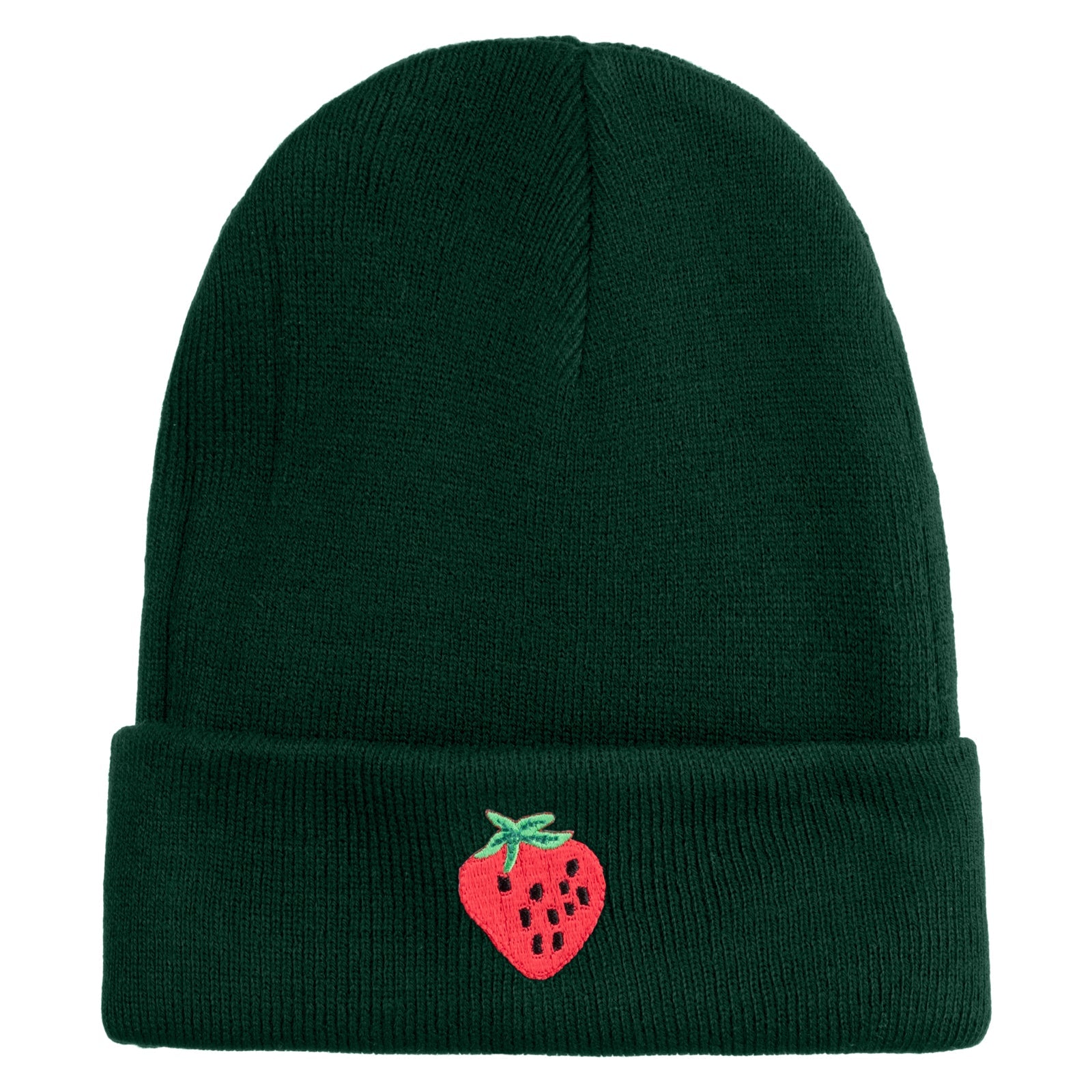 Title, Large Strawberry Applique Iron On Patch Patched 12 Inch Long Knitted Beanie