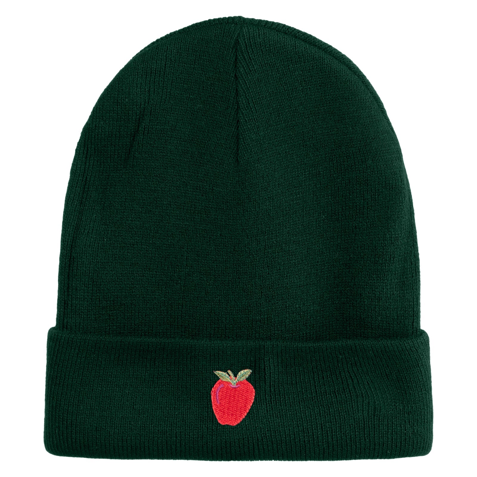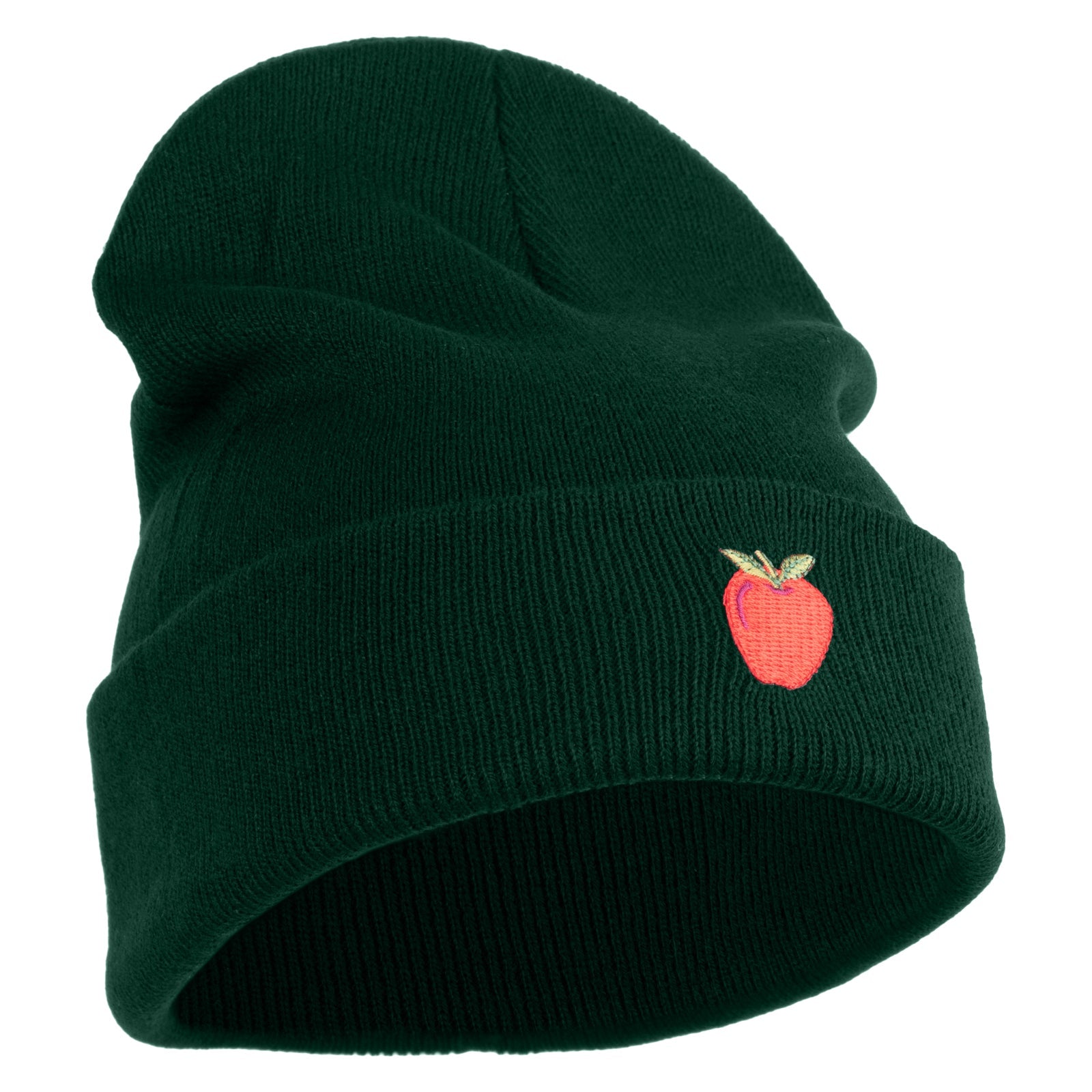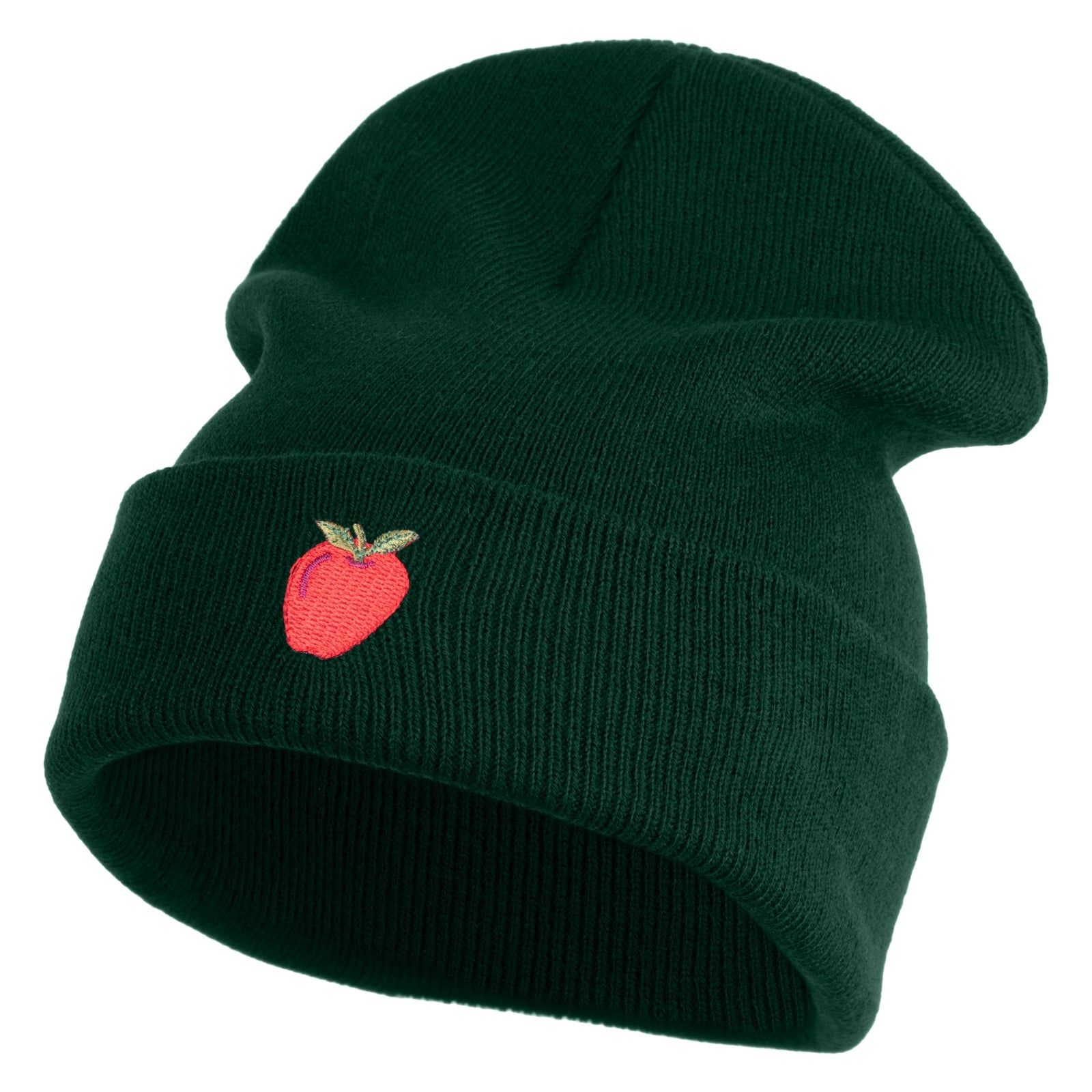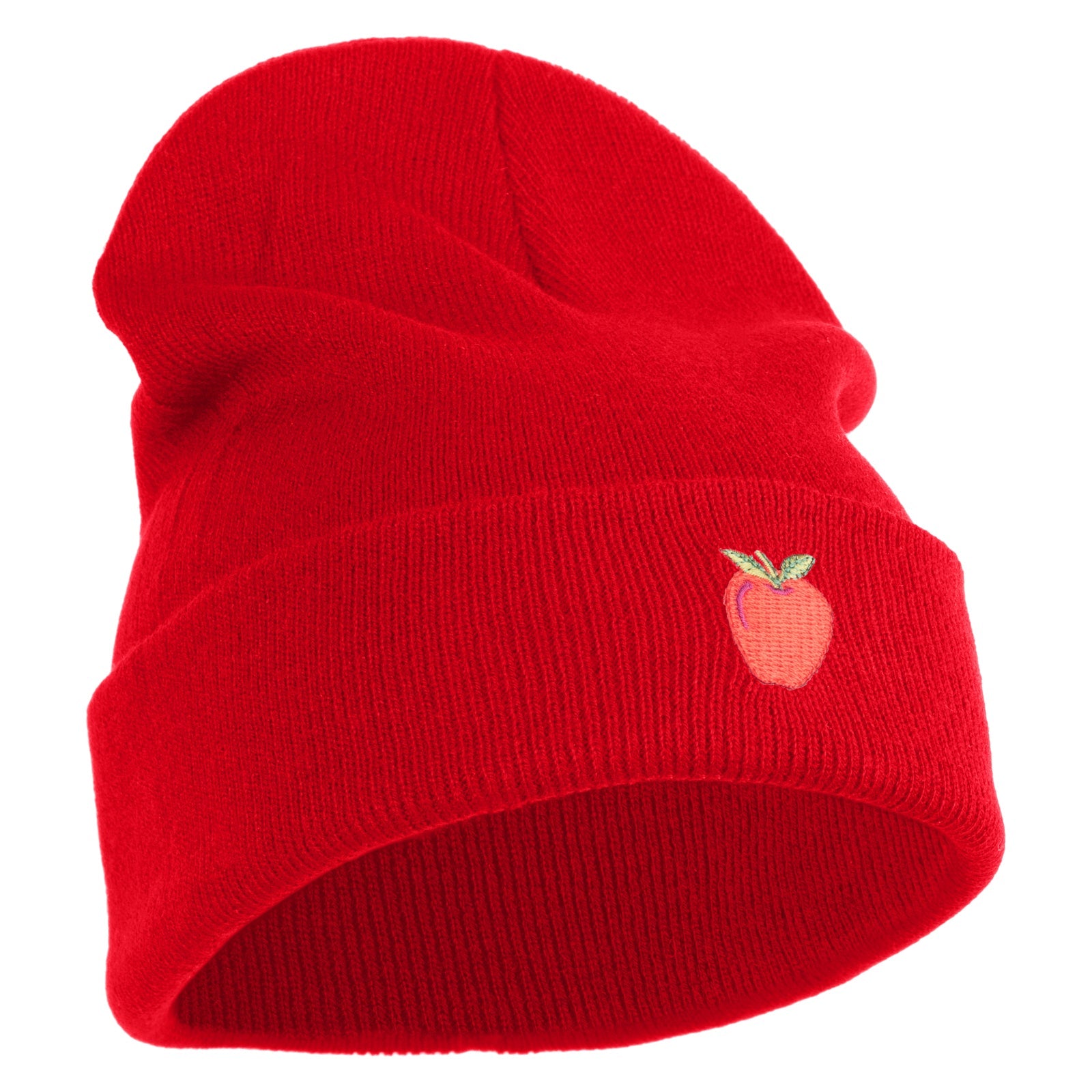 Title, Small Red Apple with Stem Iron On Embroidered Patched 12 Inch Long Knitted Beanie