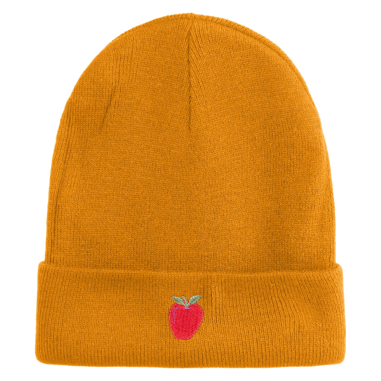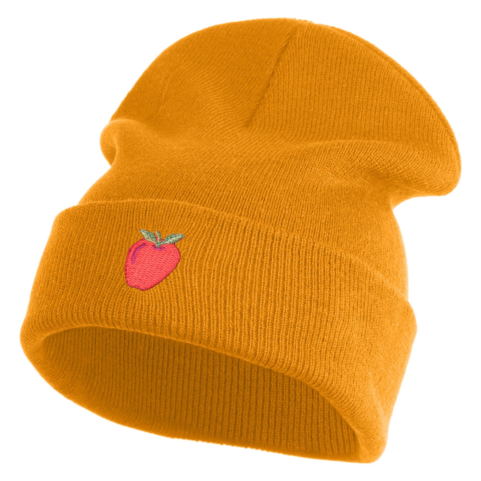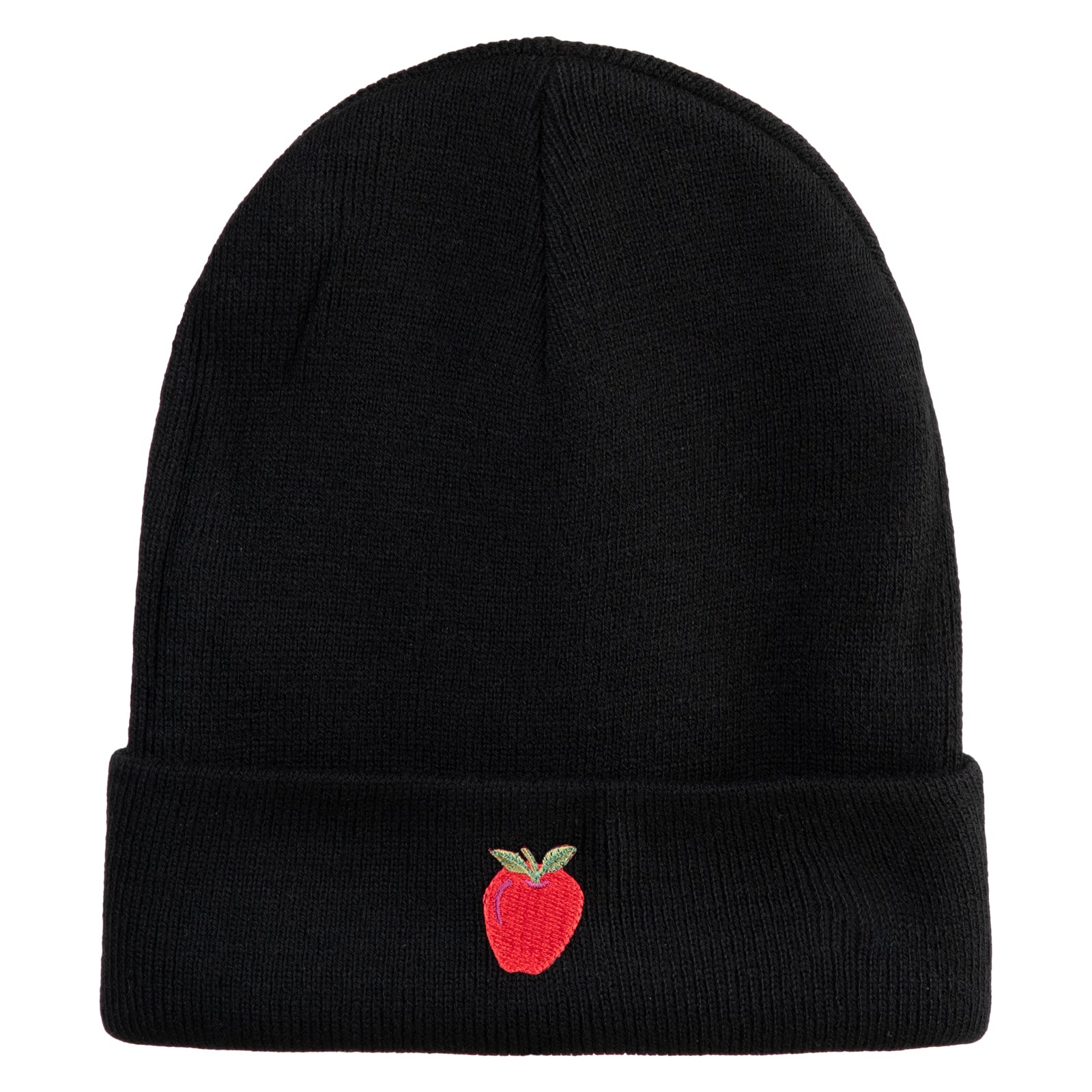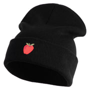 Title, Small Red Apple with Stem Iron On Embroidered Patched 12 Inch Long Knitted Beanie