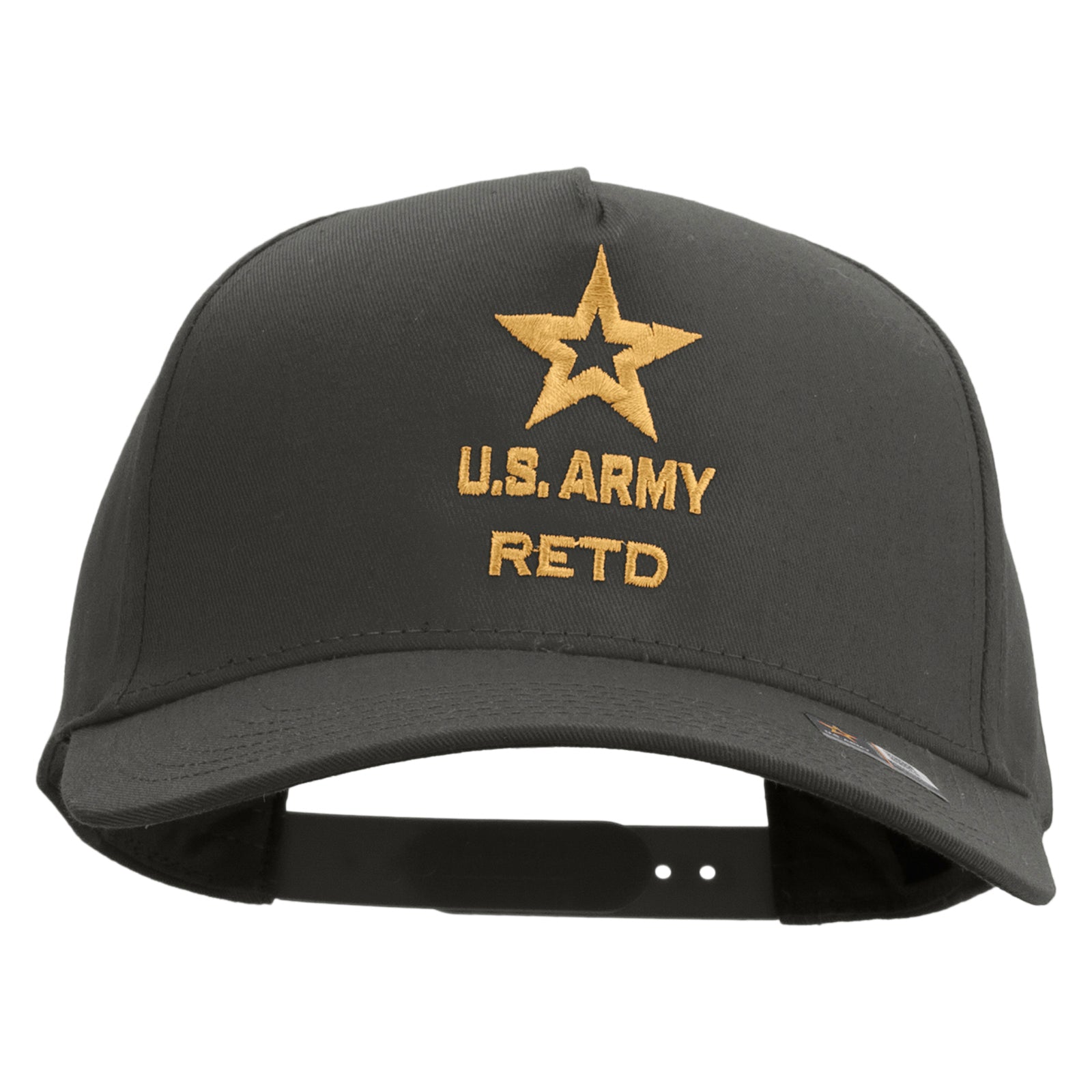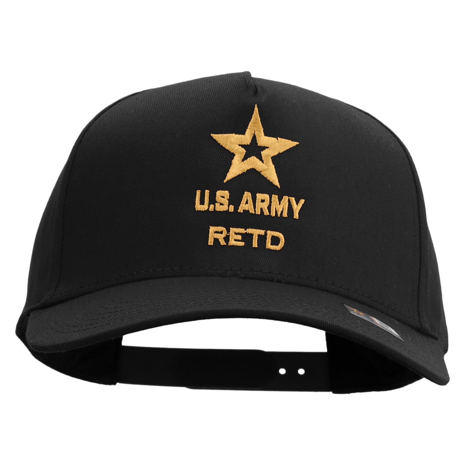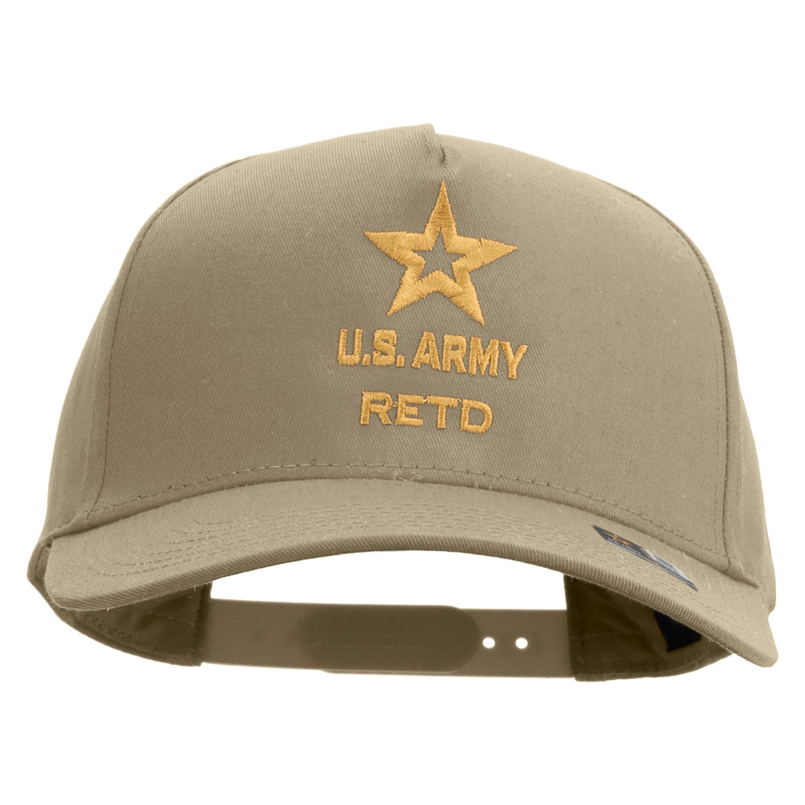 Title, Licensed Star U.S. Army Retired Military Embroidered Solid Cotton Twill 5 Panel Prostyle Snap Cap