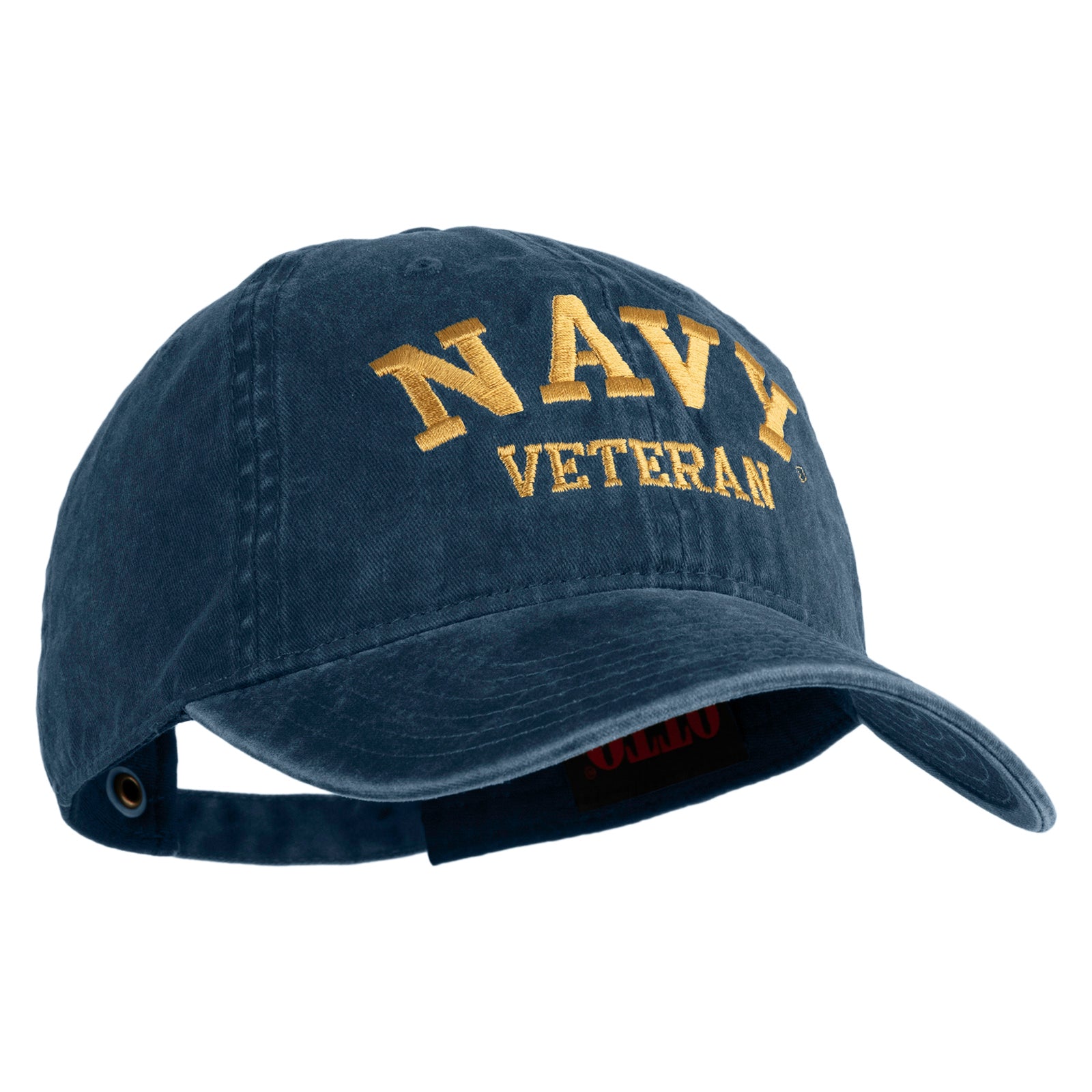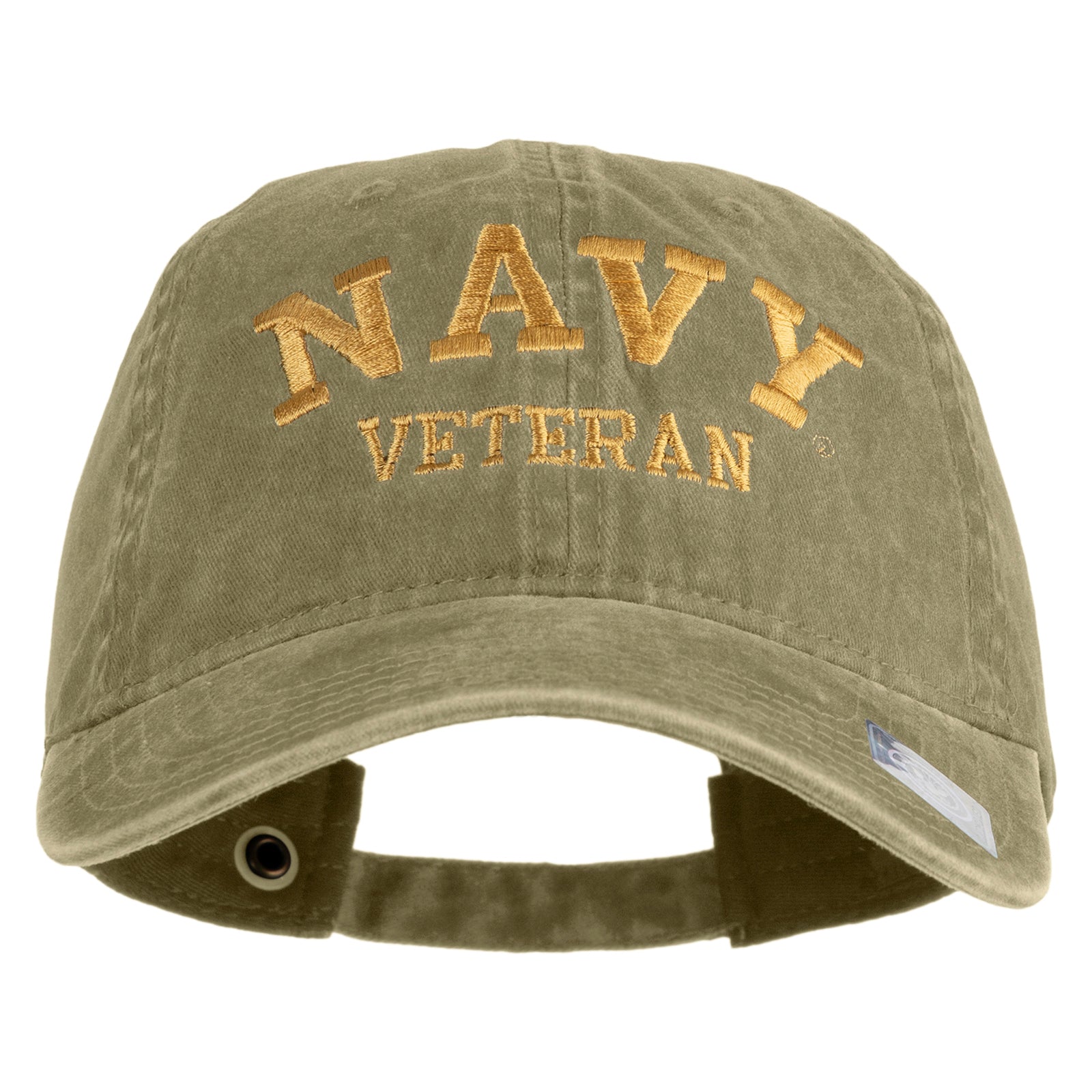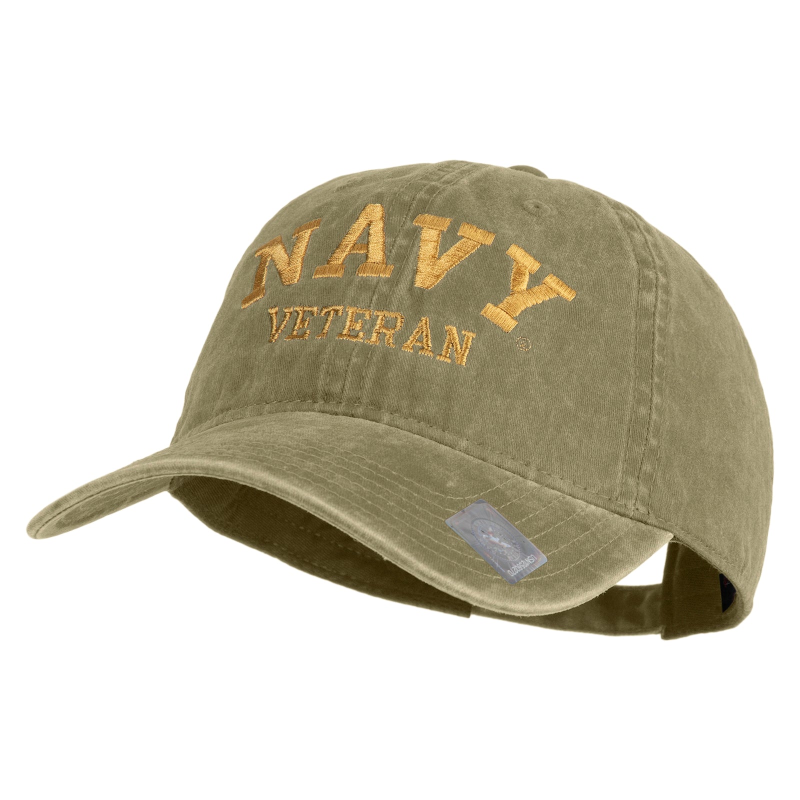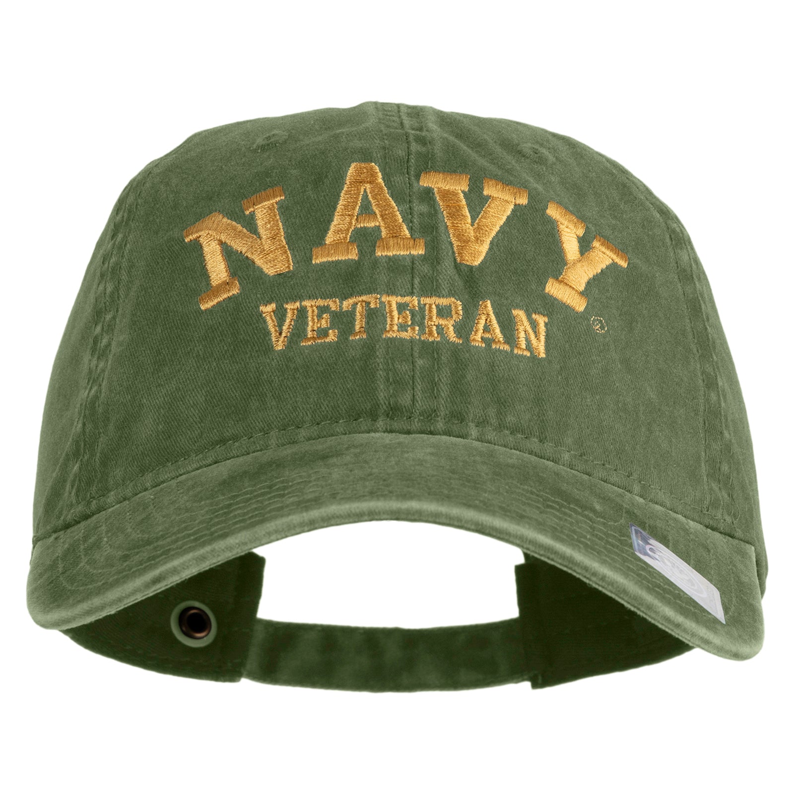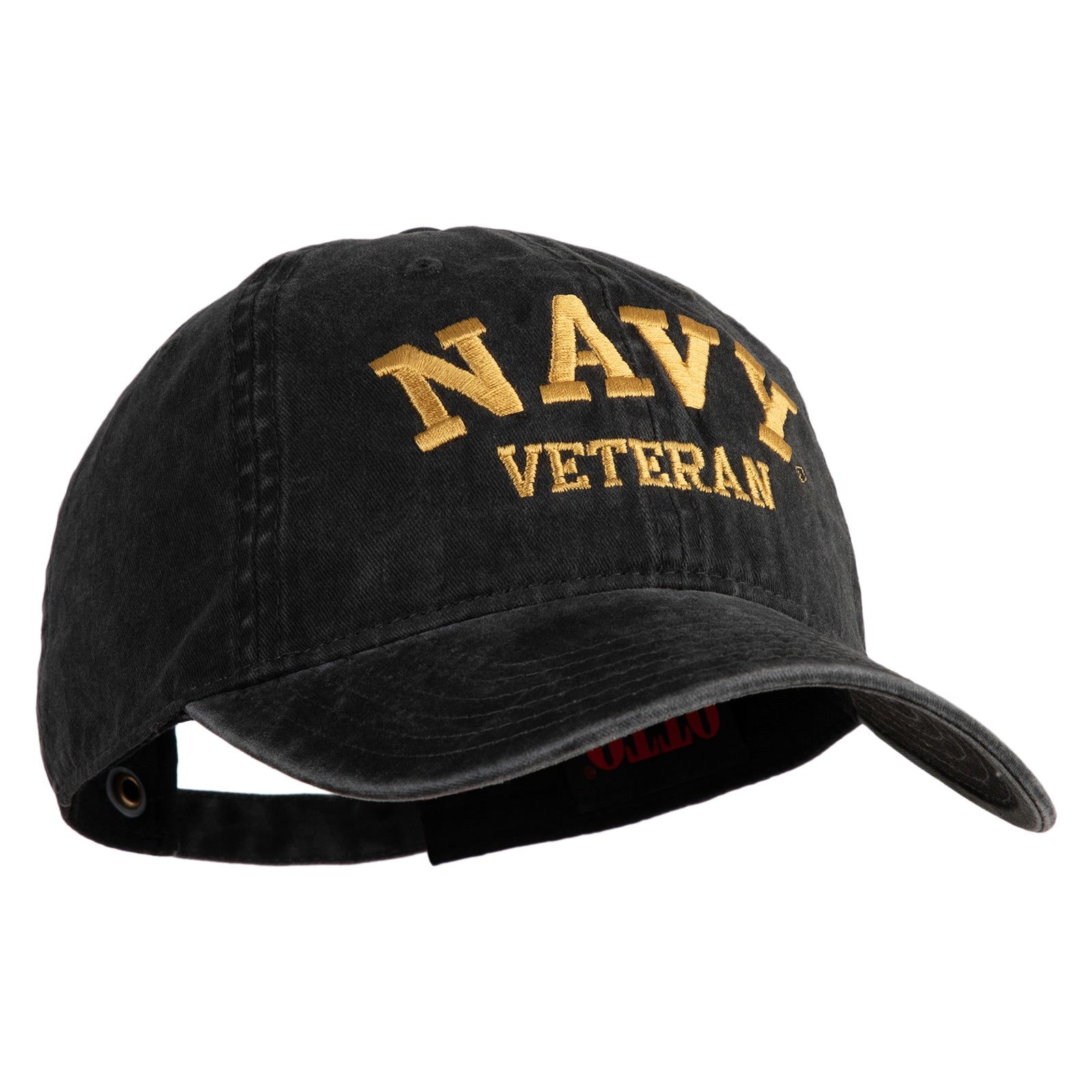 Title, Navy Veteran Letters Embroidered Washed Solid Pigment Dyed Cotton Twill Brass Buckle Cap