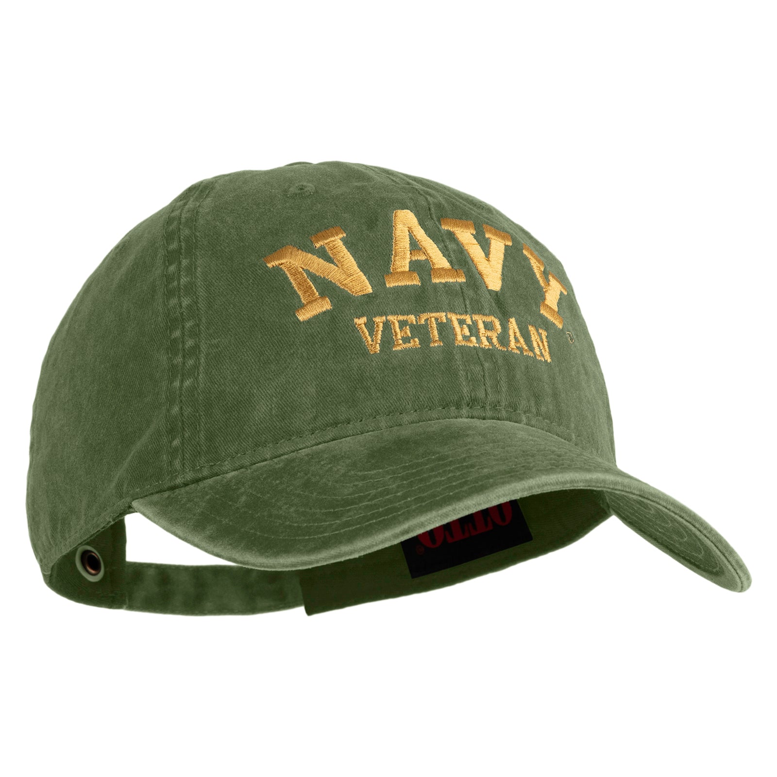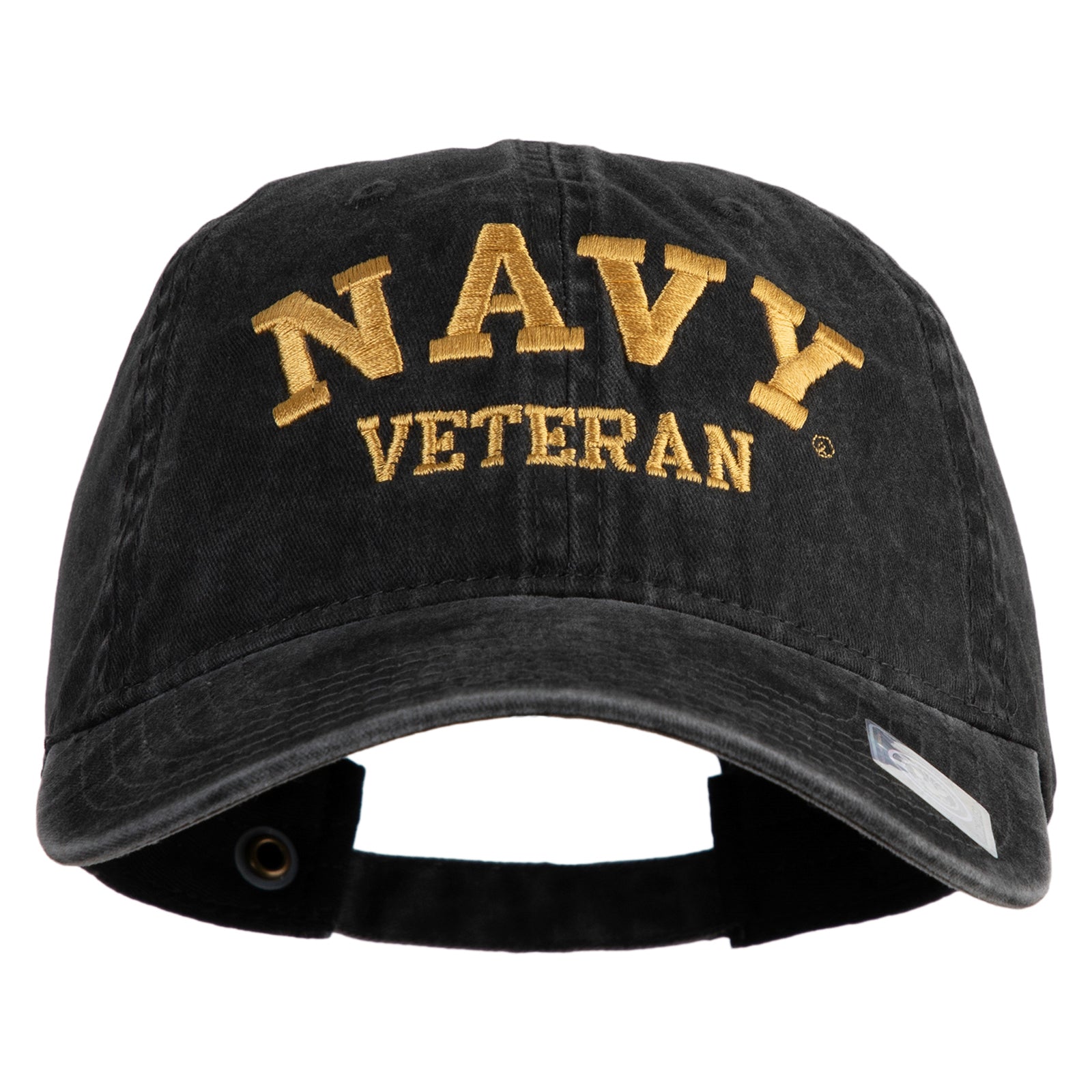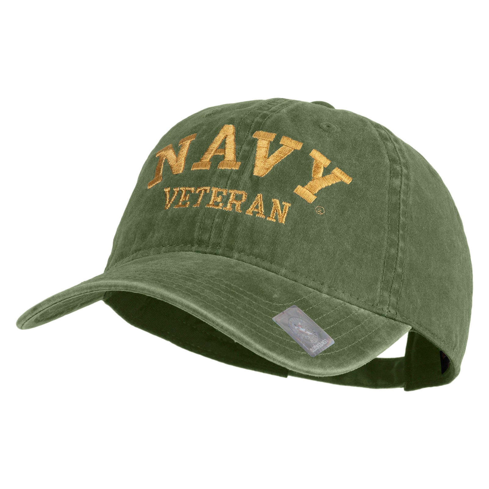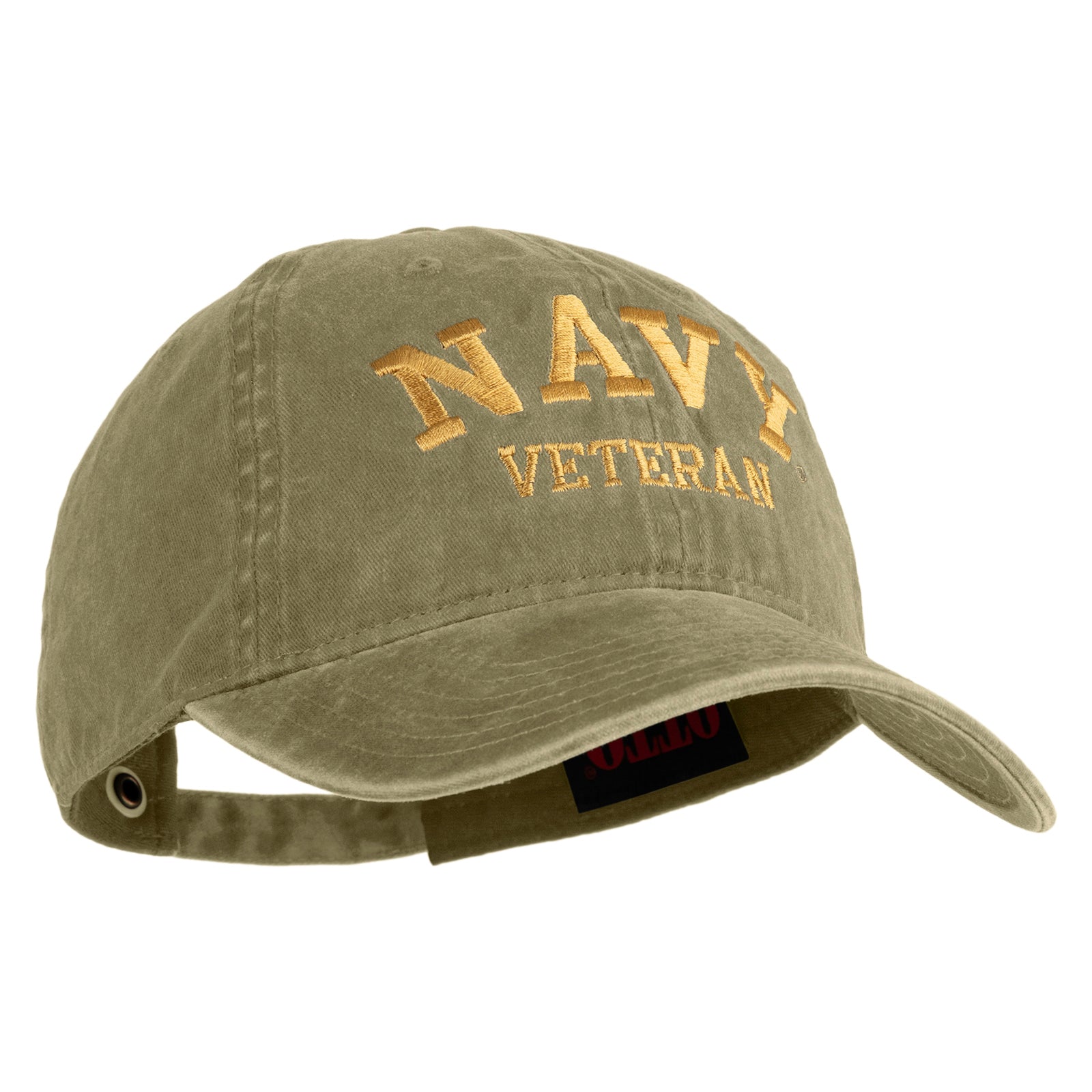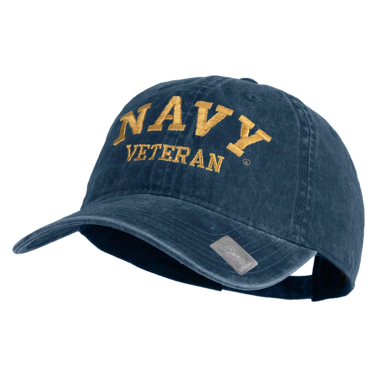 Title, Navy Veteran Letters Embroidered Washed Solid Pigment Dyed Cotton Twill Brass Buckle Cap