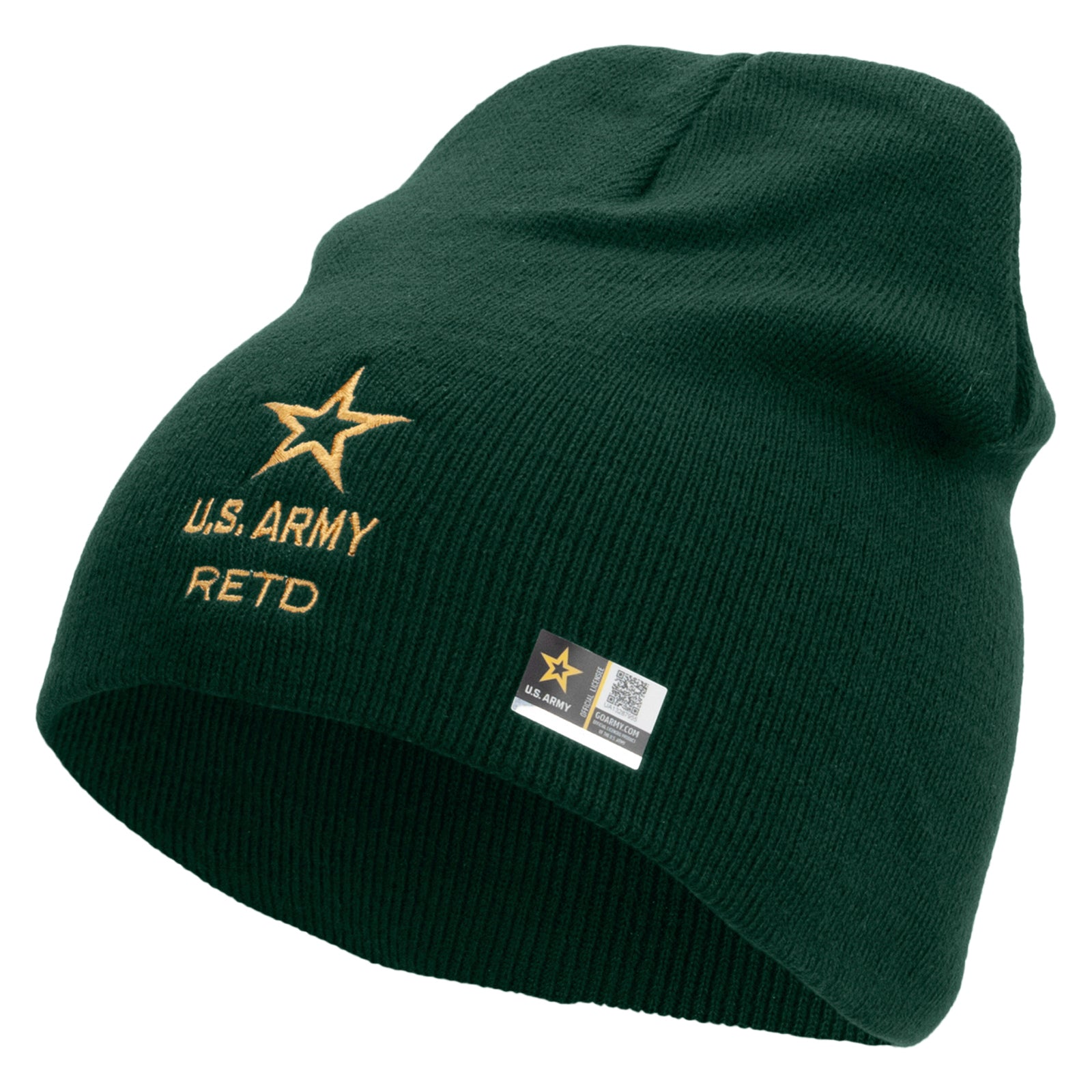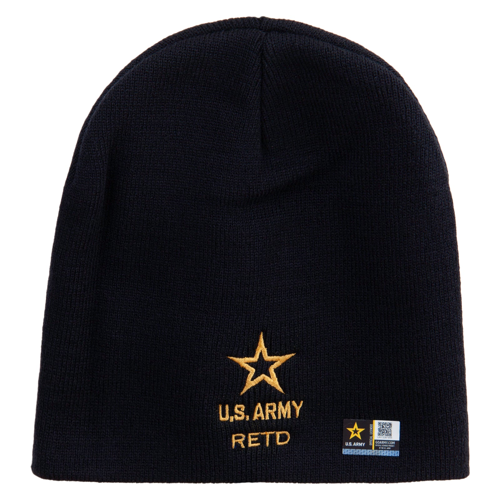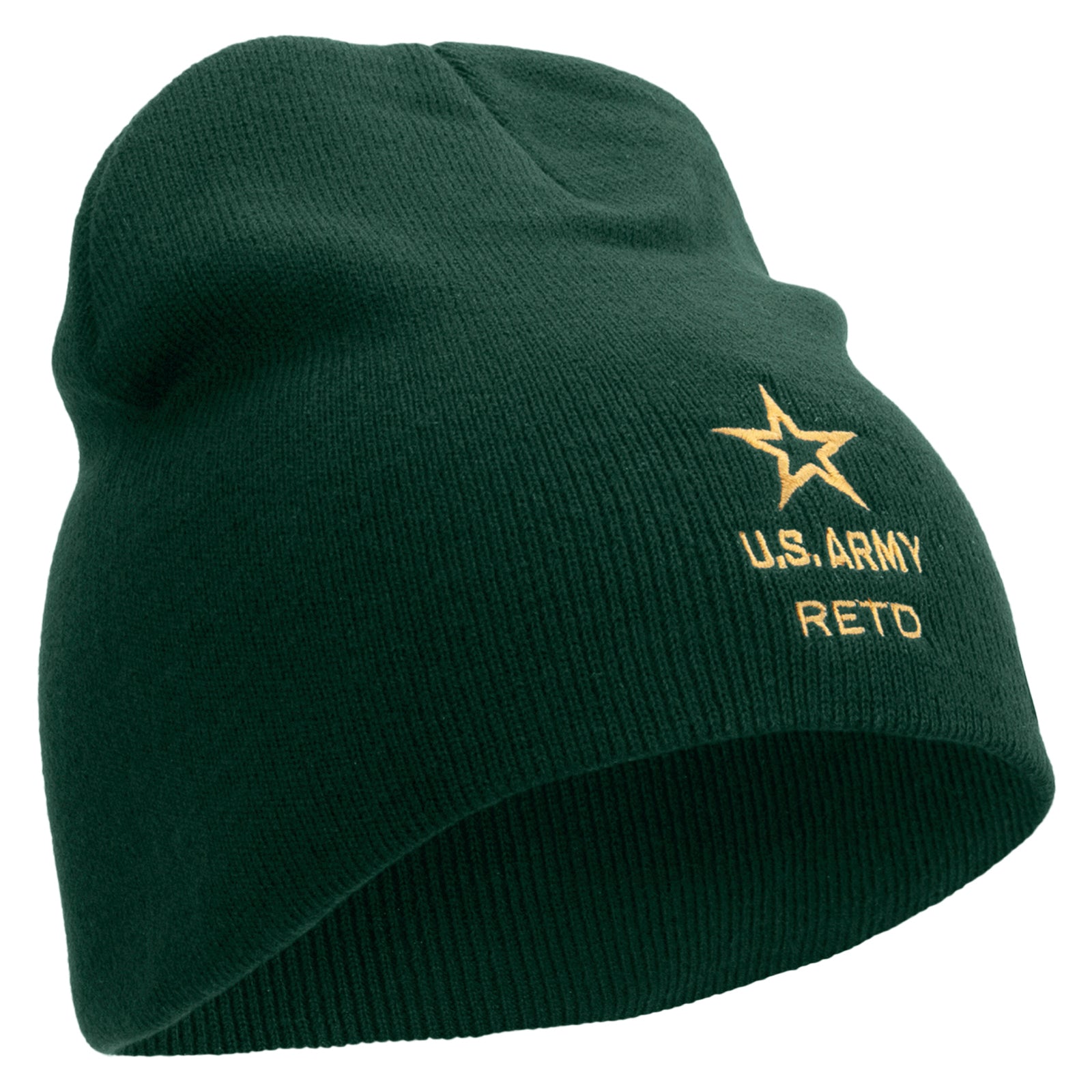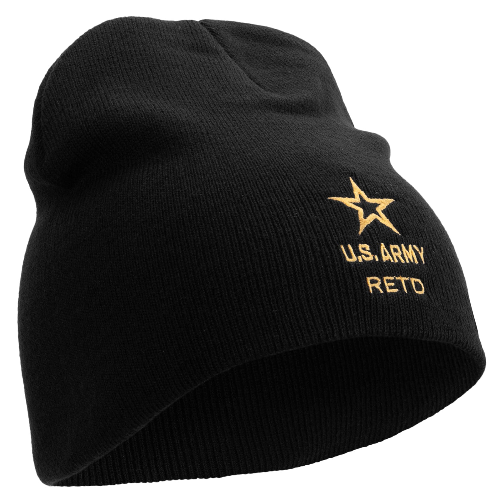 Title, Licensed Star US Army Retired Military Embroidered 8 Inch Knitted Short Beanie
