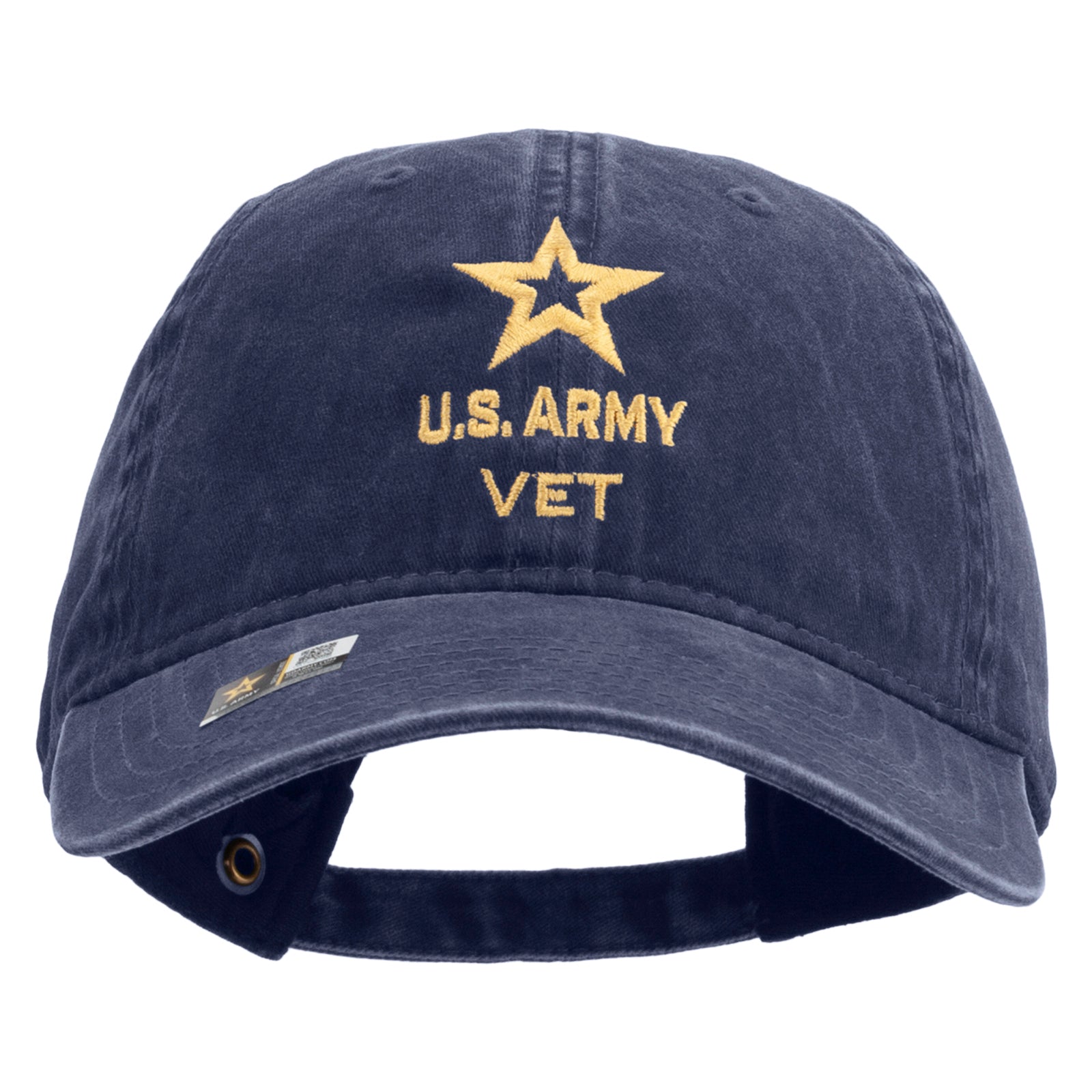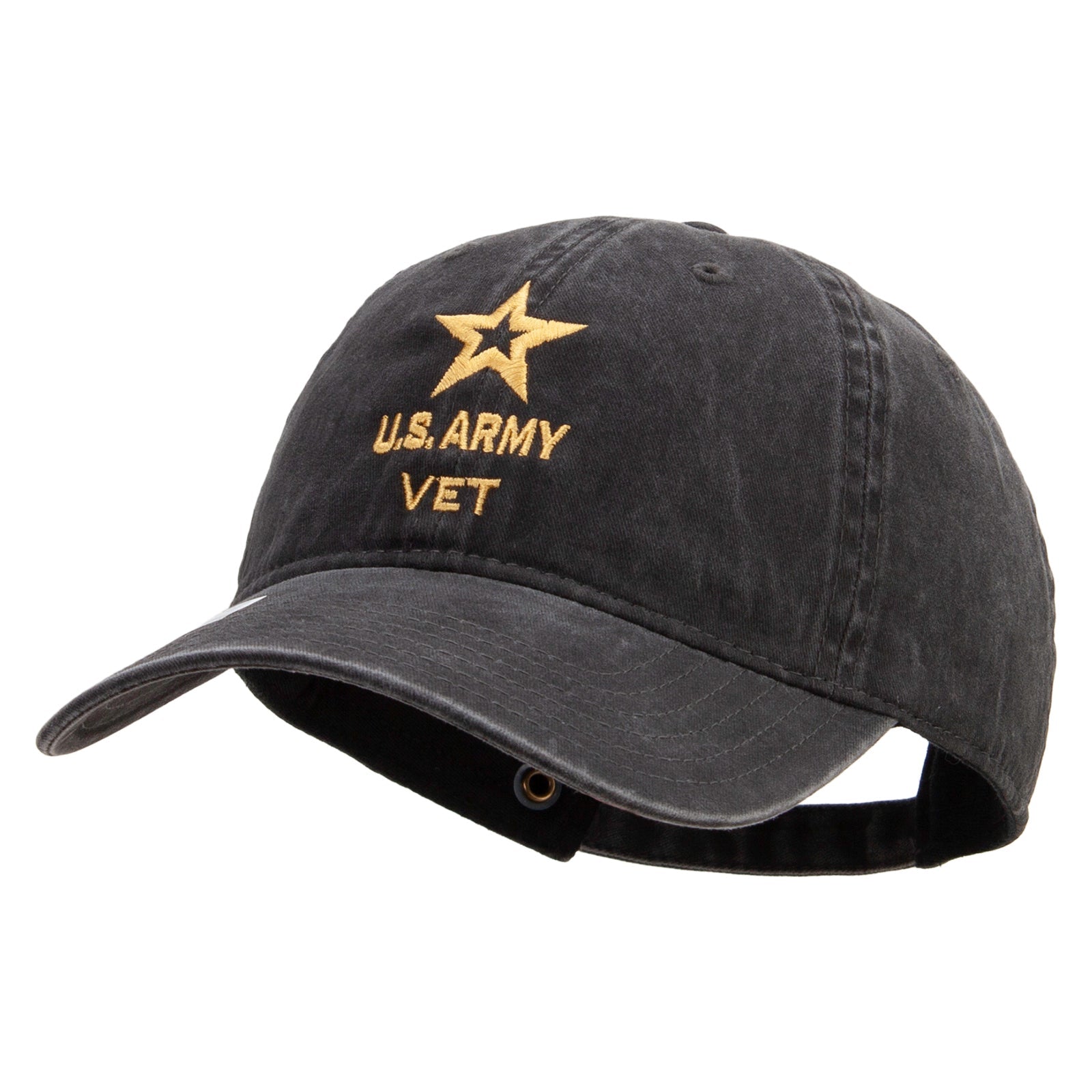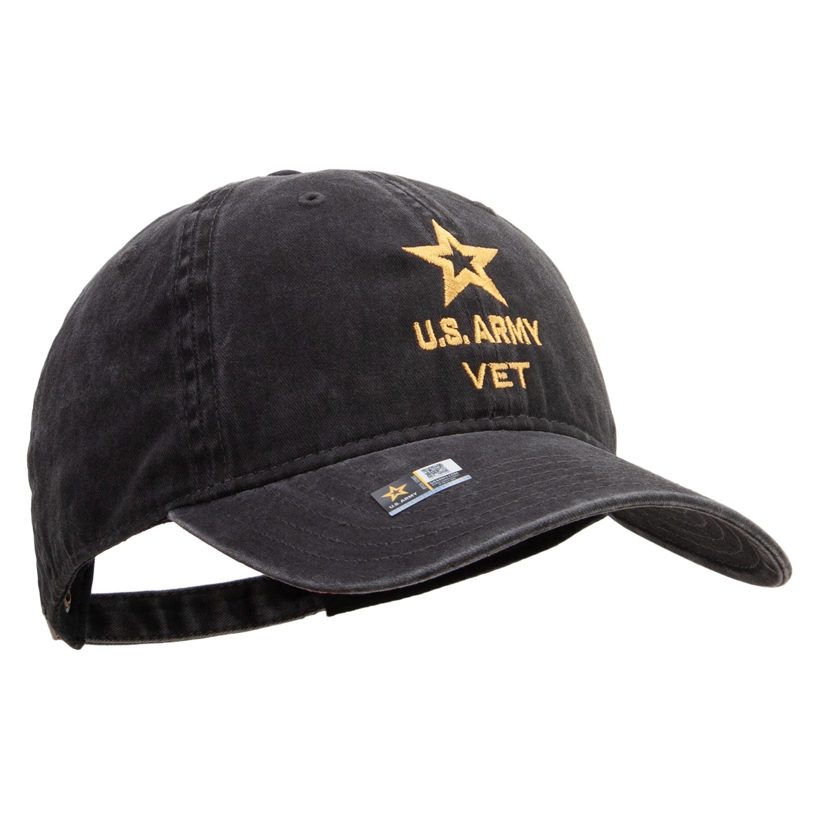 Title, Licensed Star US Army Veteran Military Embroidered Washed Solid Pigment Dyed Cotton Twill Brass Buckle Cap