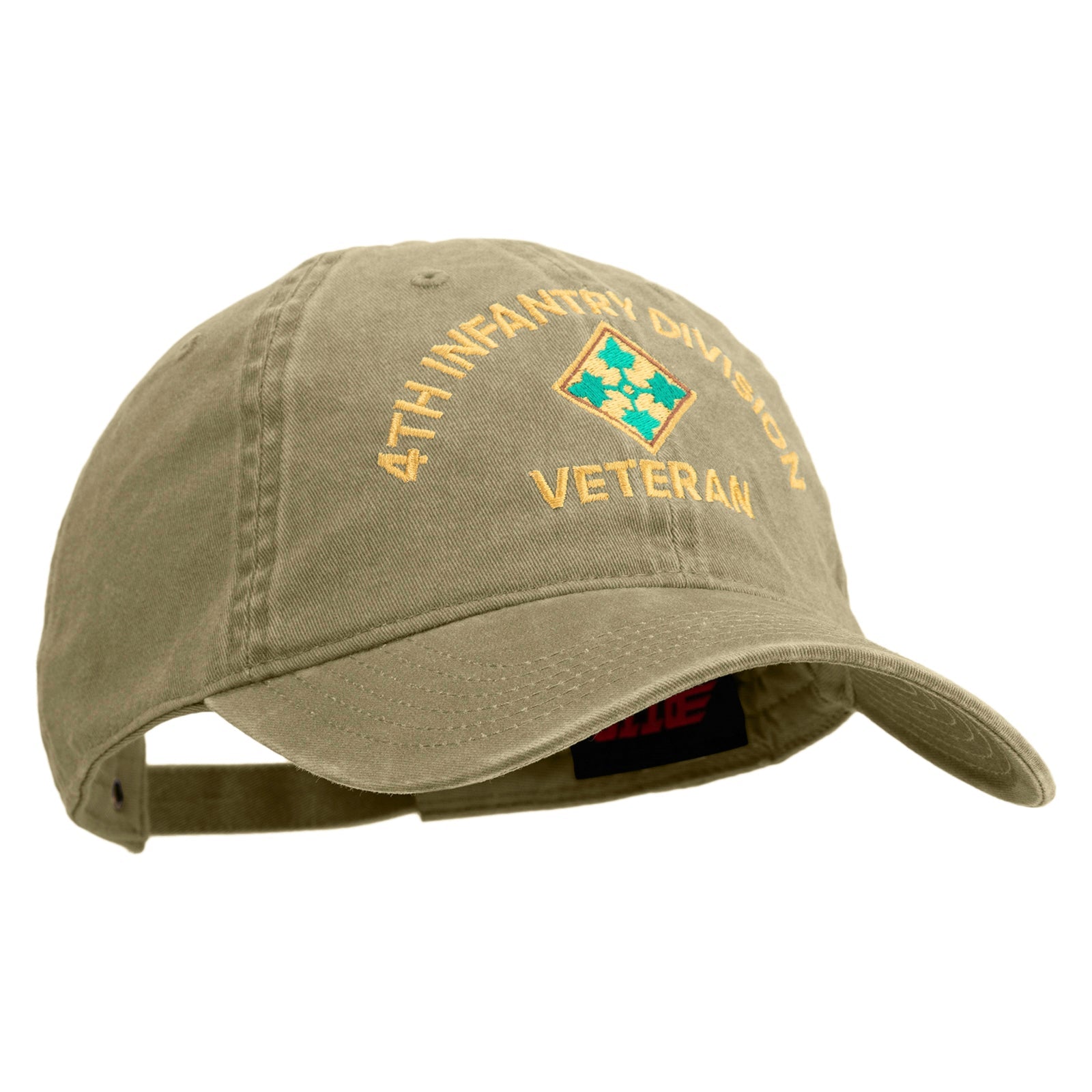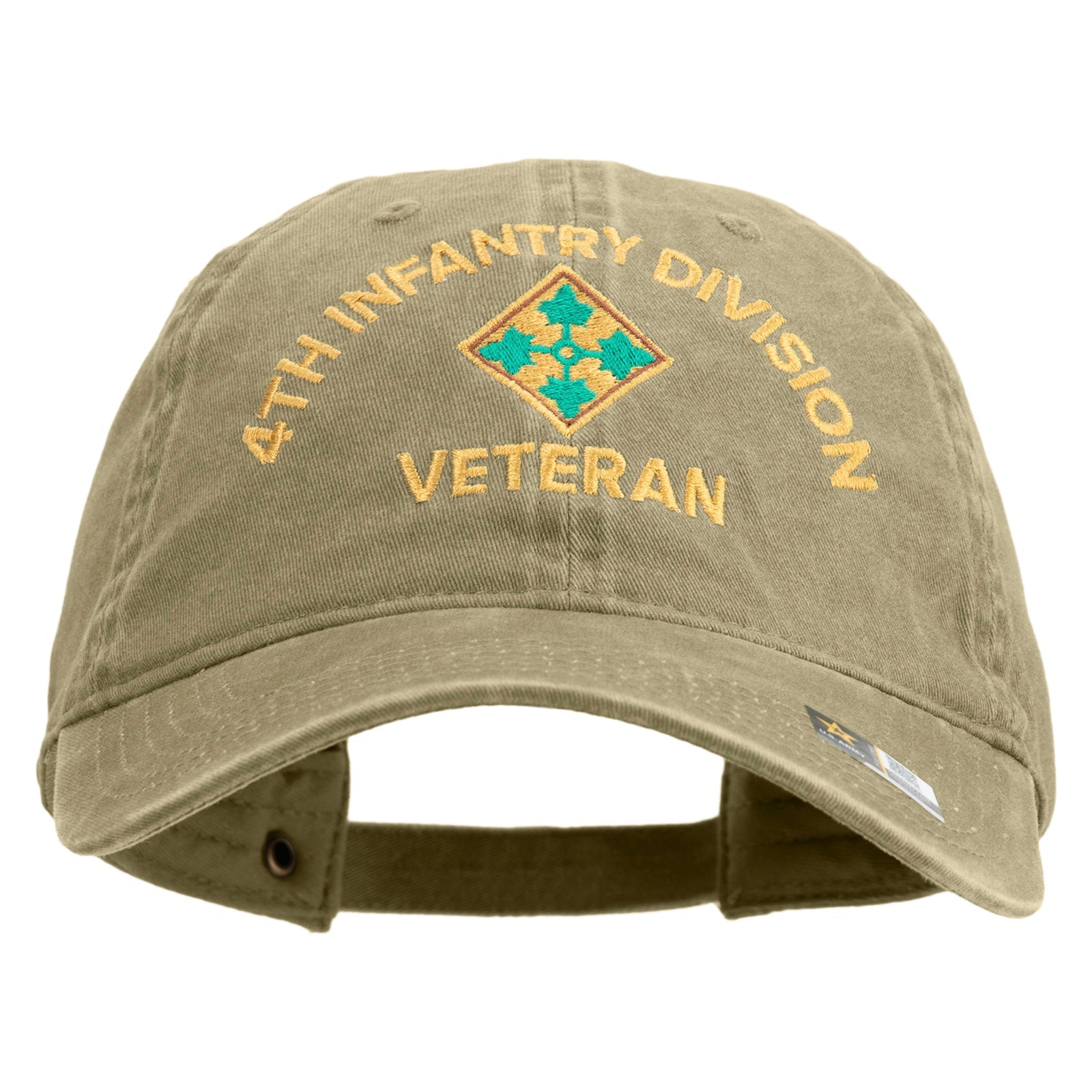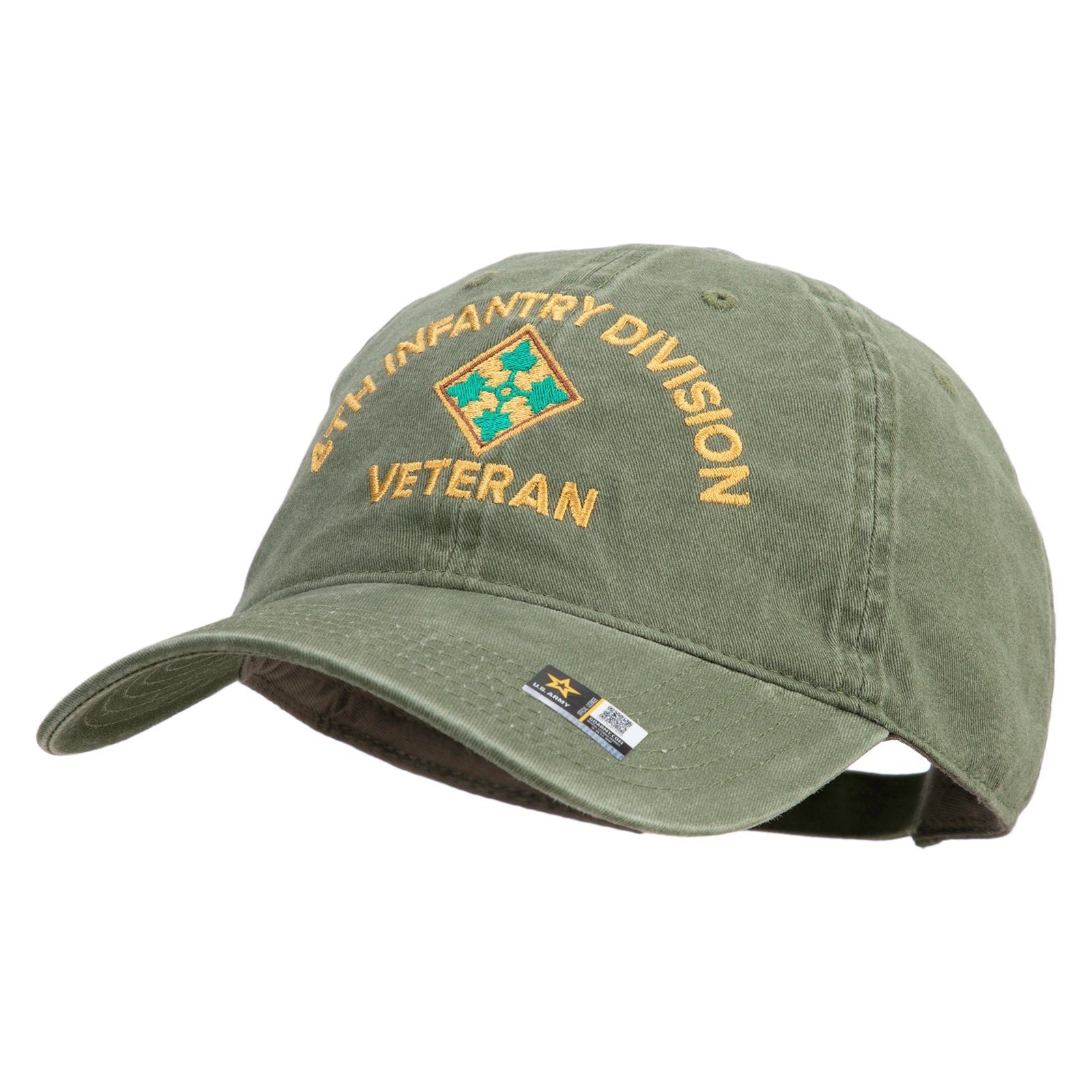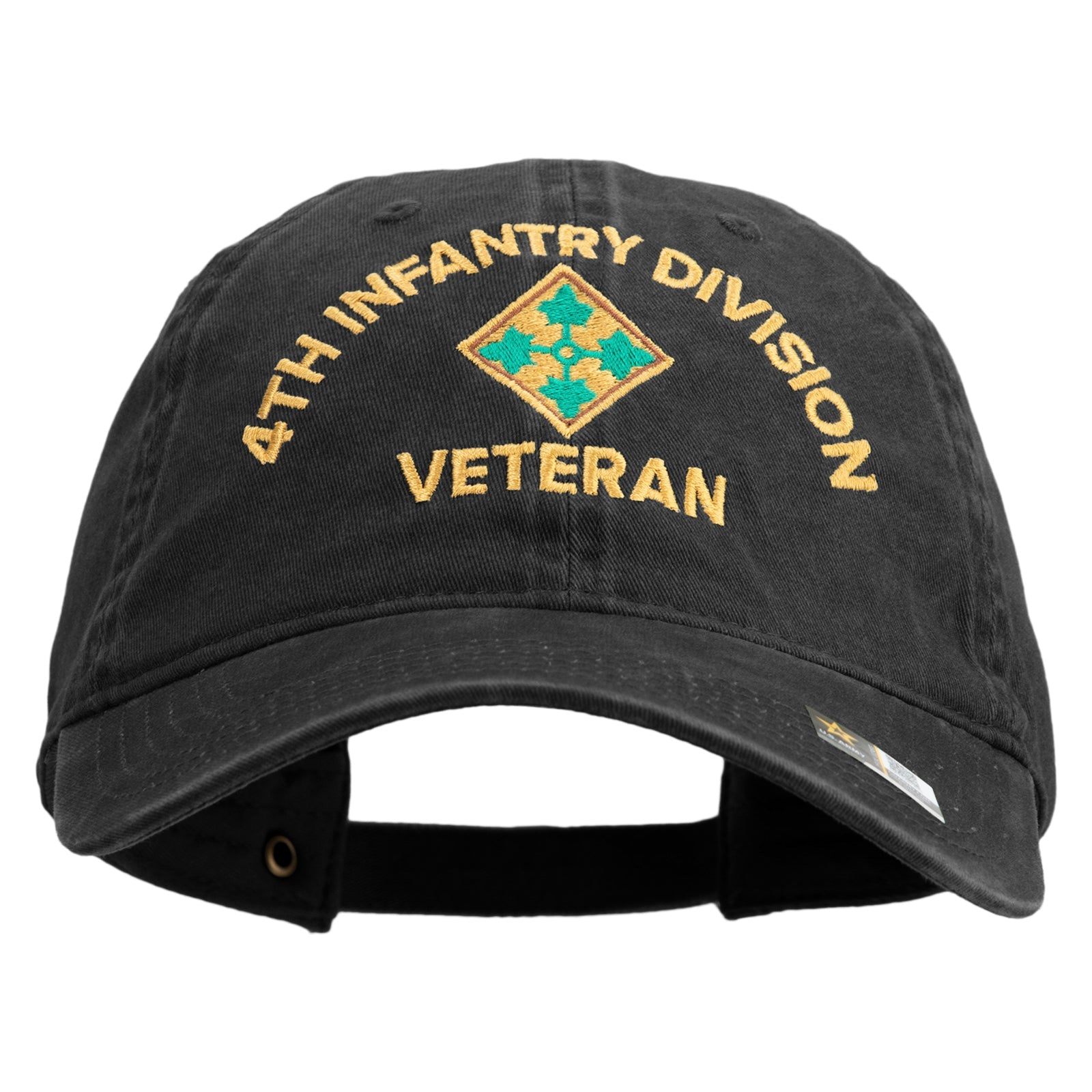 Title, U.S. Army 4th Infantry Division Embroidered Washed Solid Pigment Dyed Cotton Twill Brass Buckle Cap