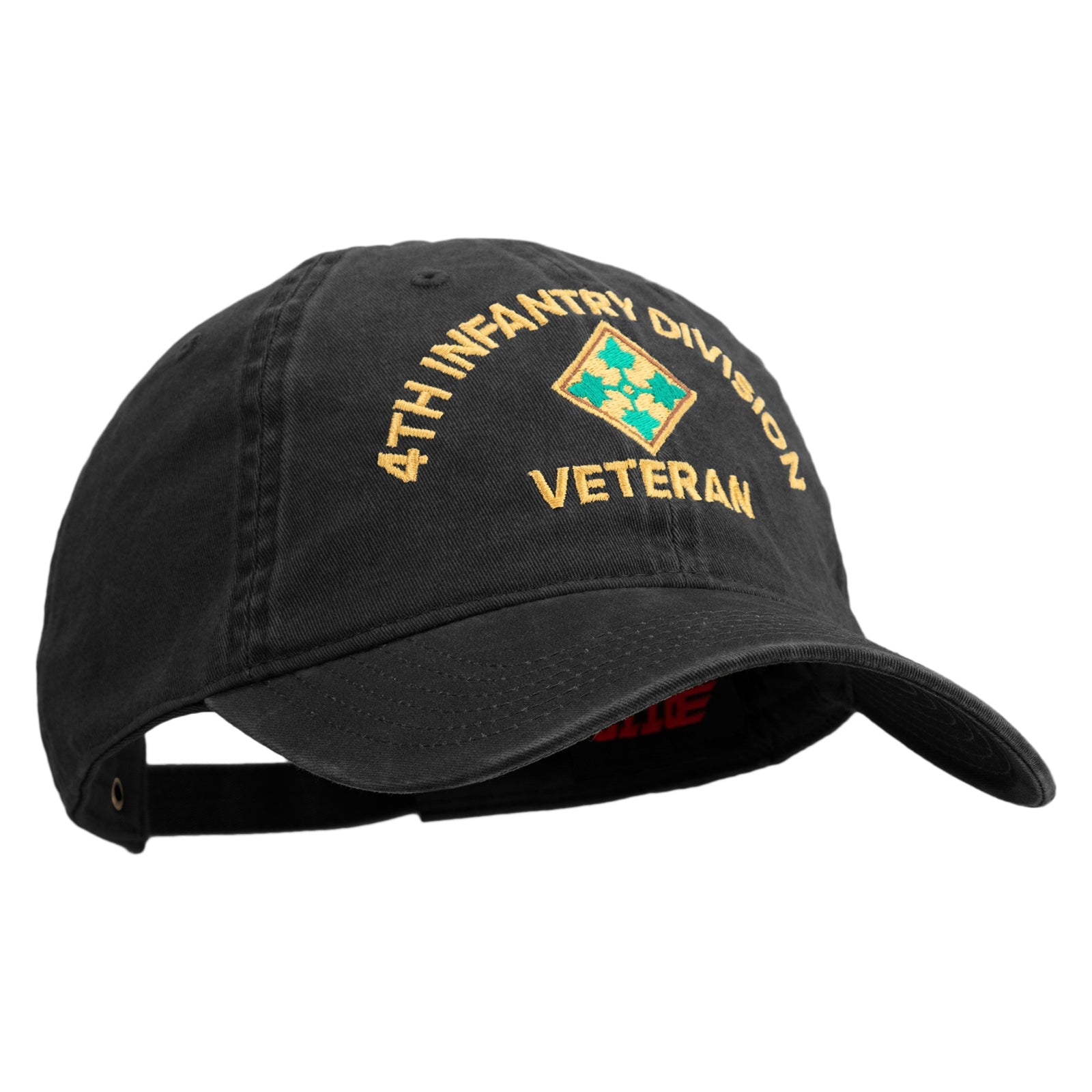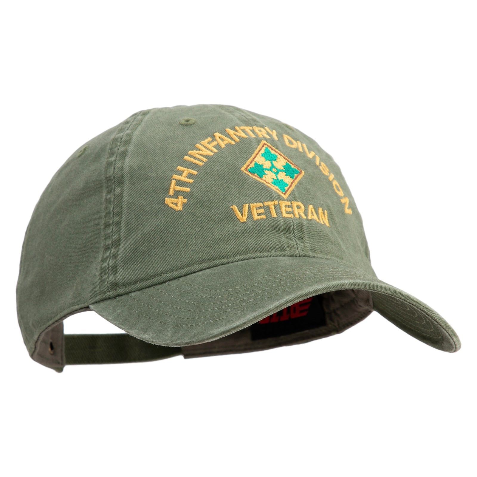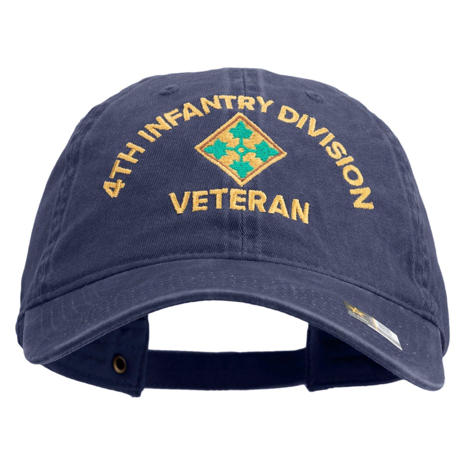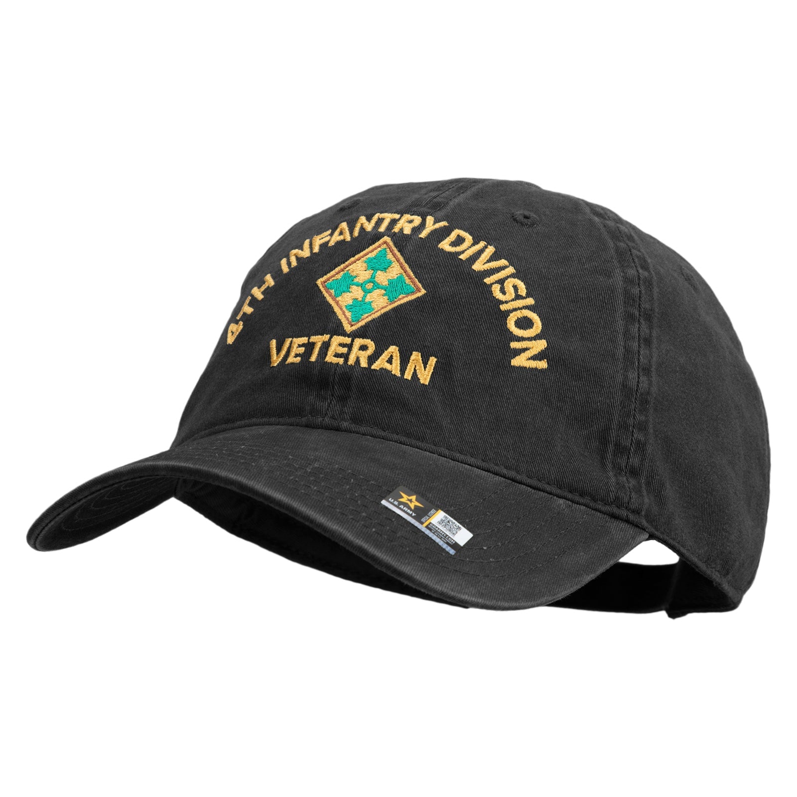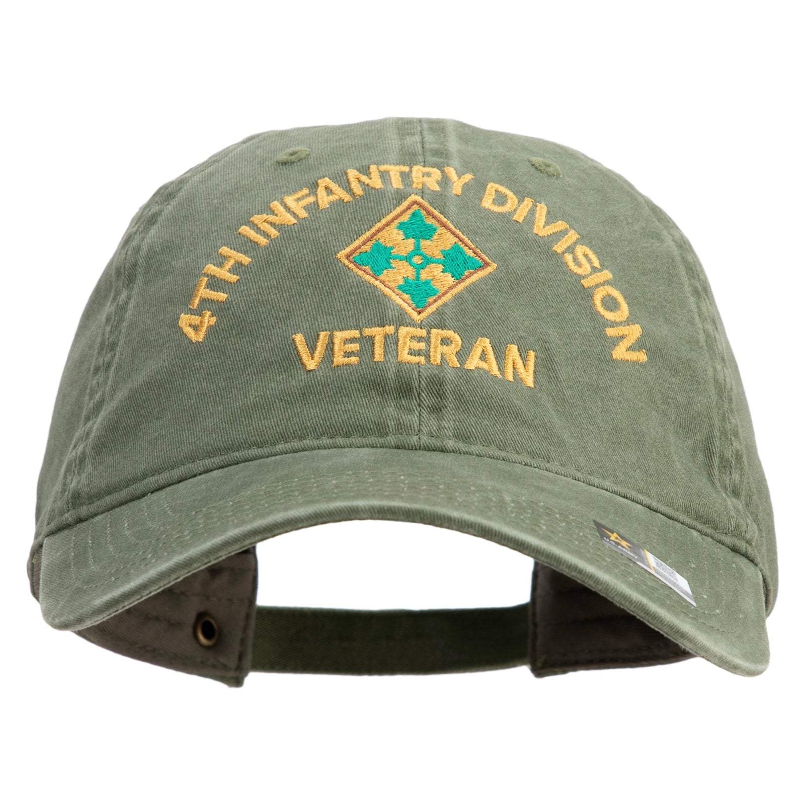 Title, U.S. Army 4th Infantry Division Embroidered Washed Solid Pigment Dyed Cotton Twill Brass Buckle Cap