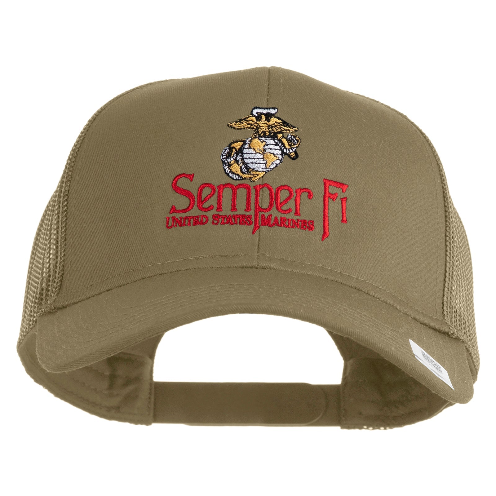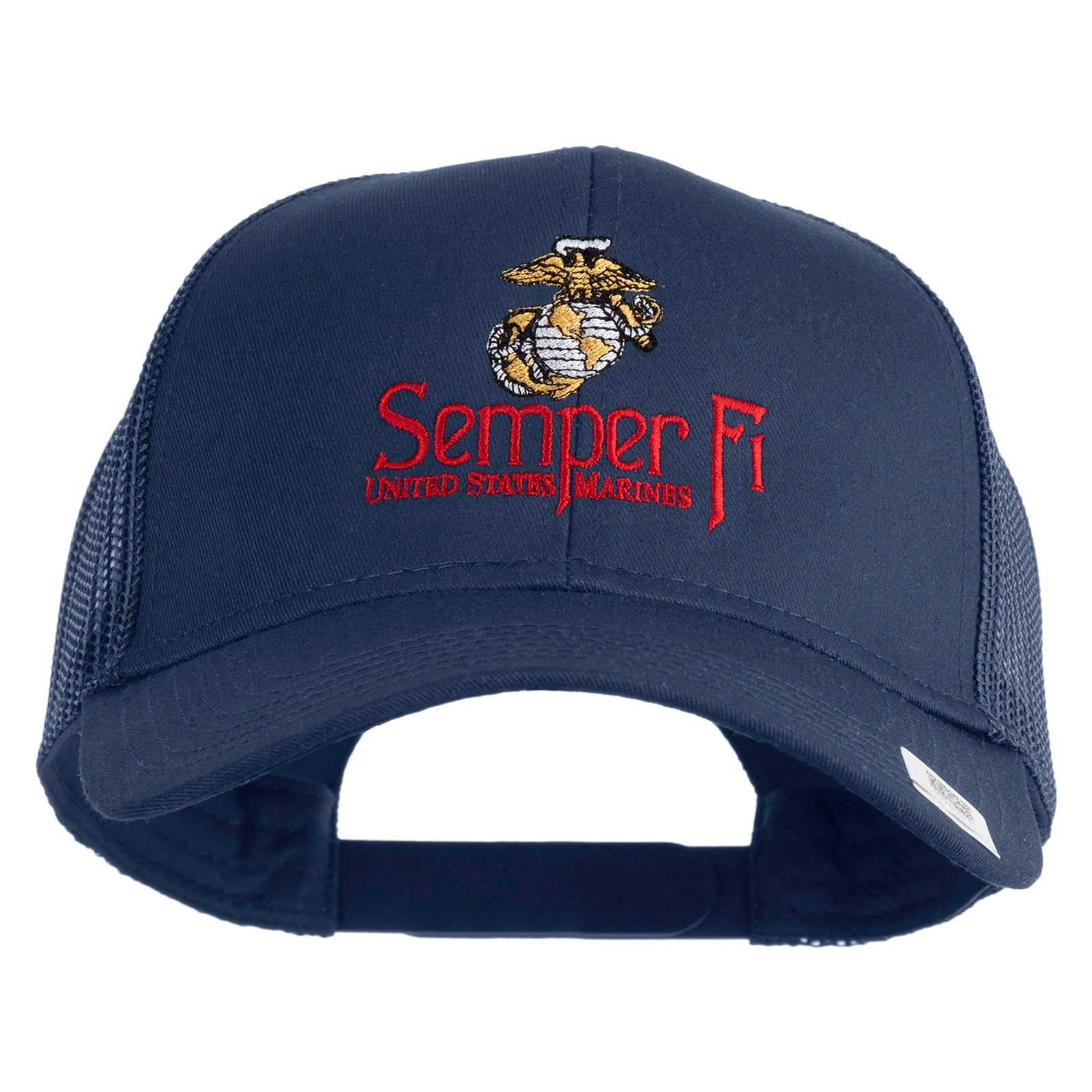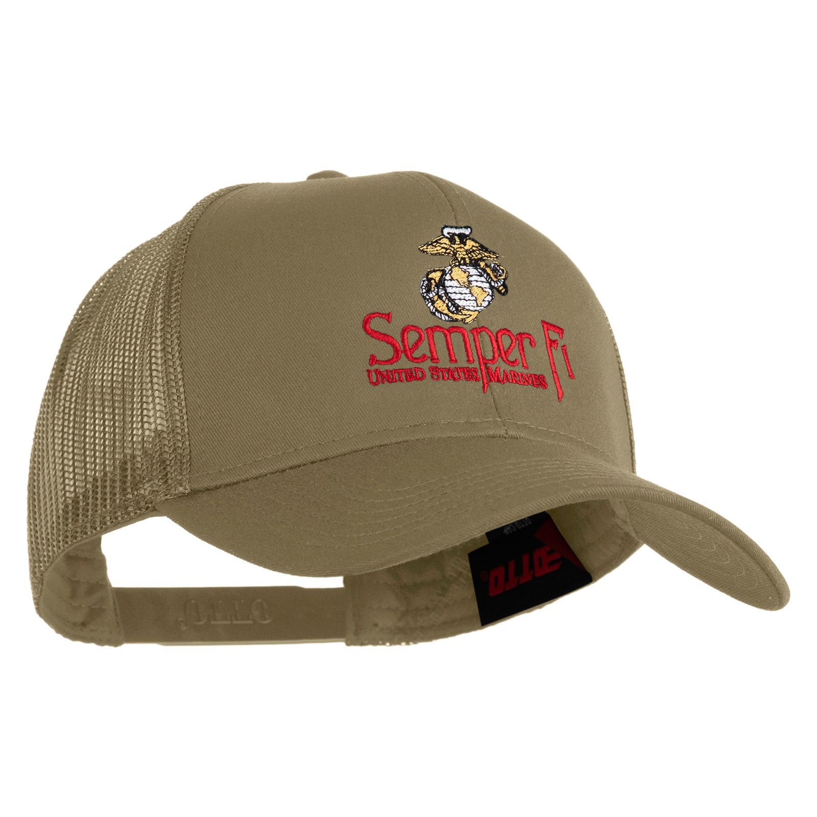 Title, United States Marines Semper Fi Emblem Embroidered Solid Cotton Twill Mesh Pro Style Cap